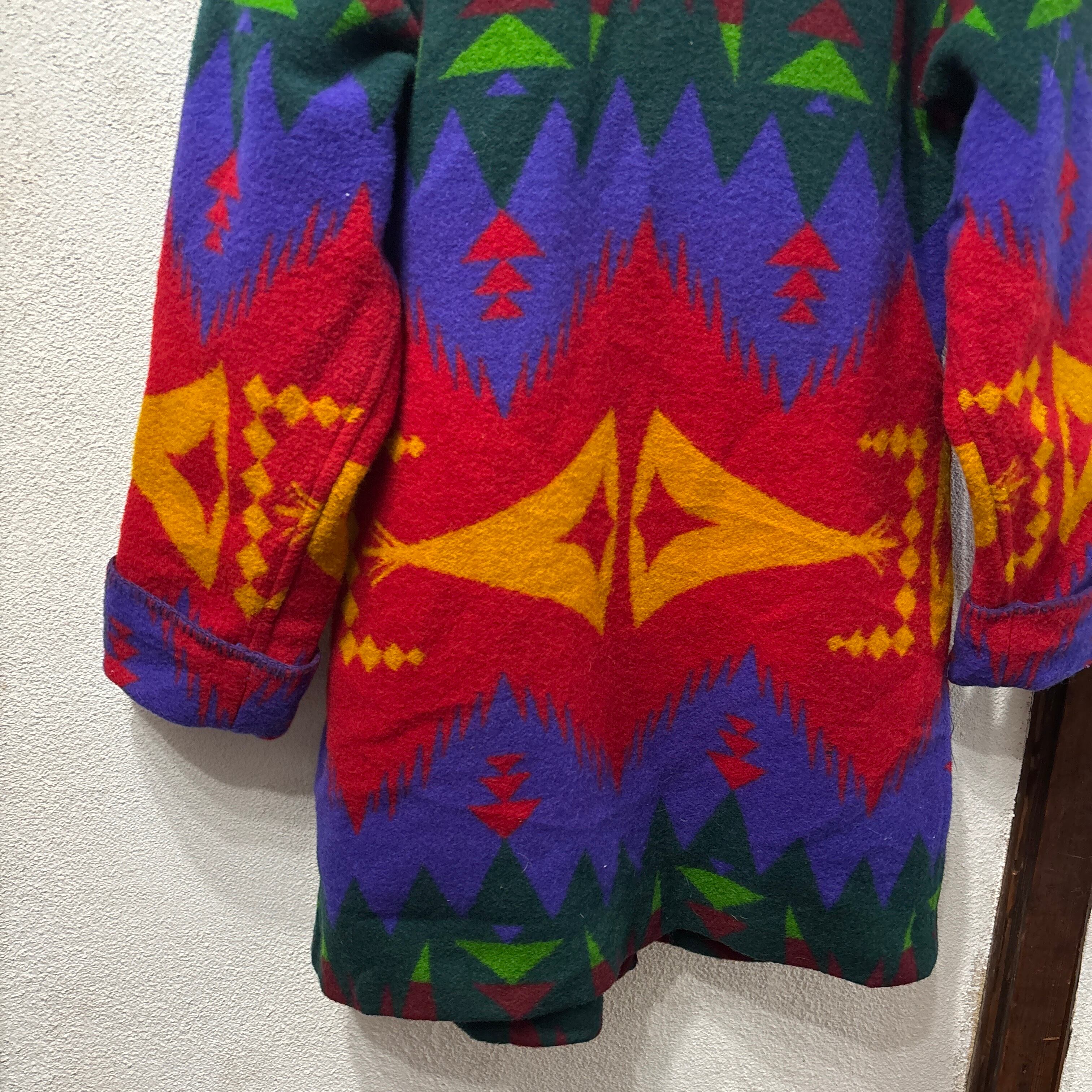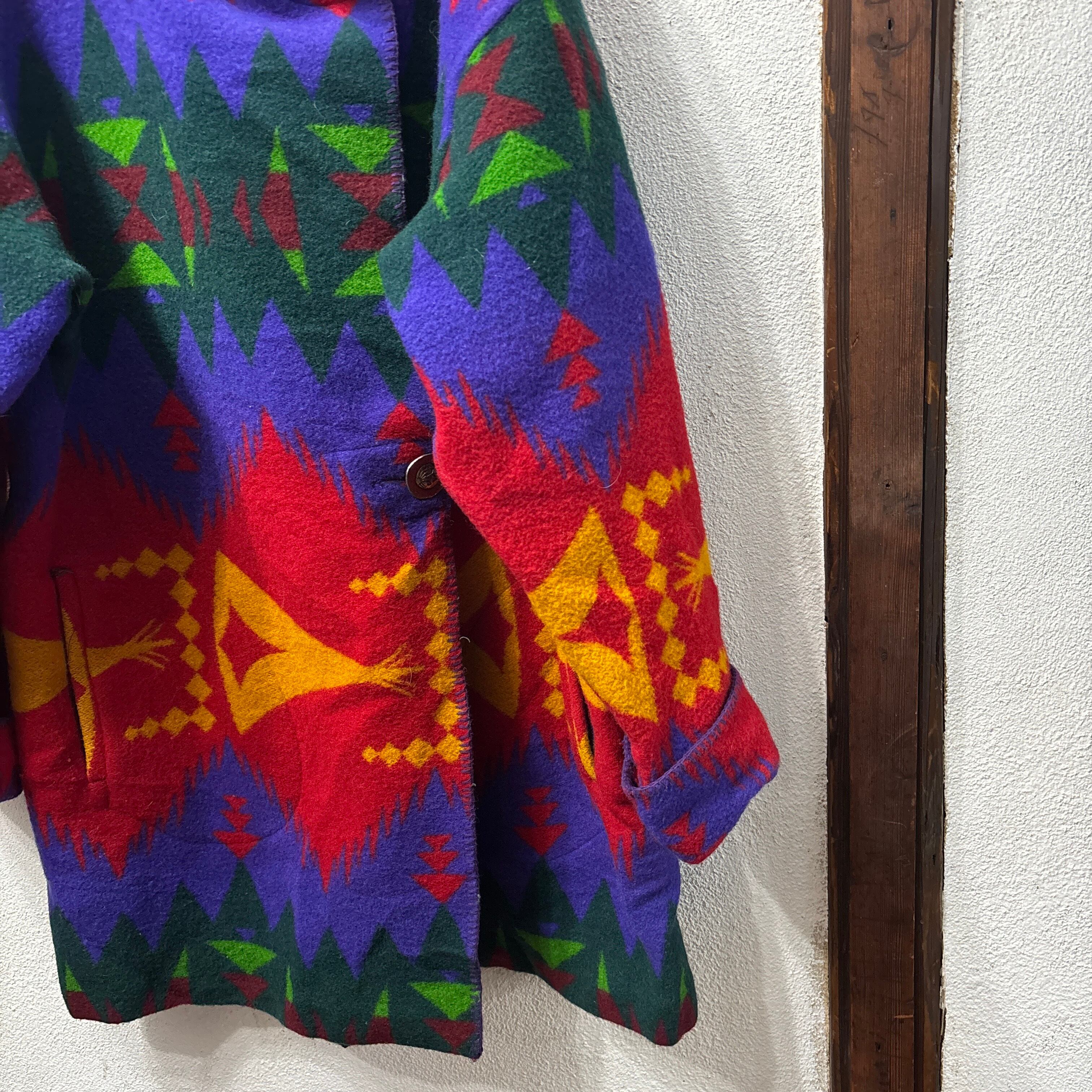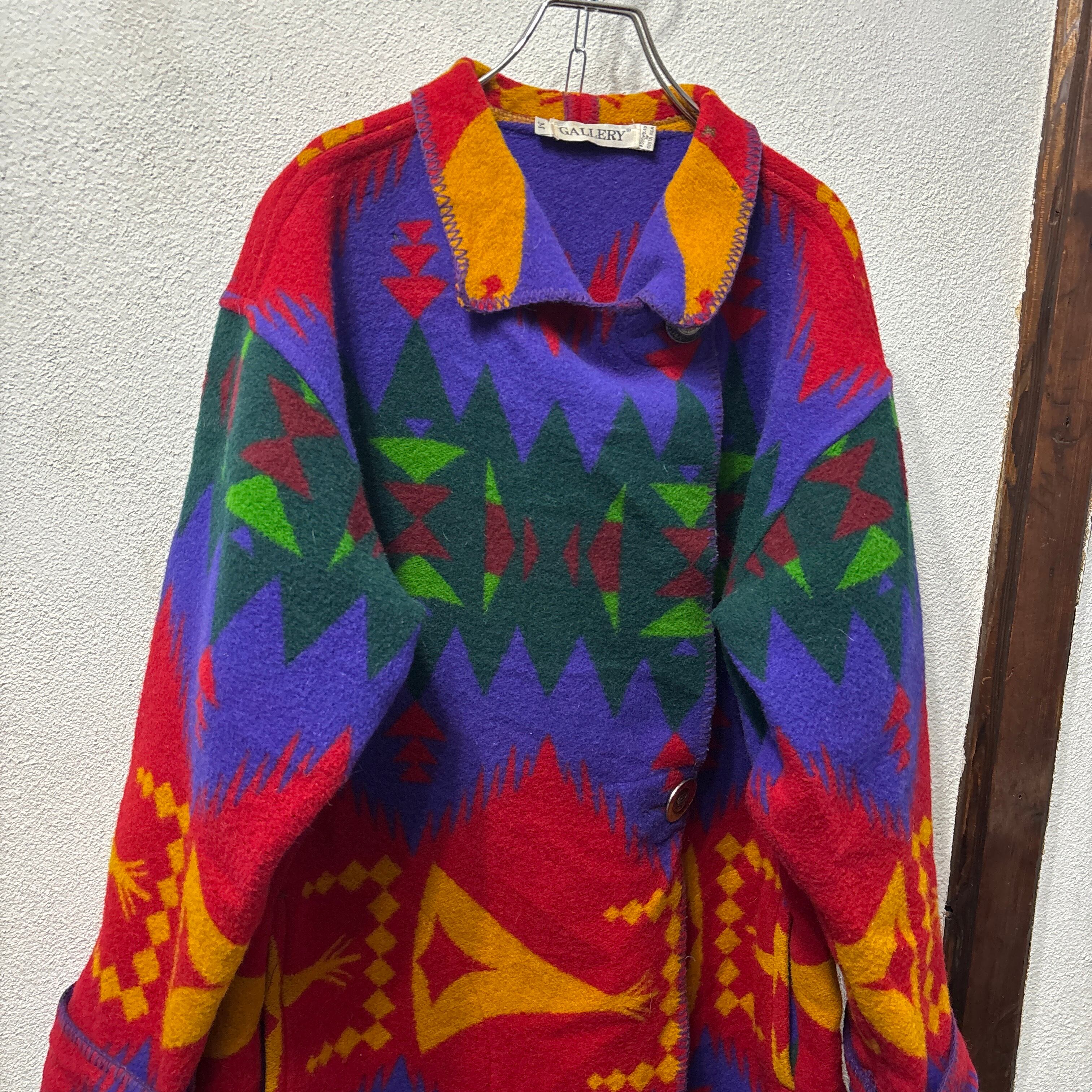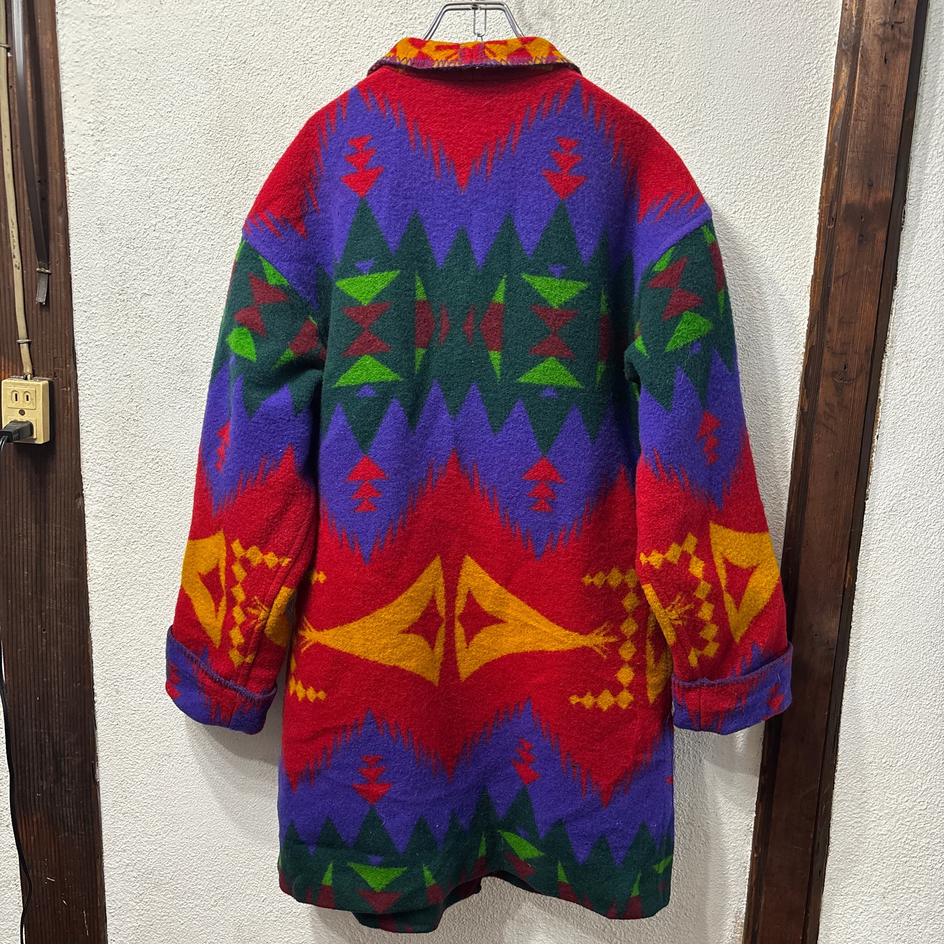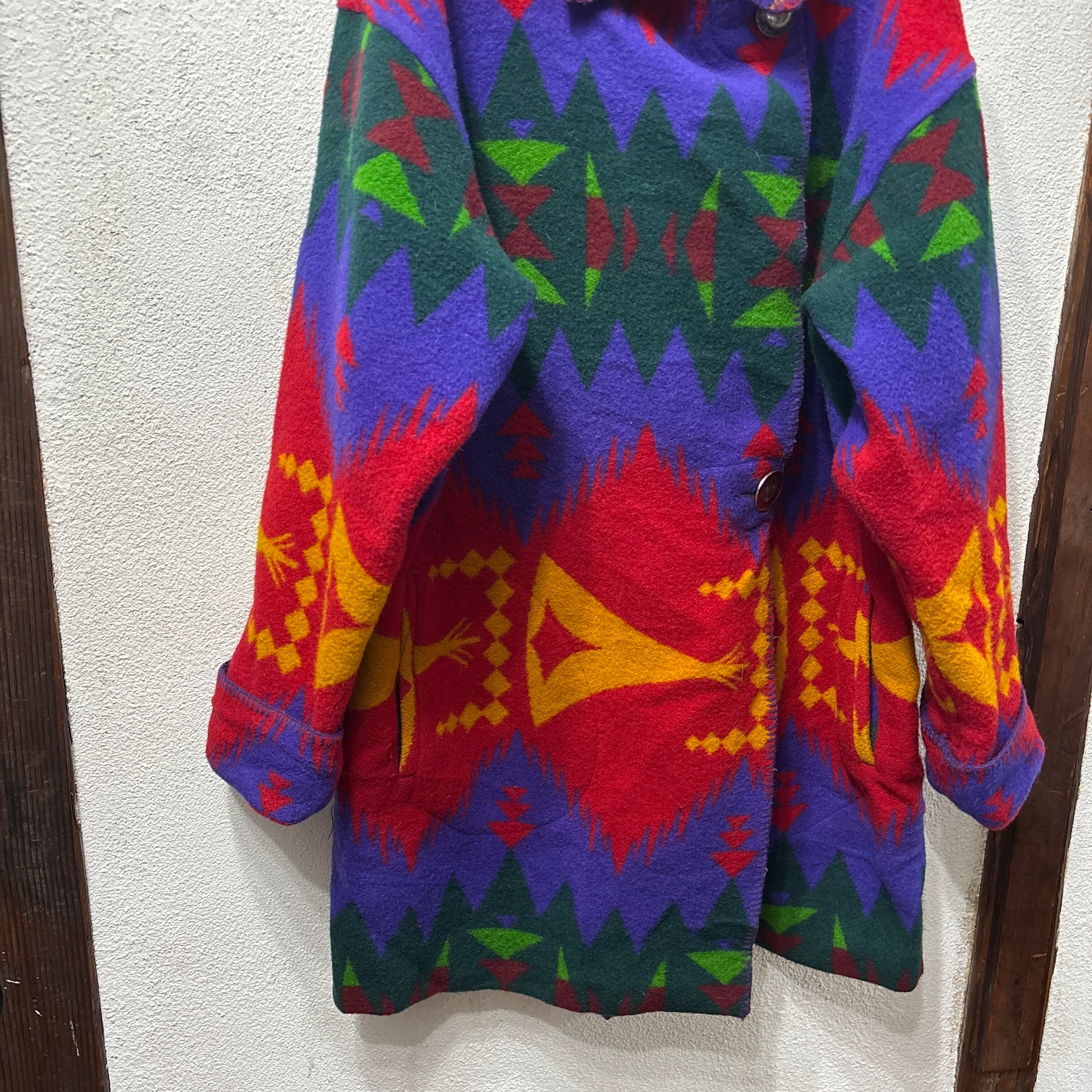 ウールフリース素材のエスニック調のロングコート。