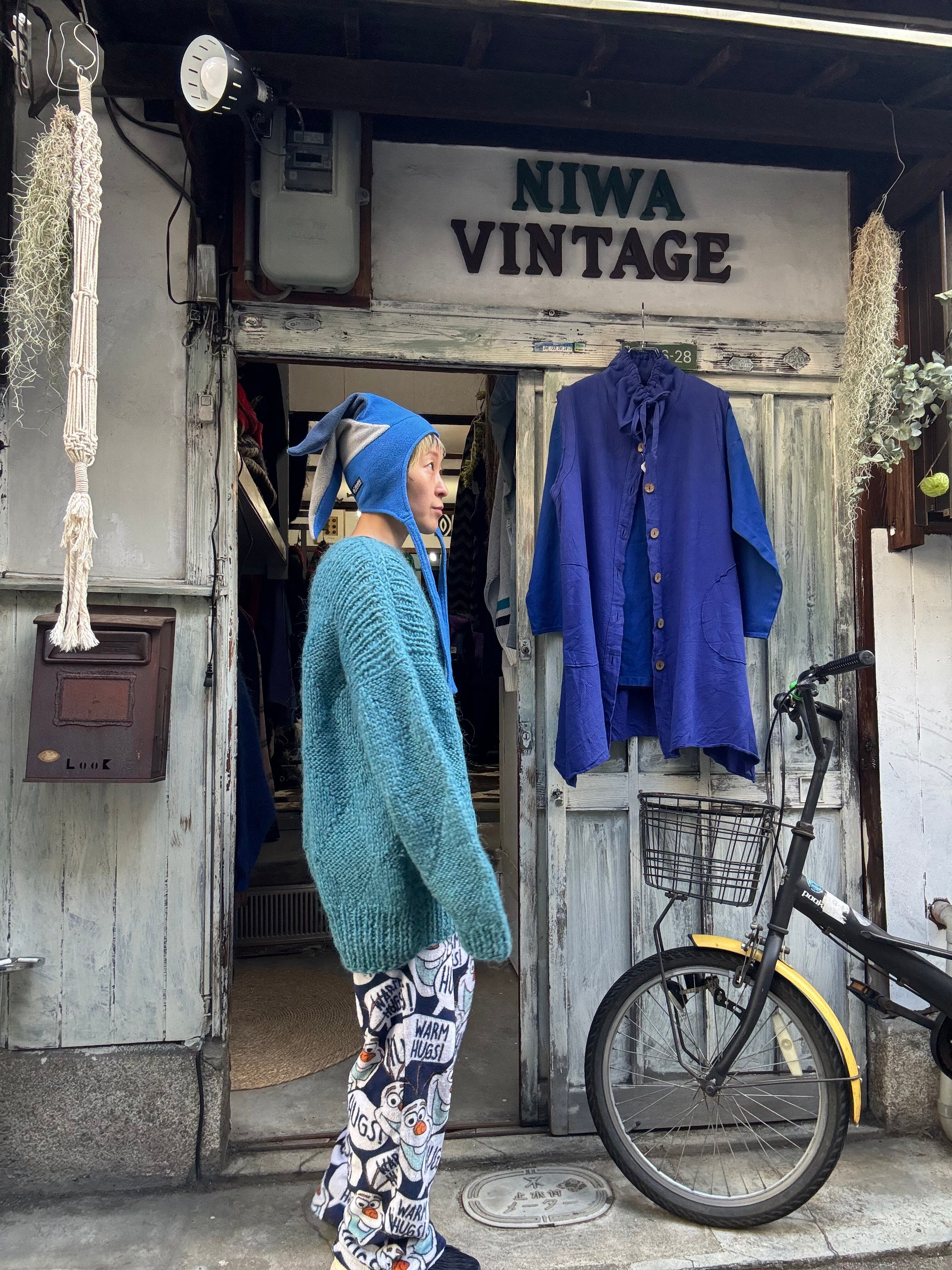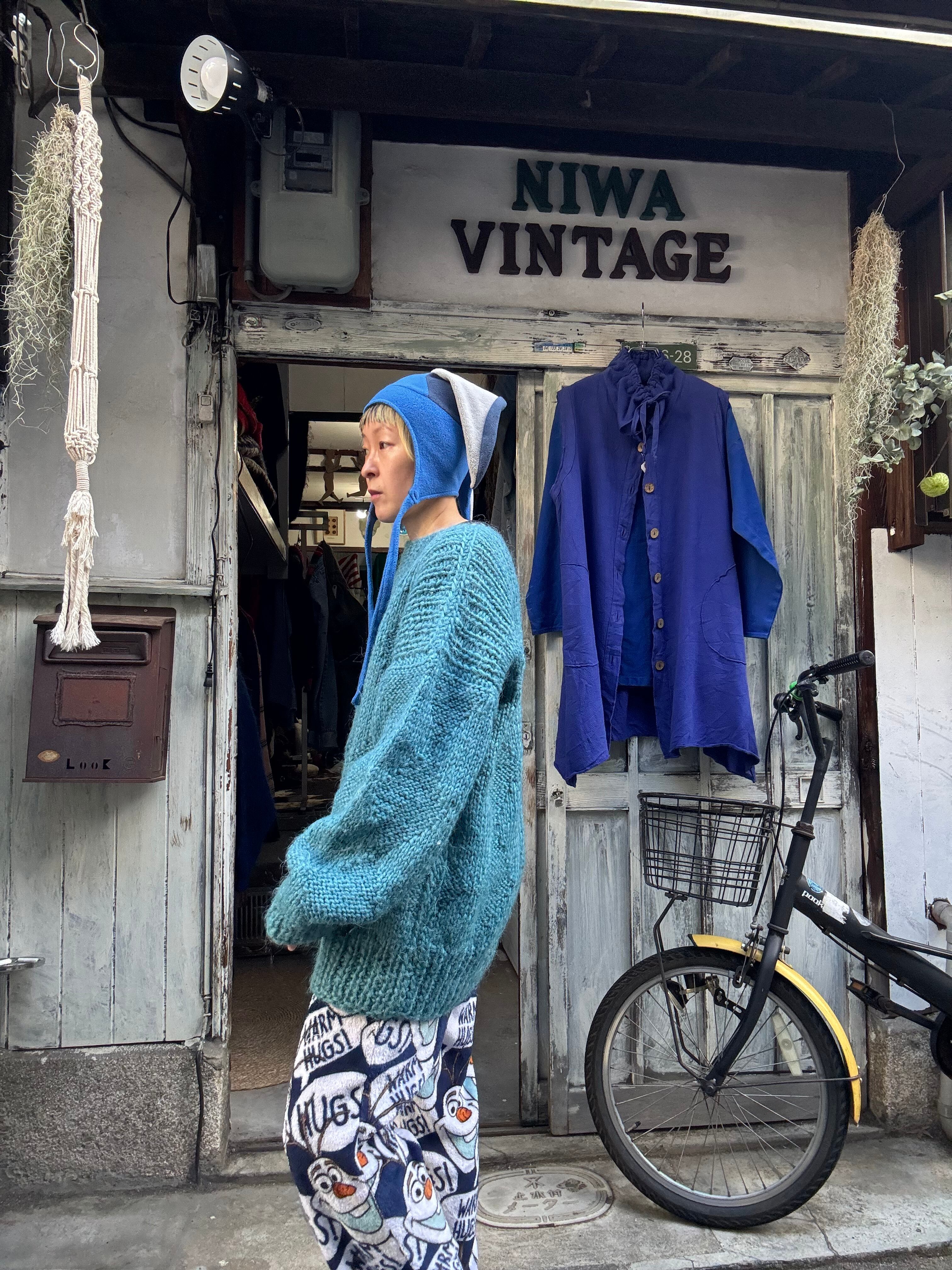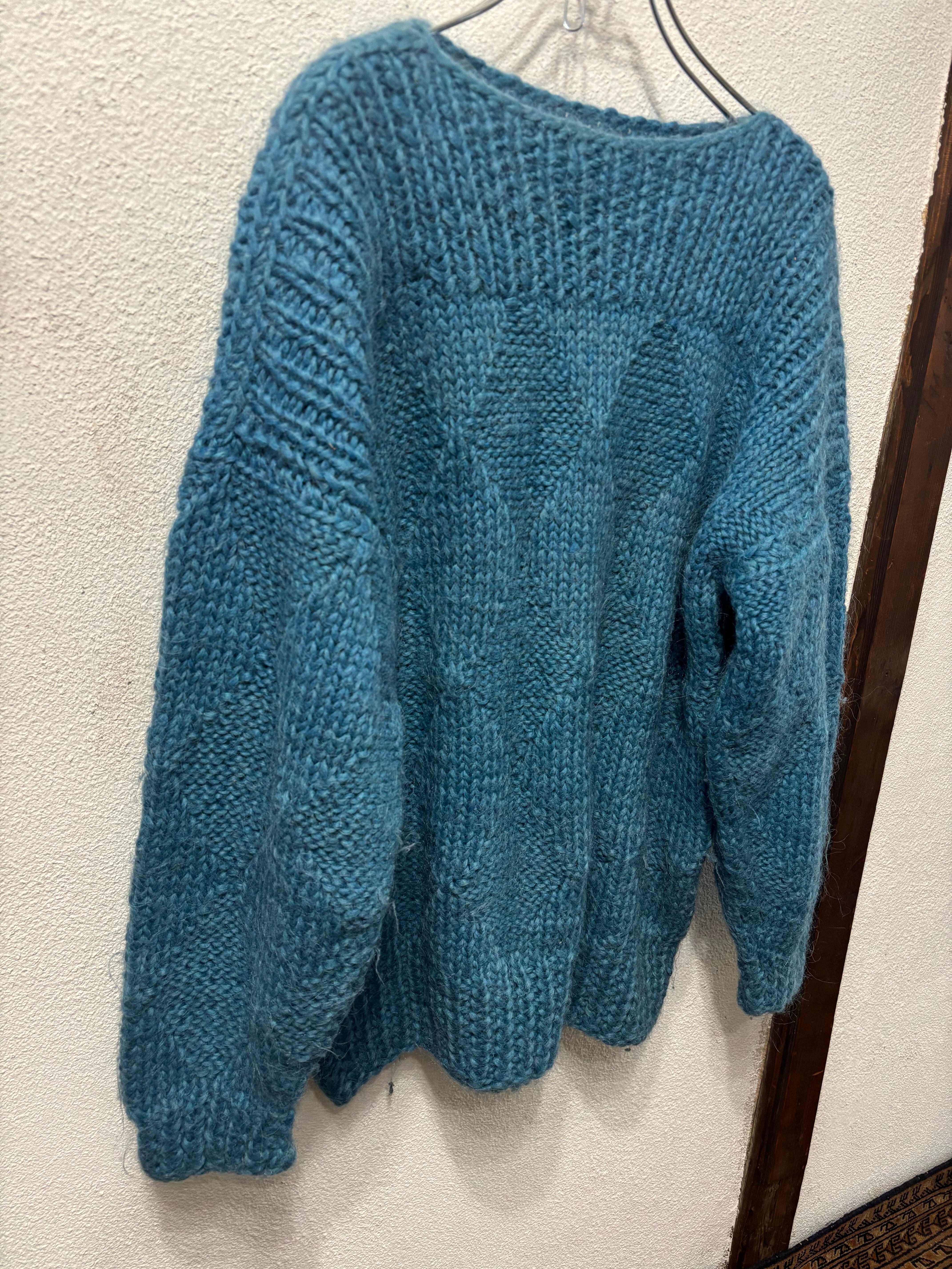 太めのウール毛糸で編まれたhand Knitのセーター。
