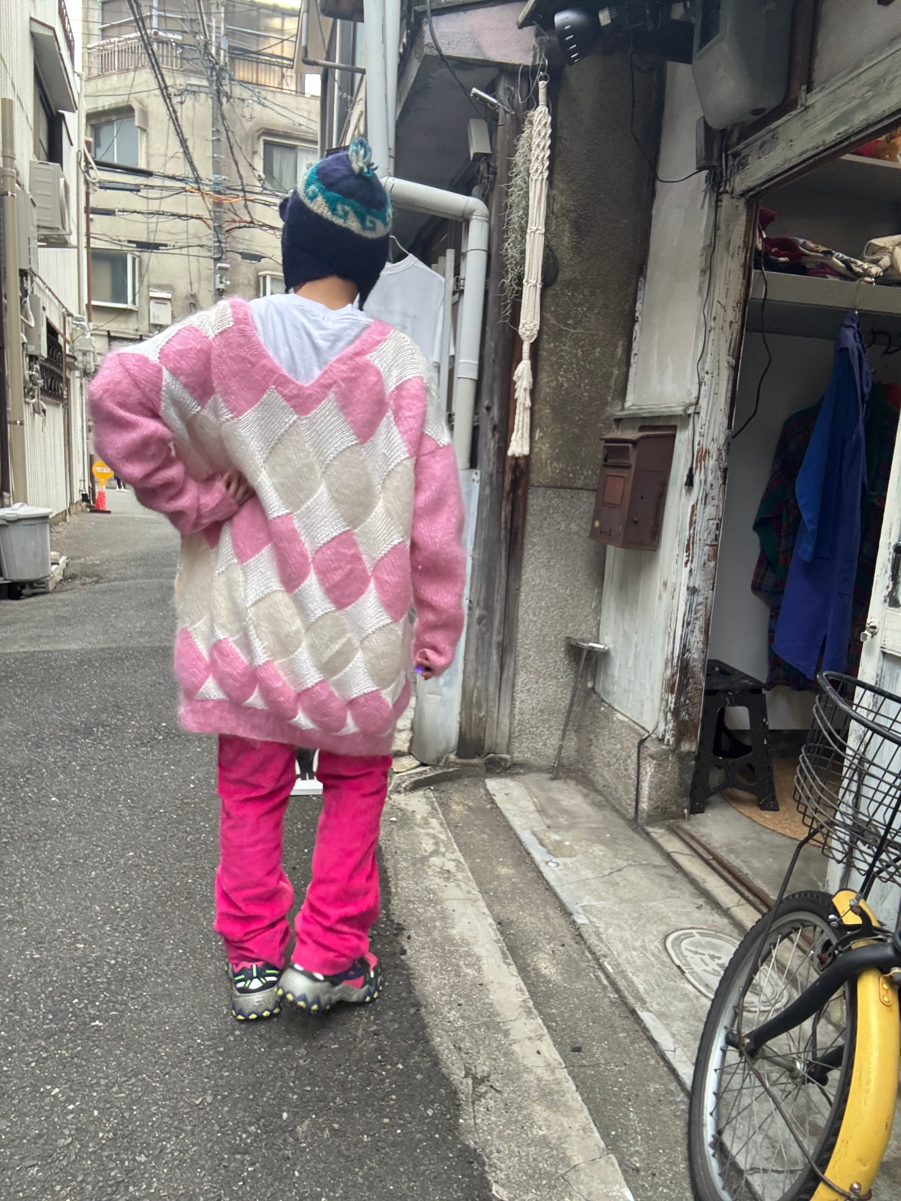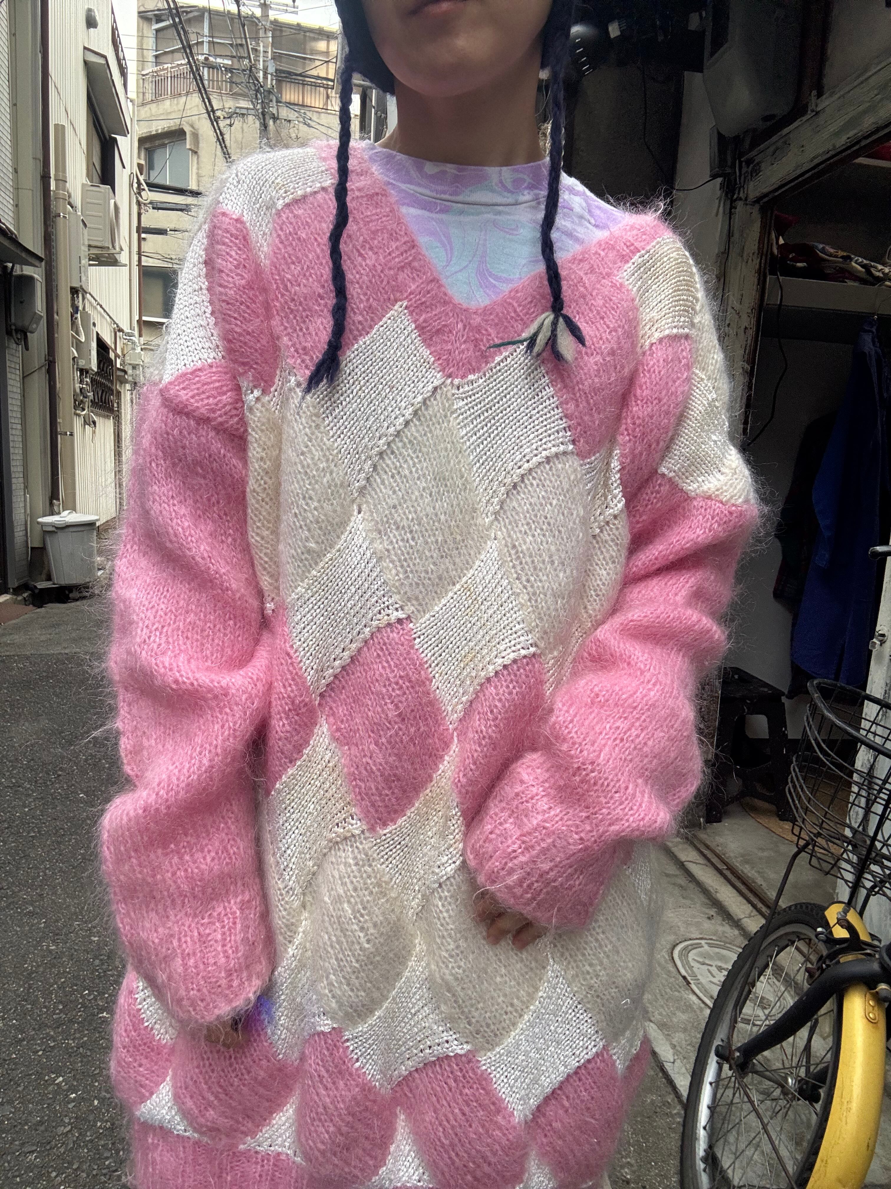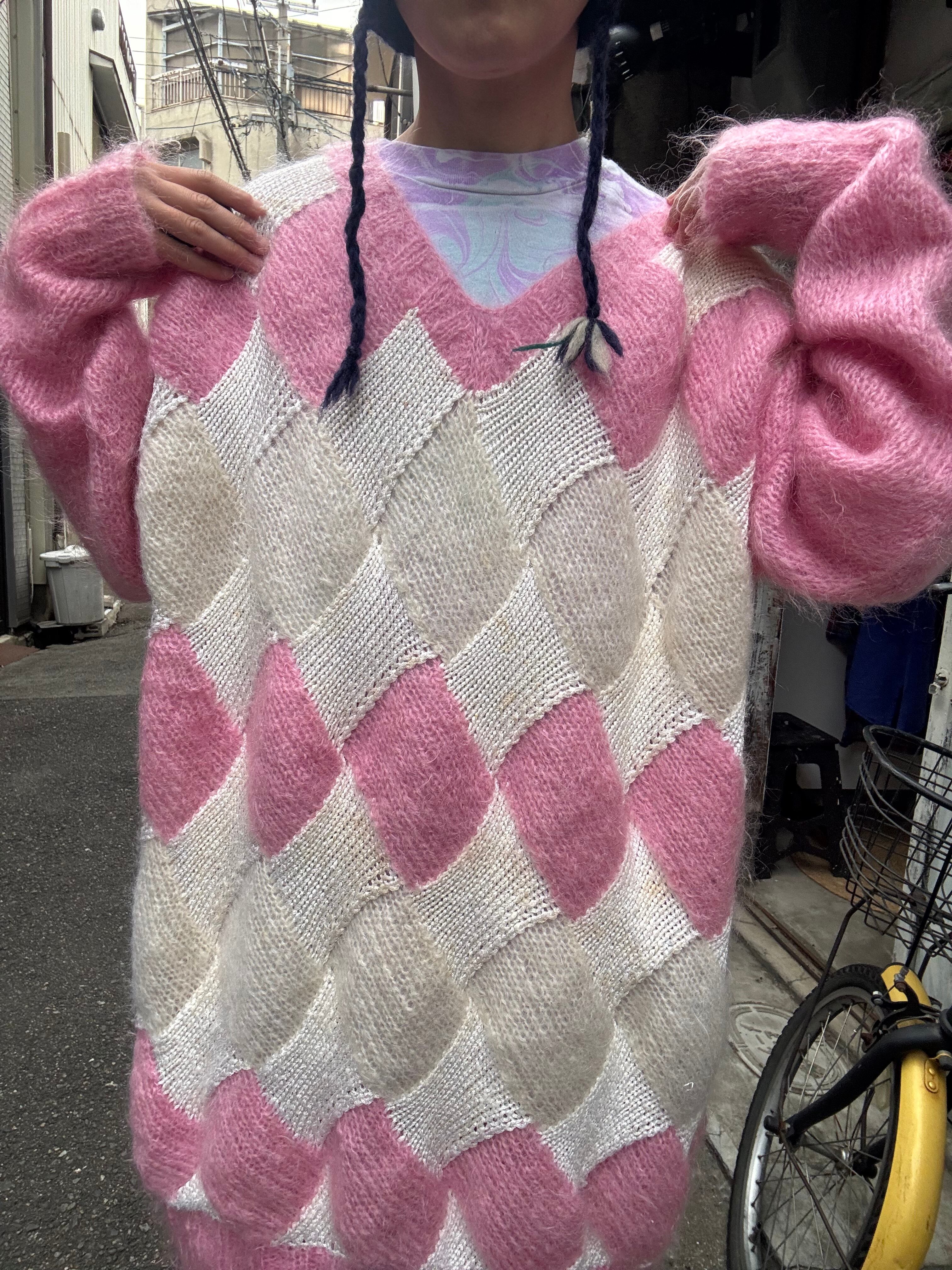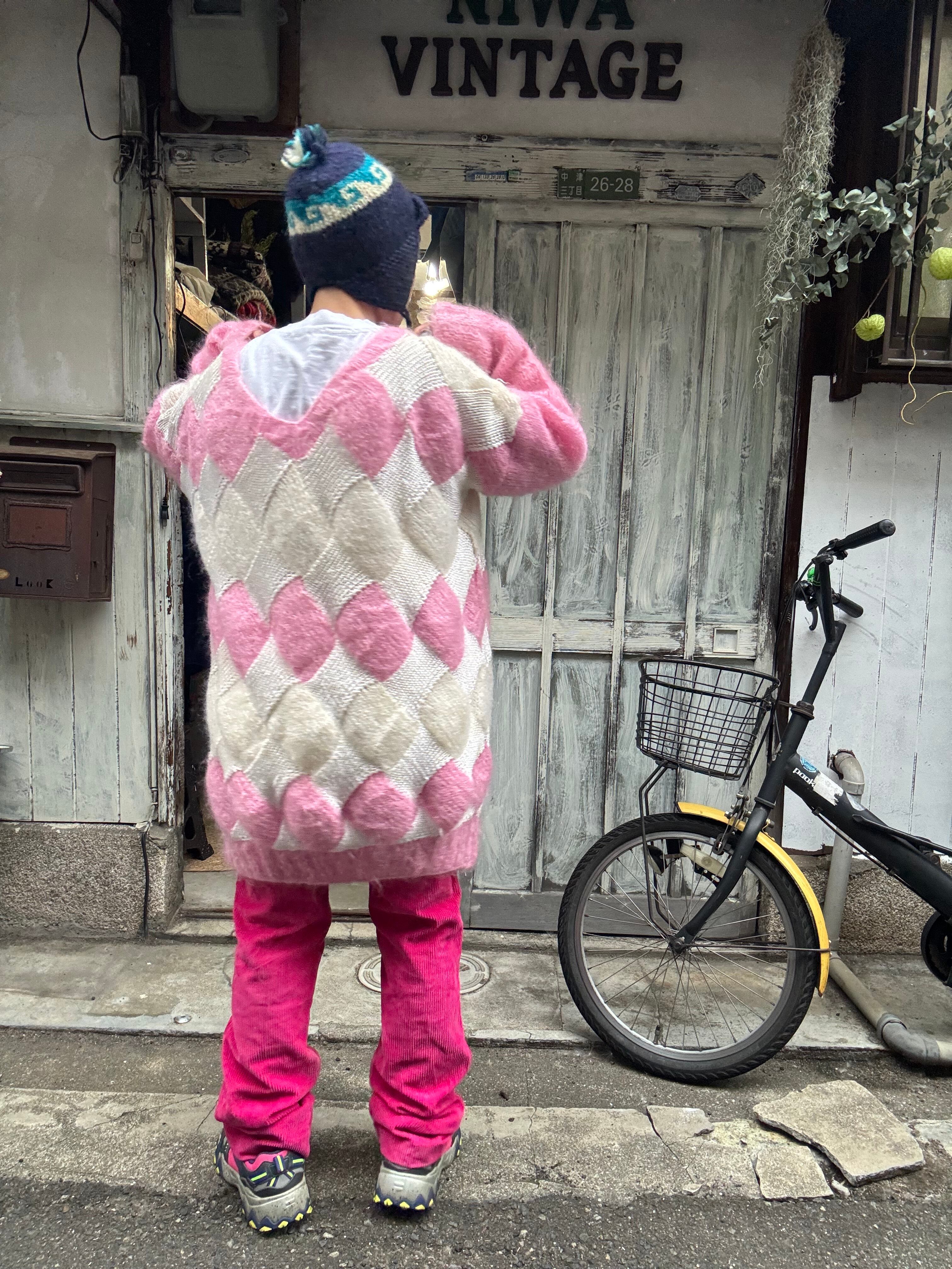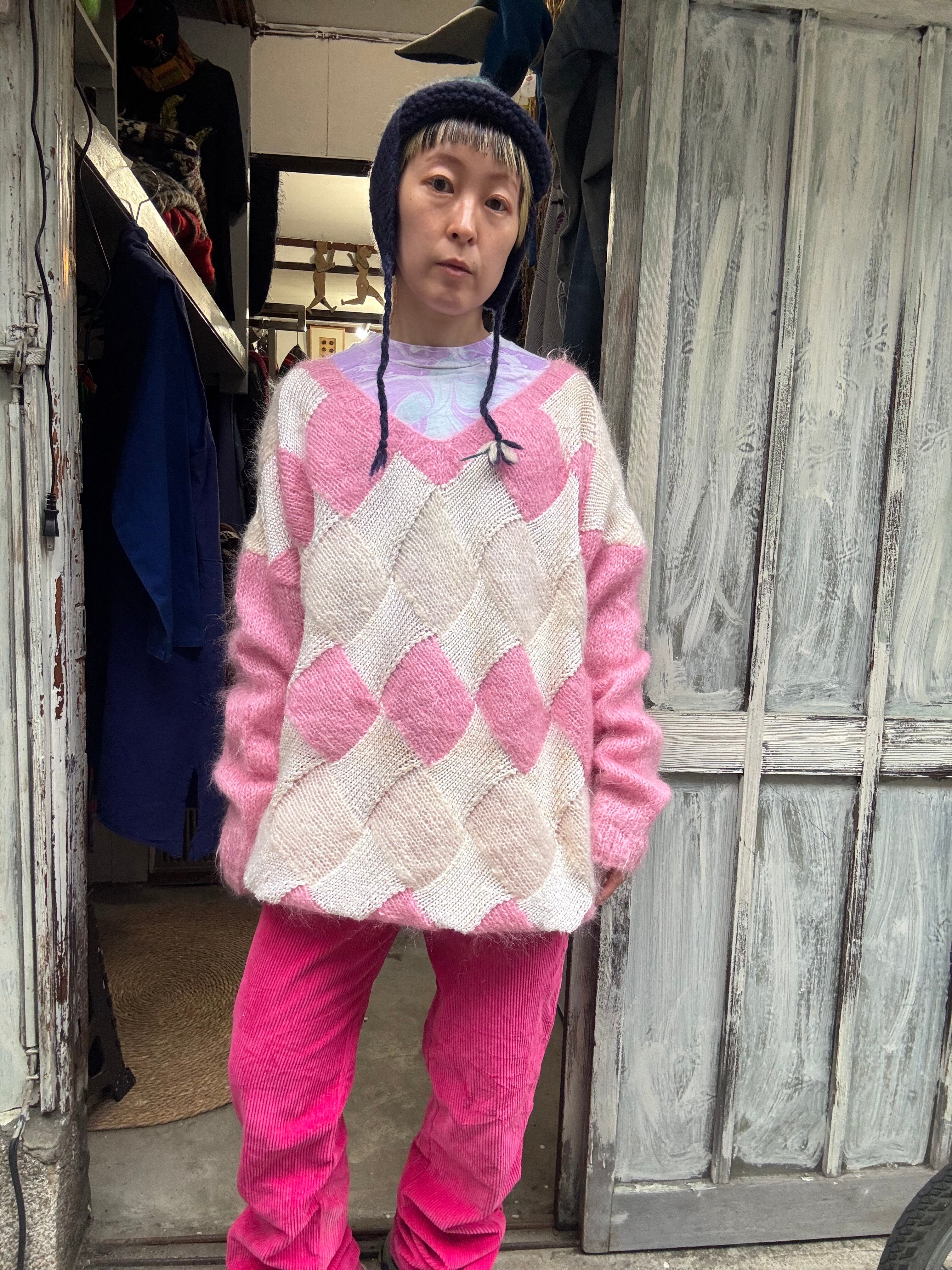 恐らくモヘアとラミーコットンがミックスされた毛糸で編まれています。