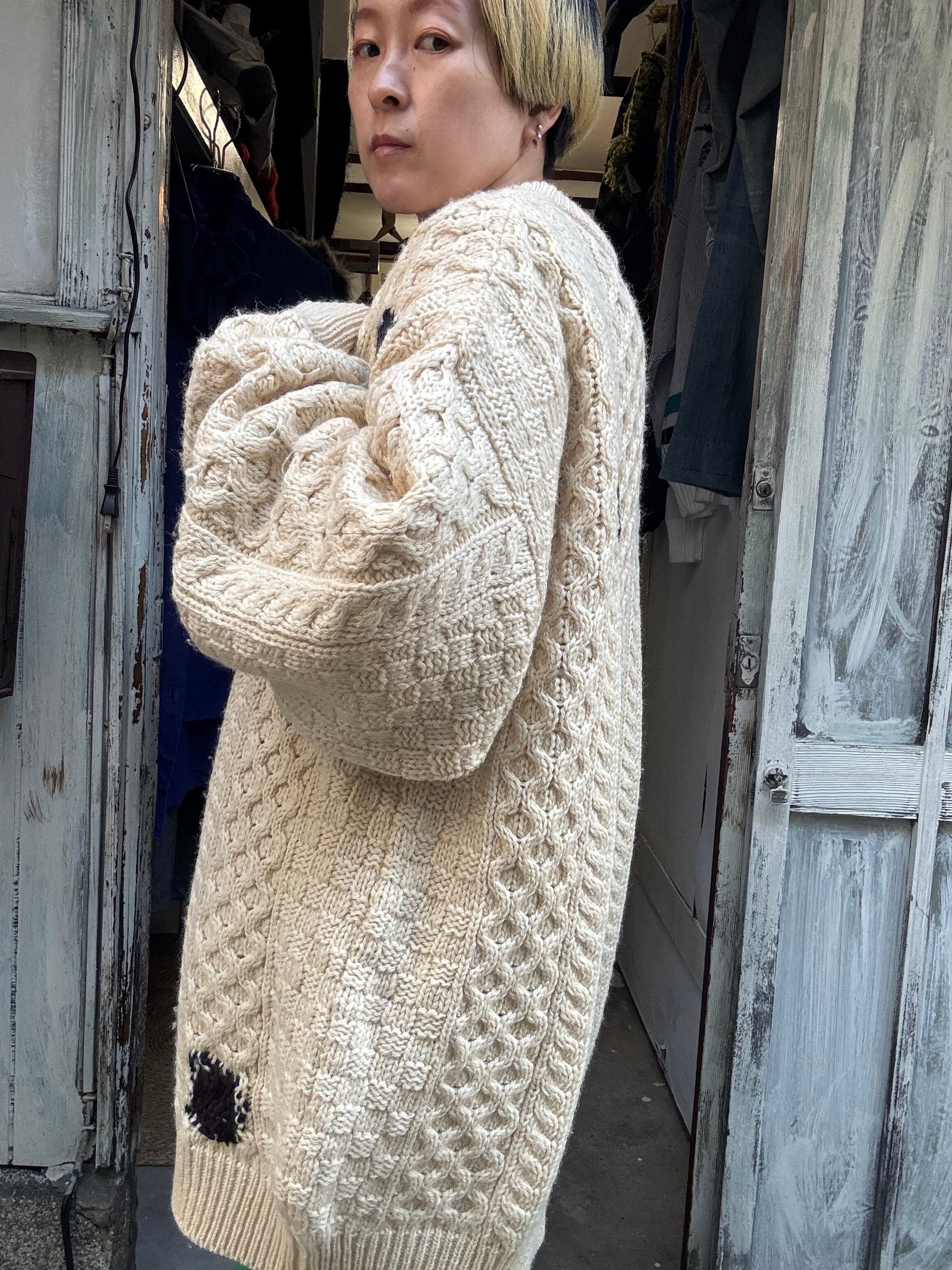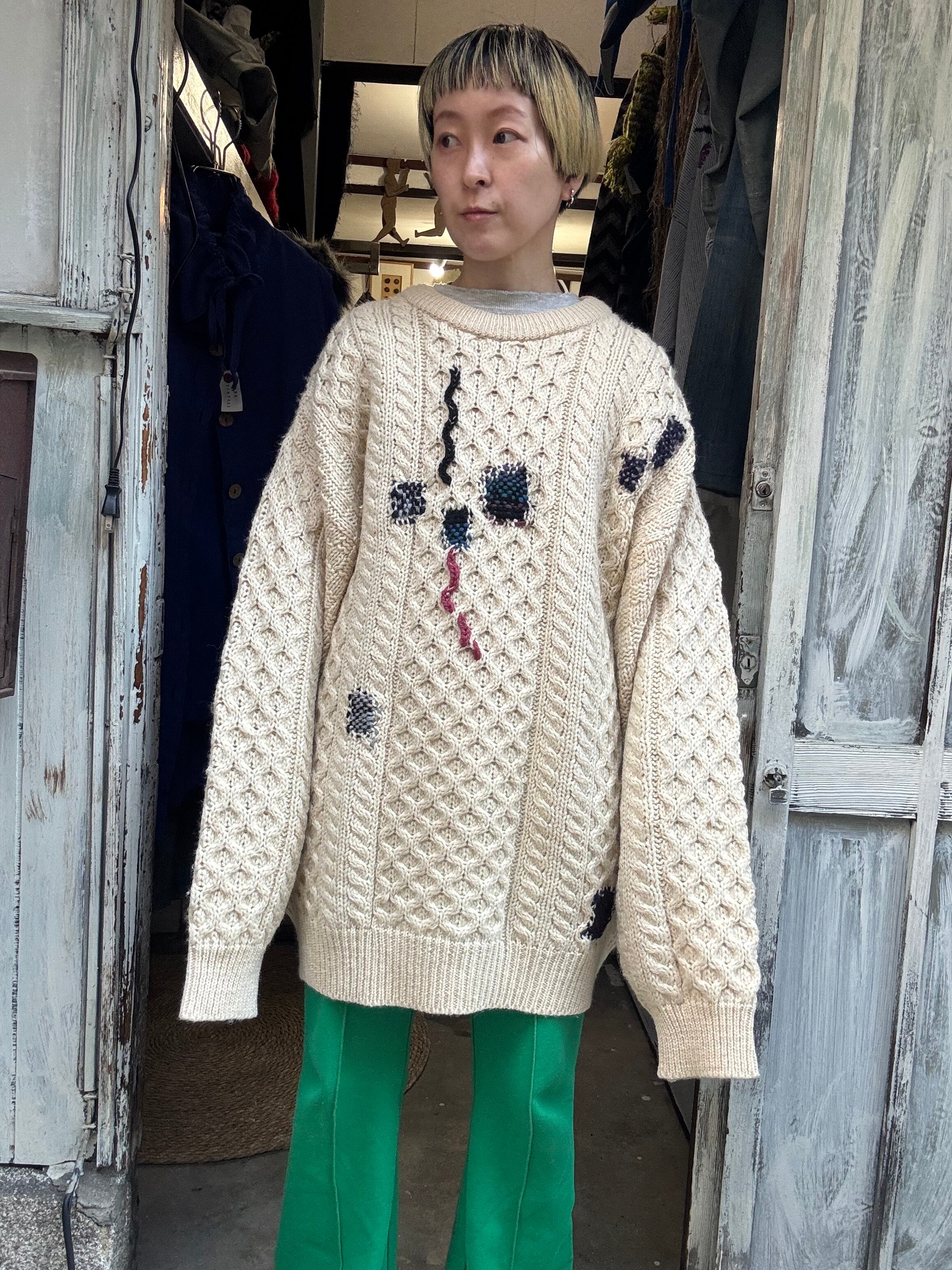 アイルランド製のフィッシャーマンセーターにオリジナルダーニングを施した一点物セーターとなります。
