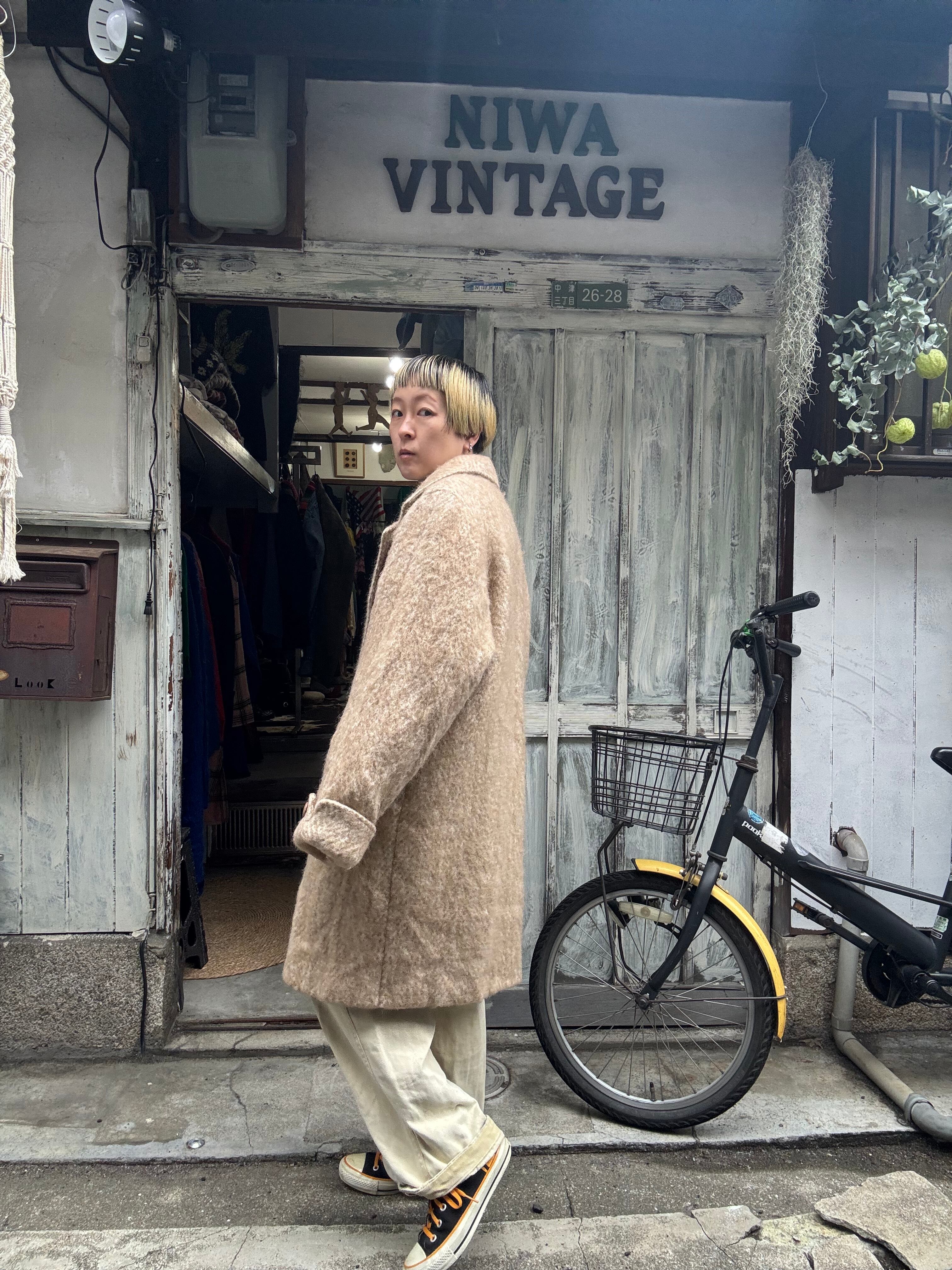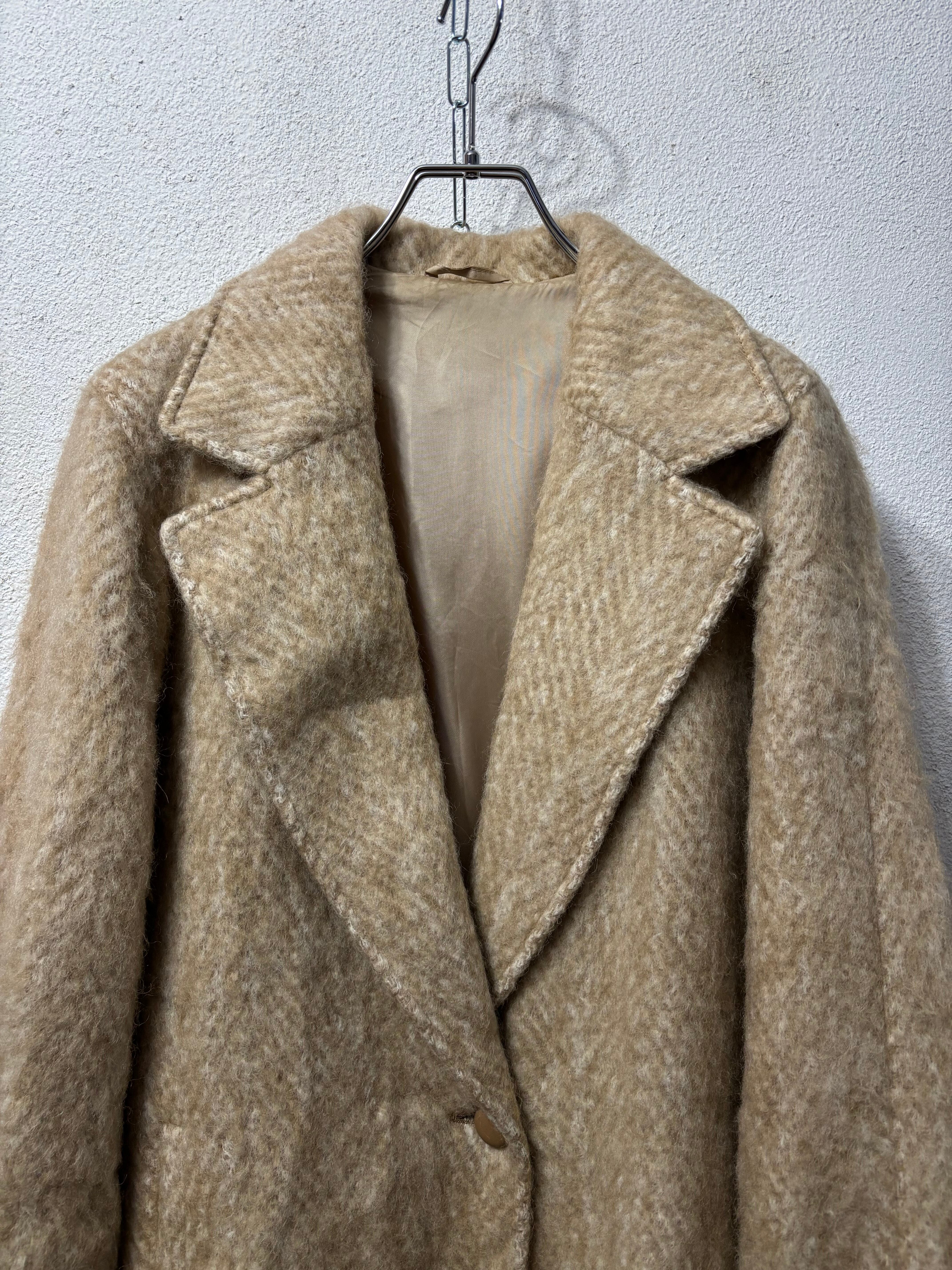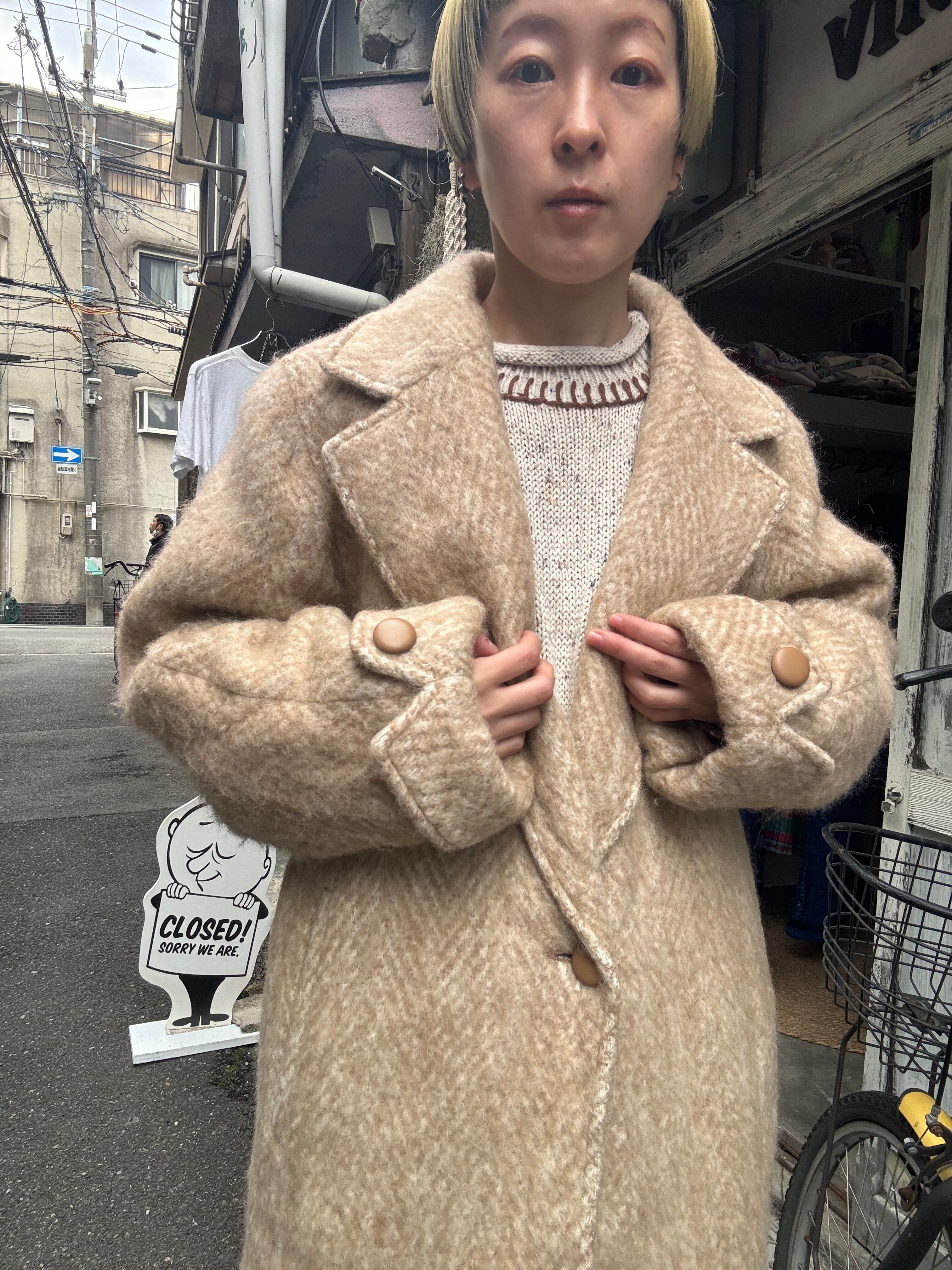 少しふわっとした毛足長めのウールコート。