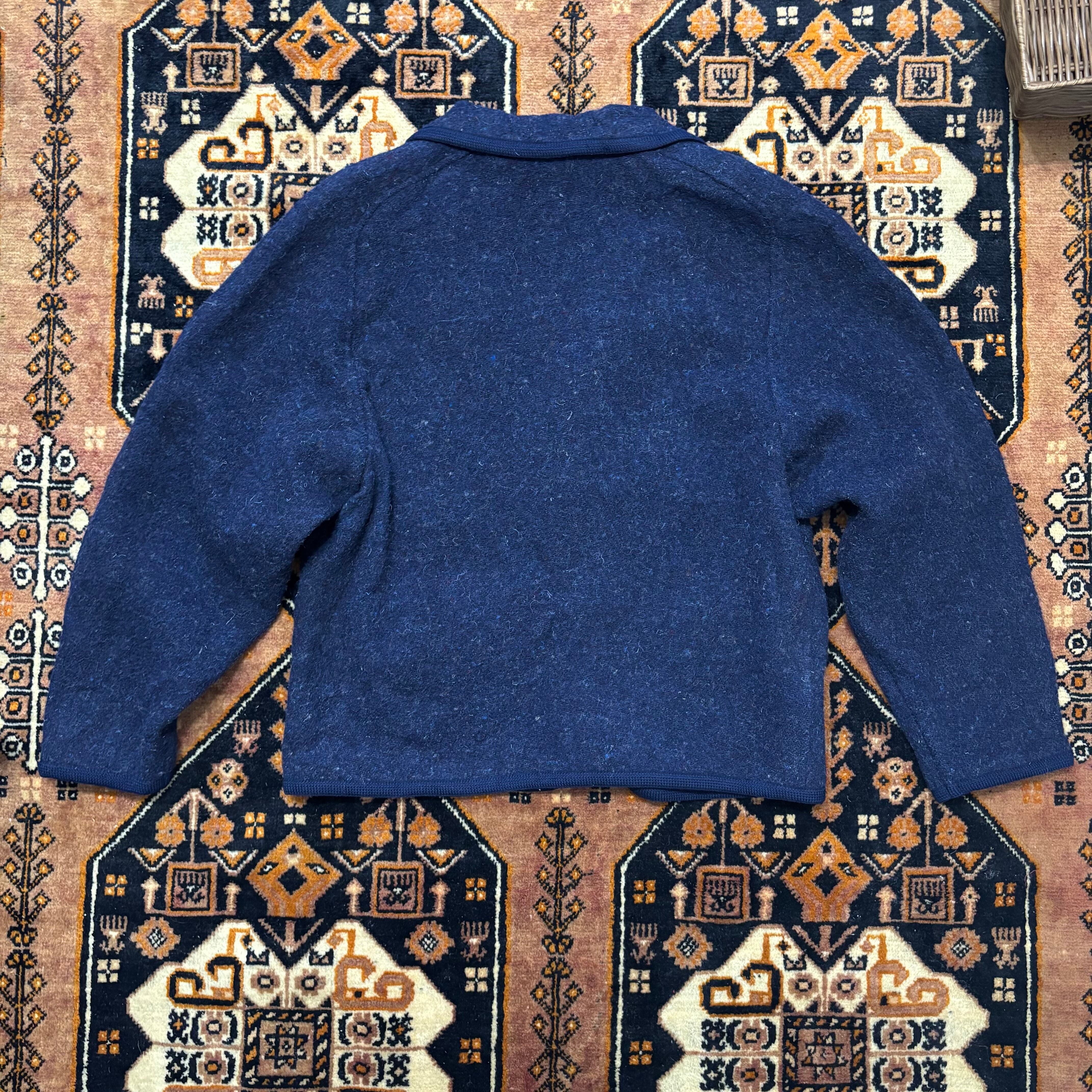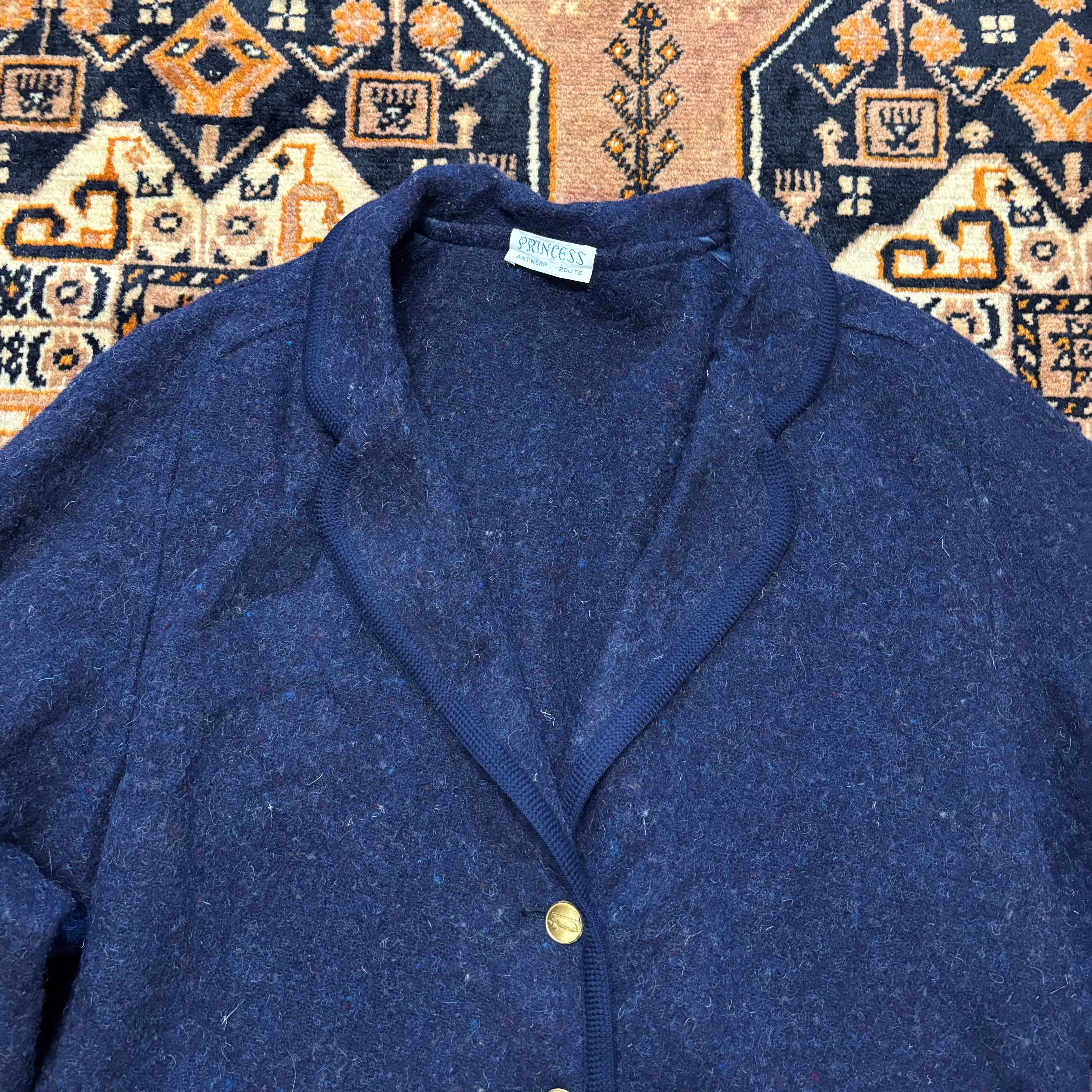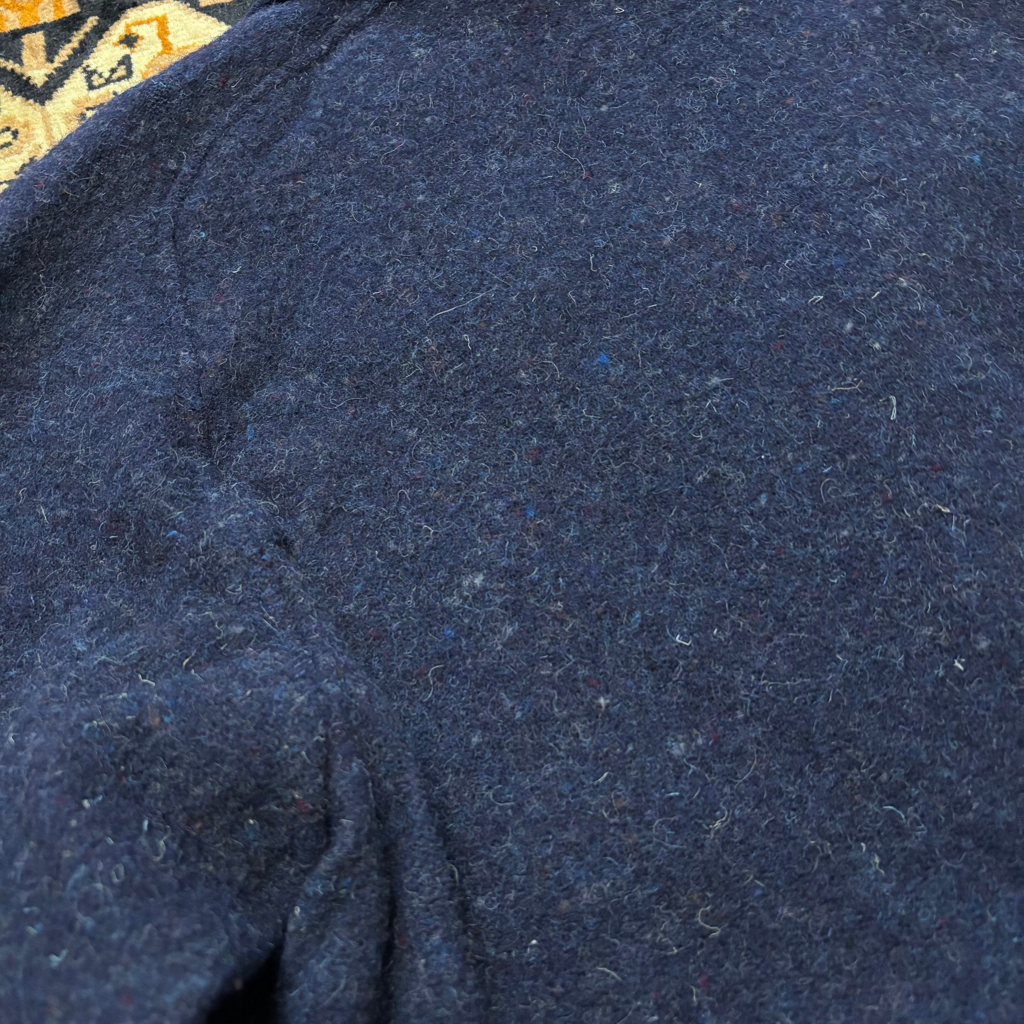80s ウールのネイビーに少しネップ風なカラフルさが混じったデザインが魅力的な一枚。