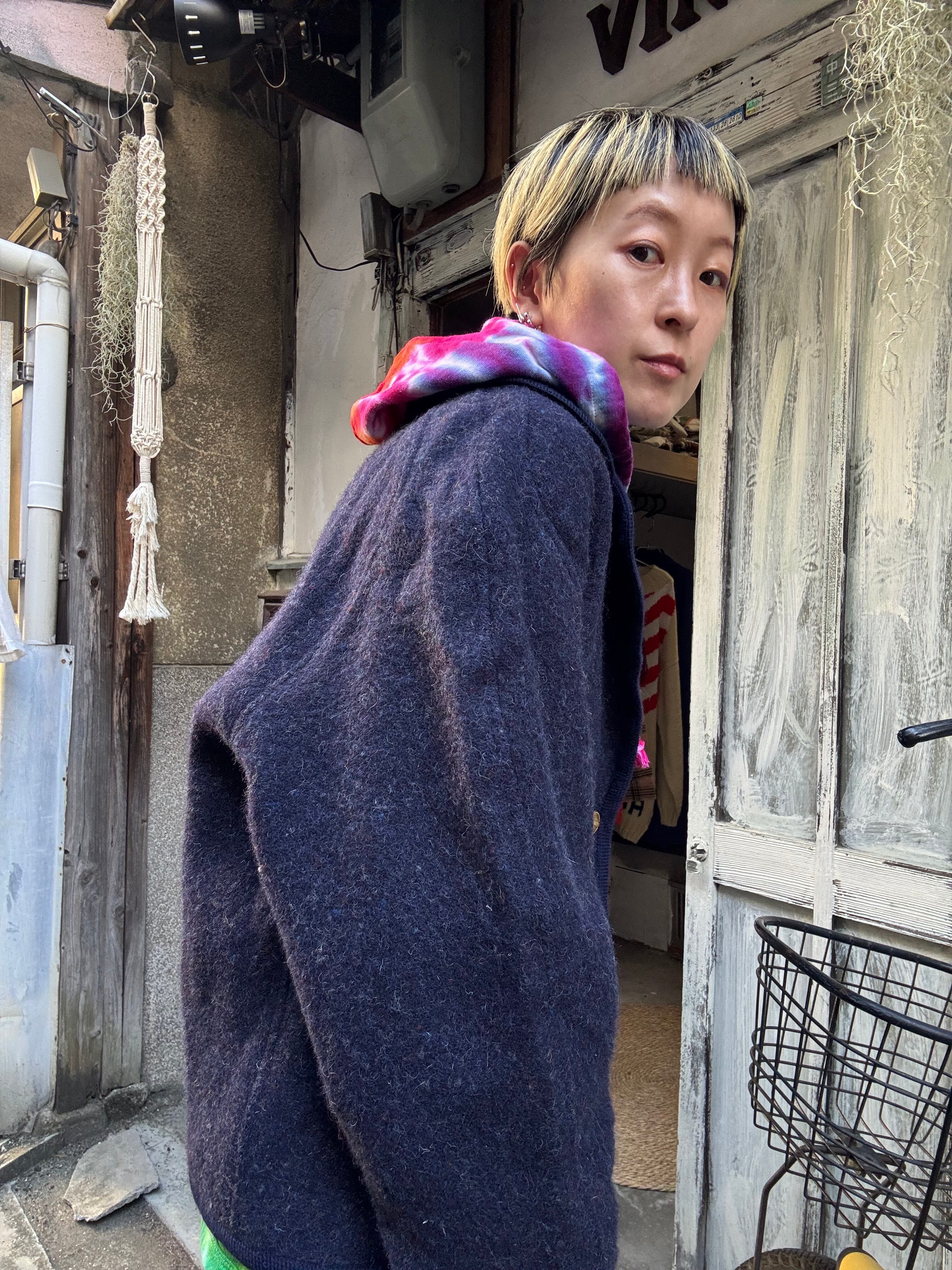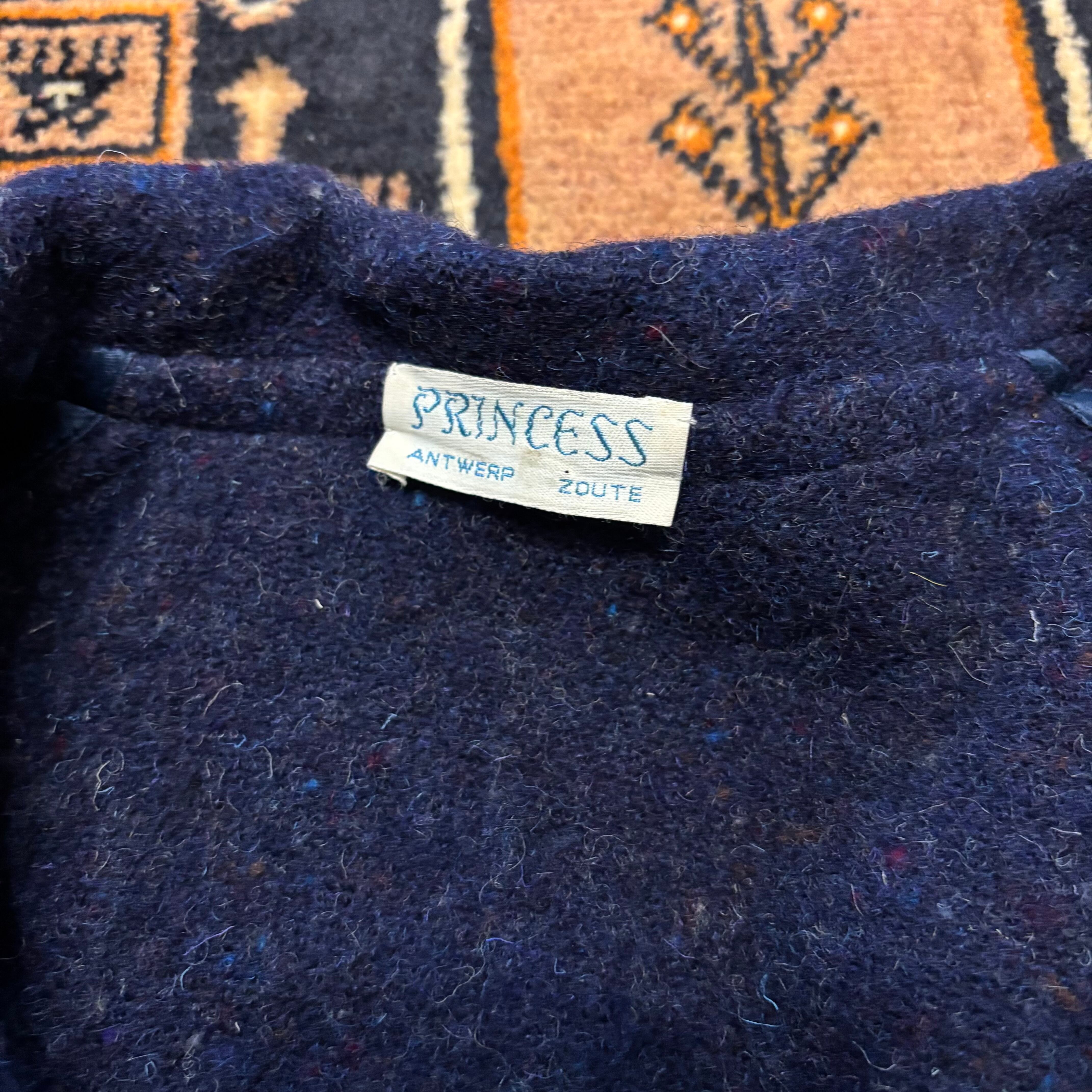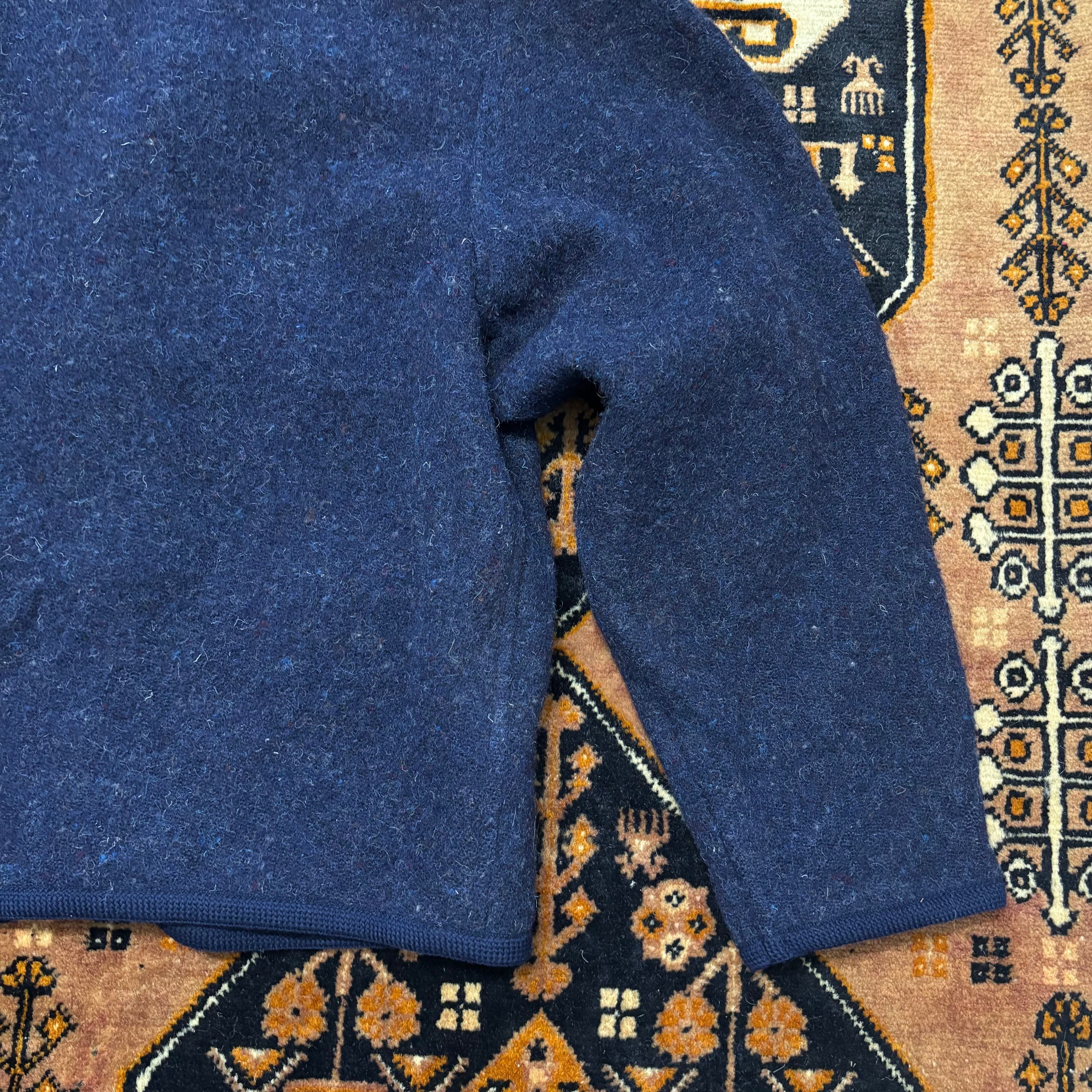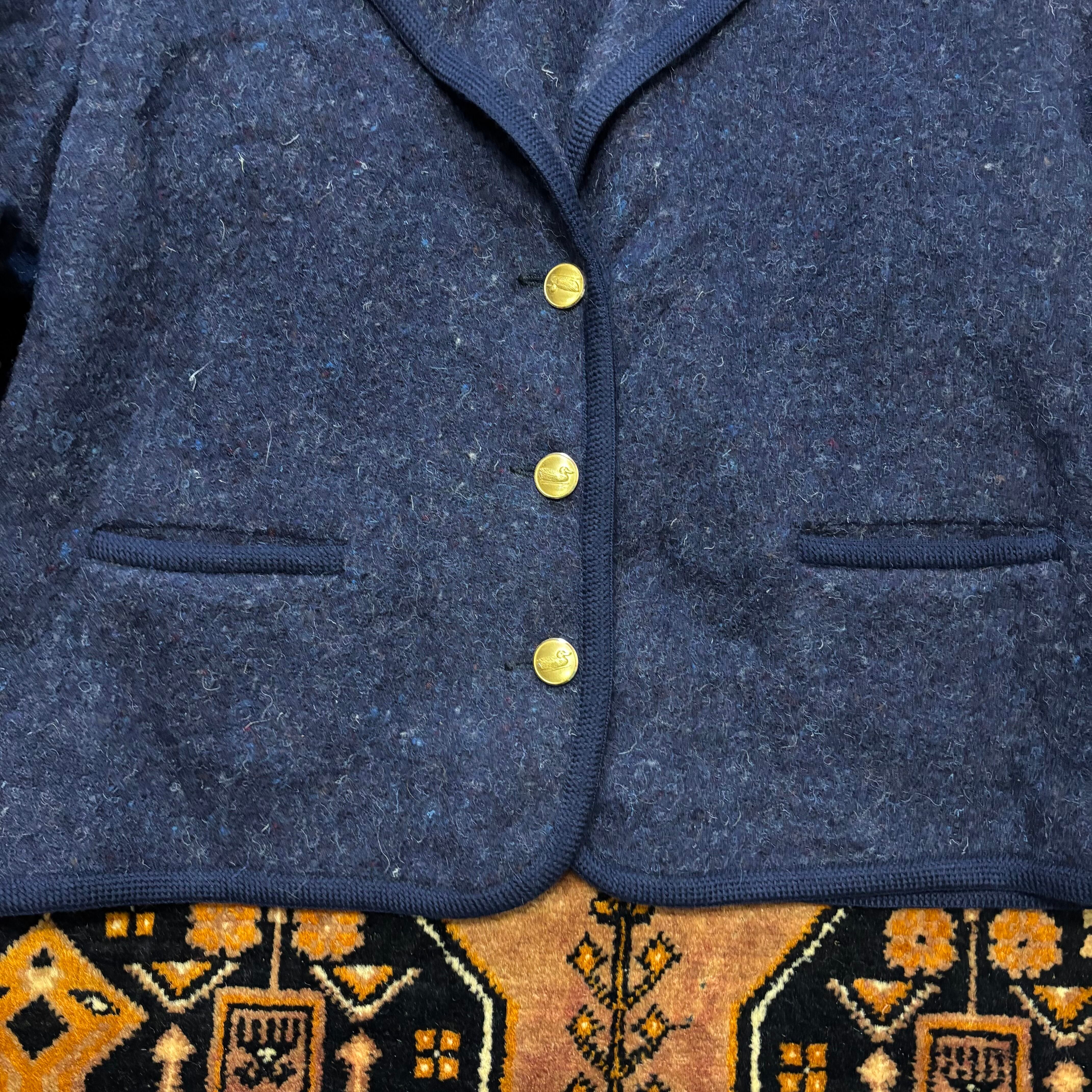 80s ウールのネイビーに少しネップ風なカラフルさが混じったデザインが魅力的な一枚。