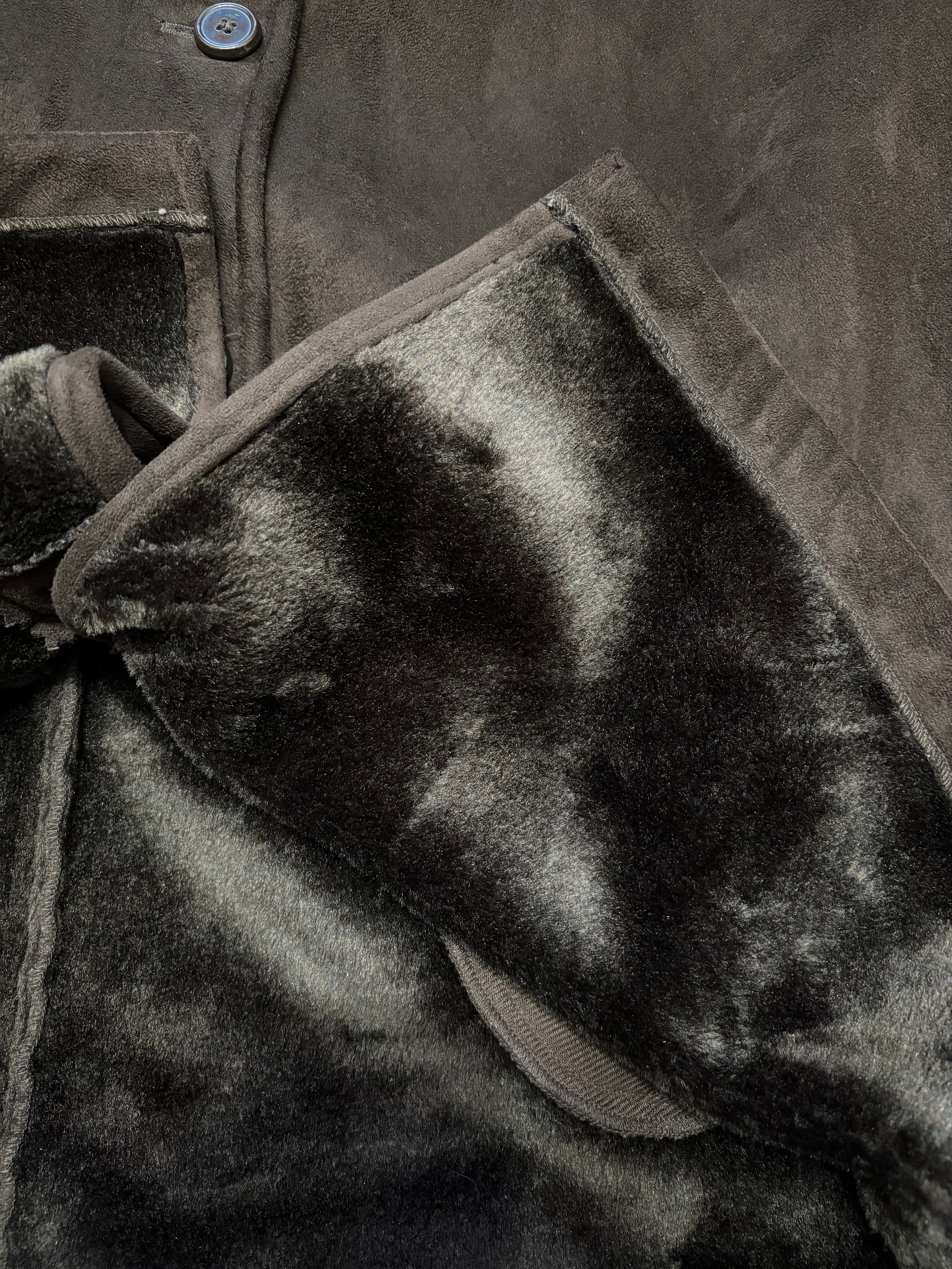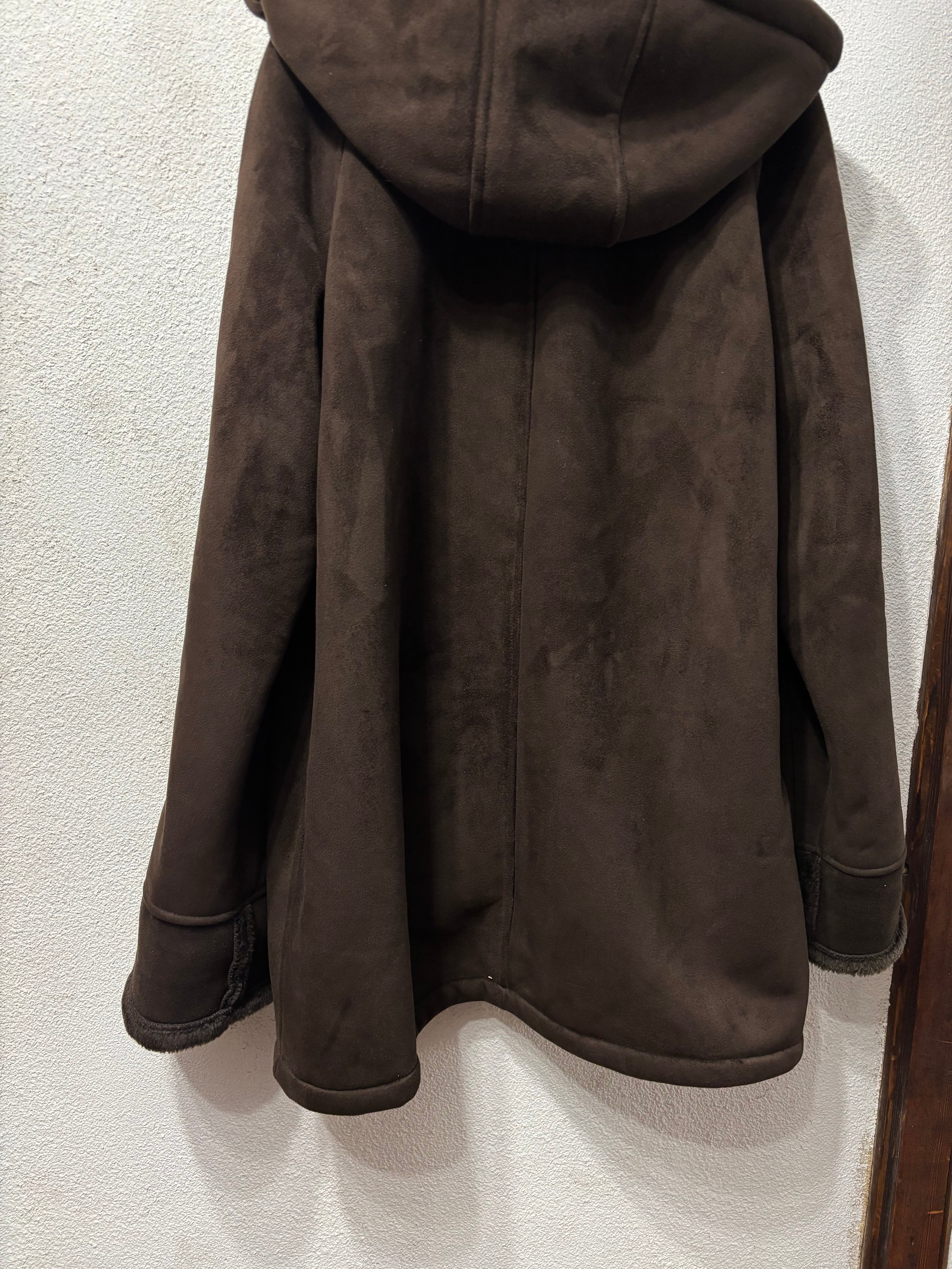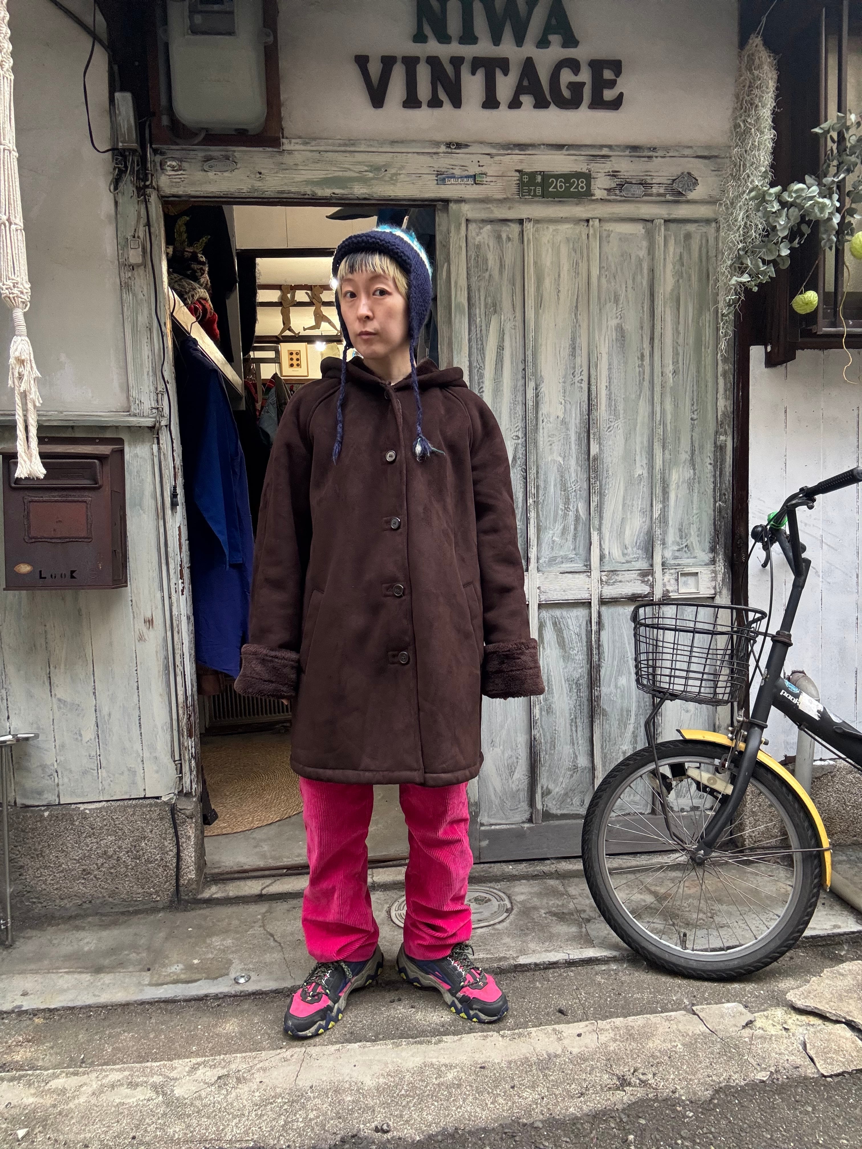 カラーもダークブラウンなので、どんなお洋服にも合わせやすい一枚です。
