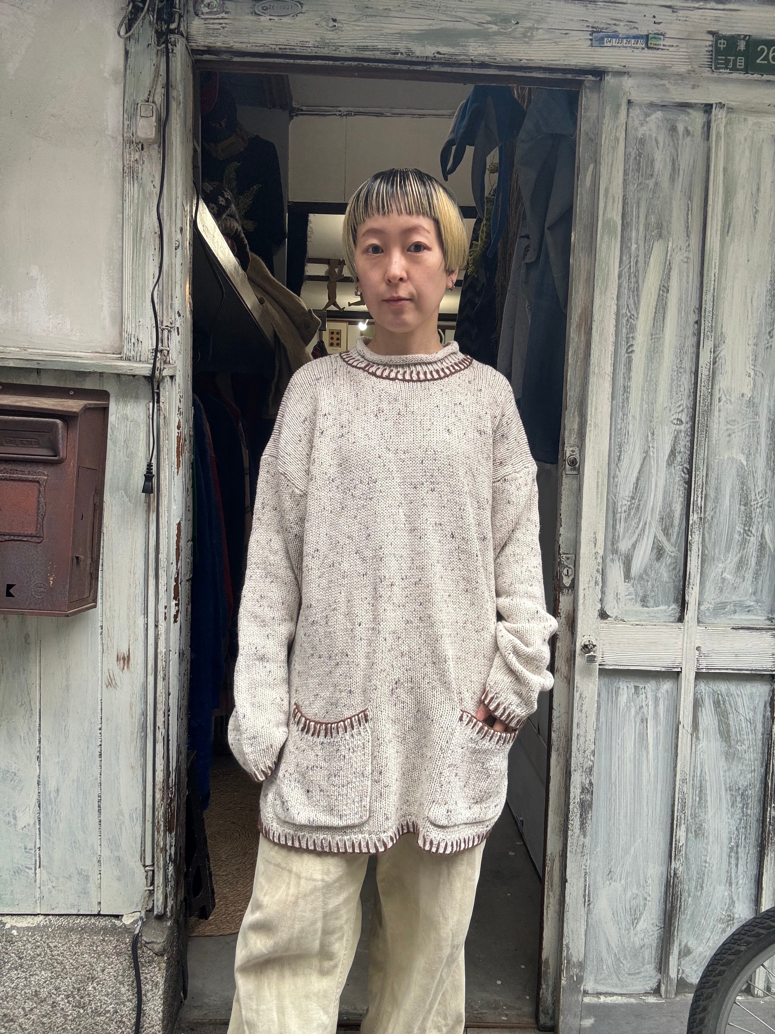 ロールネックデザインにポケット付き。
