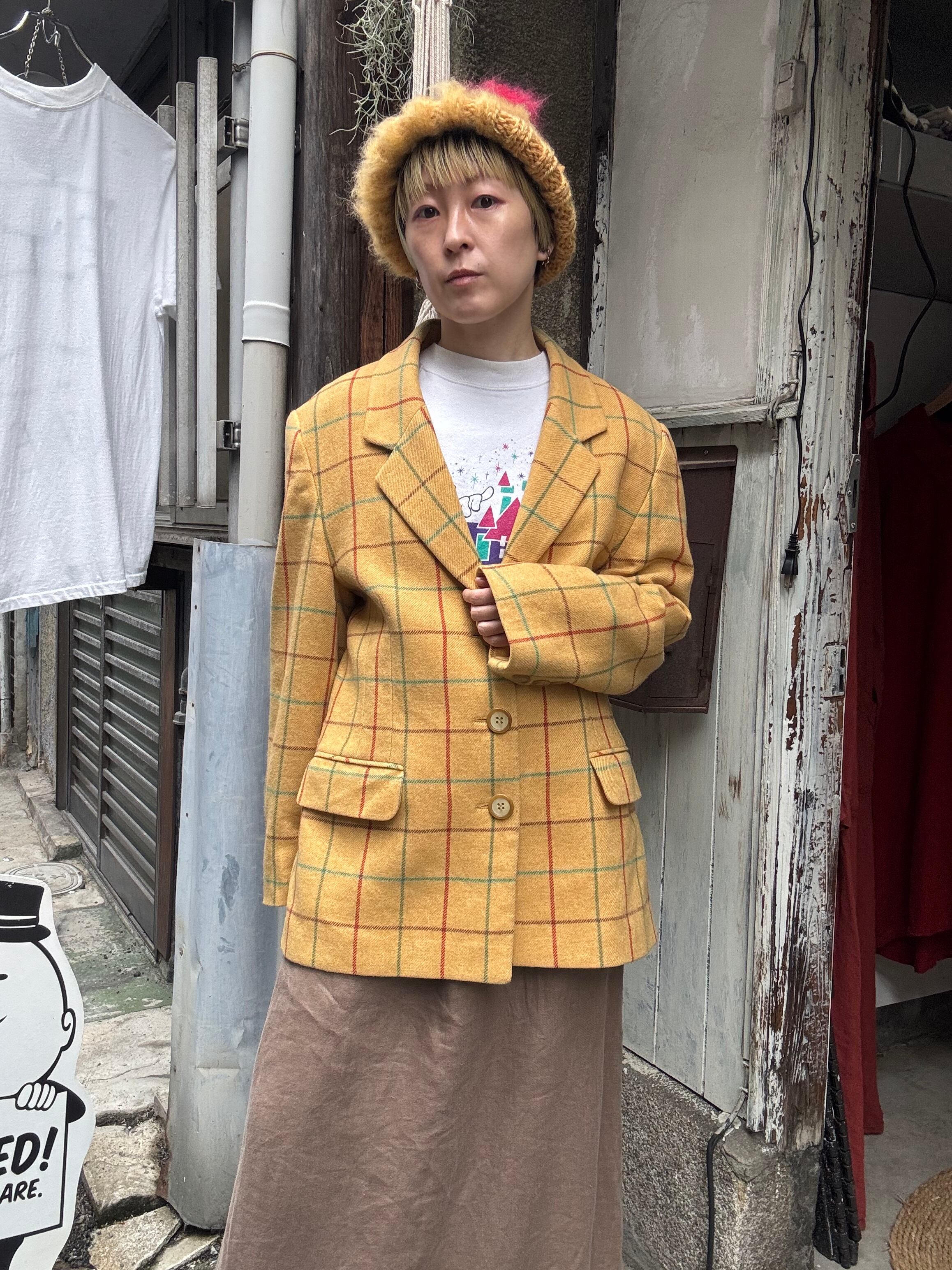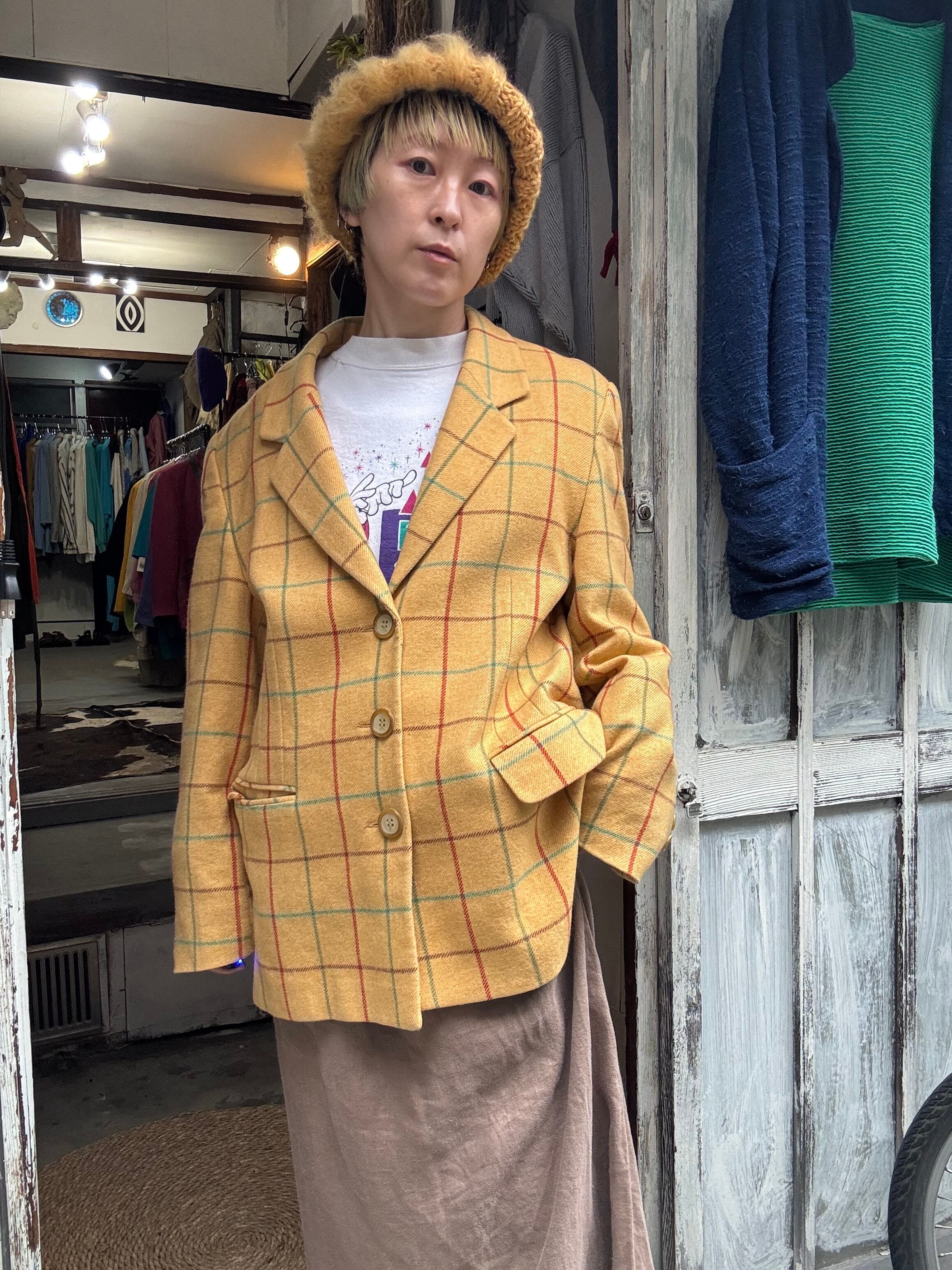 yellow check wool jacket