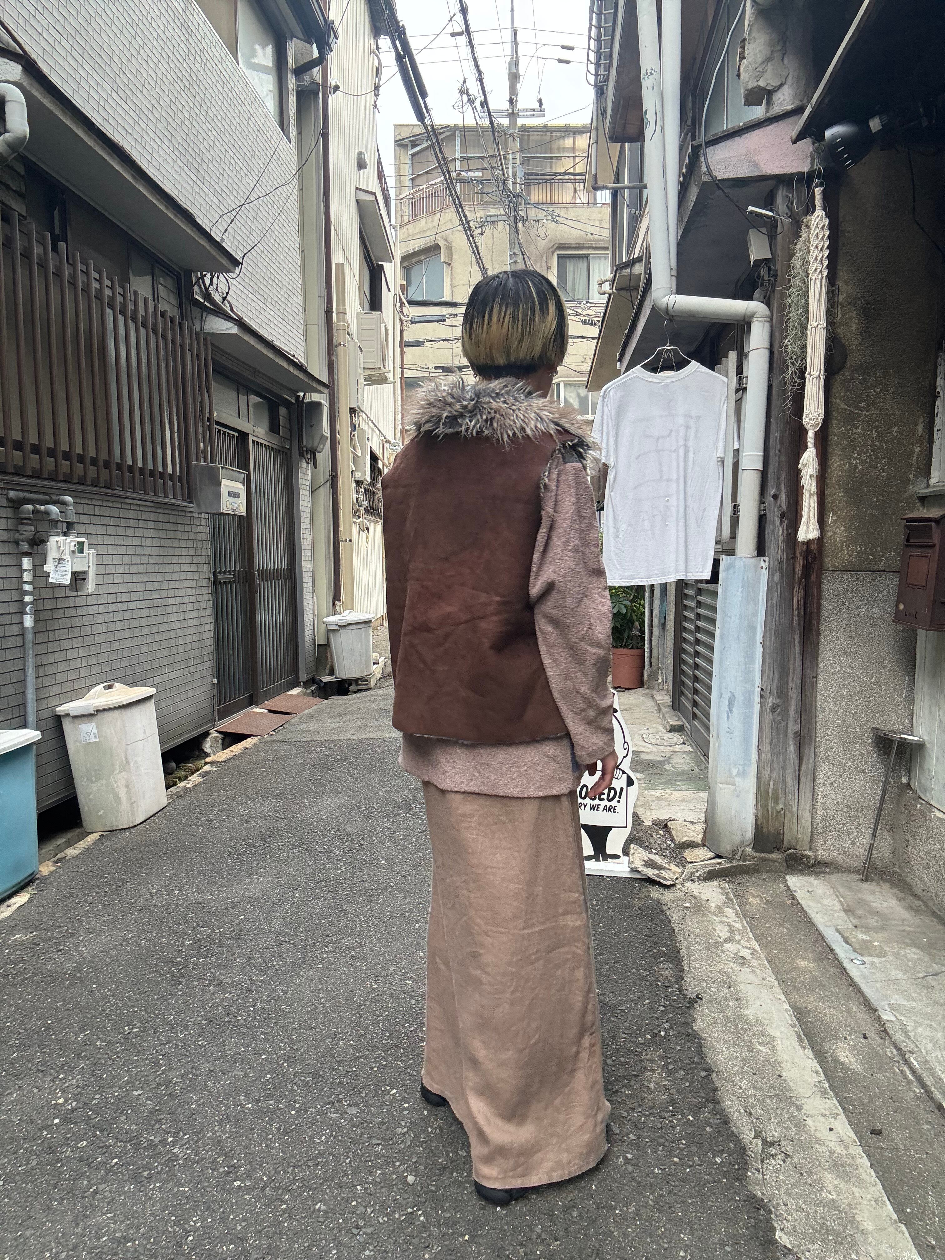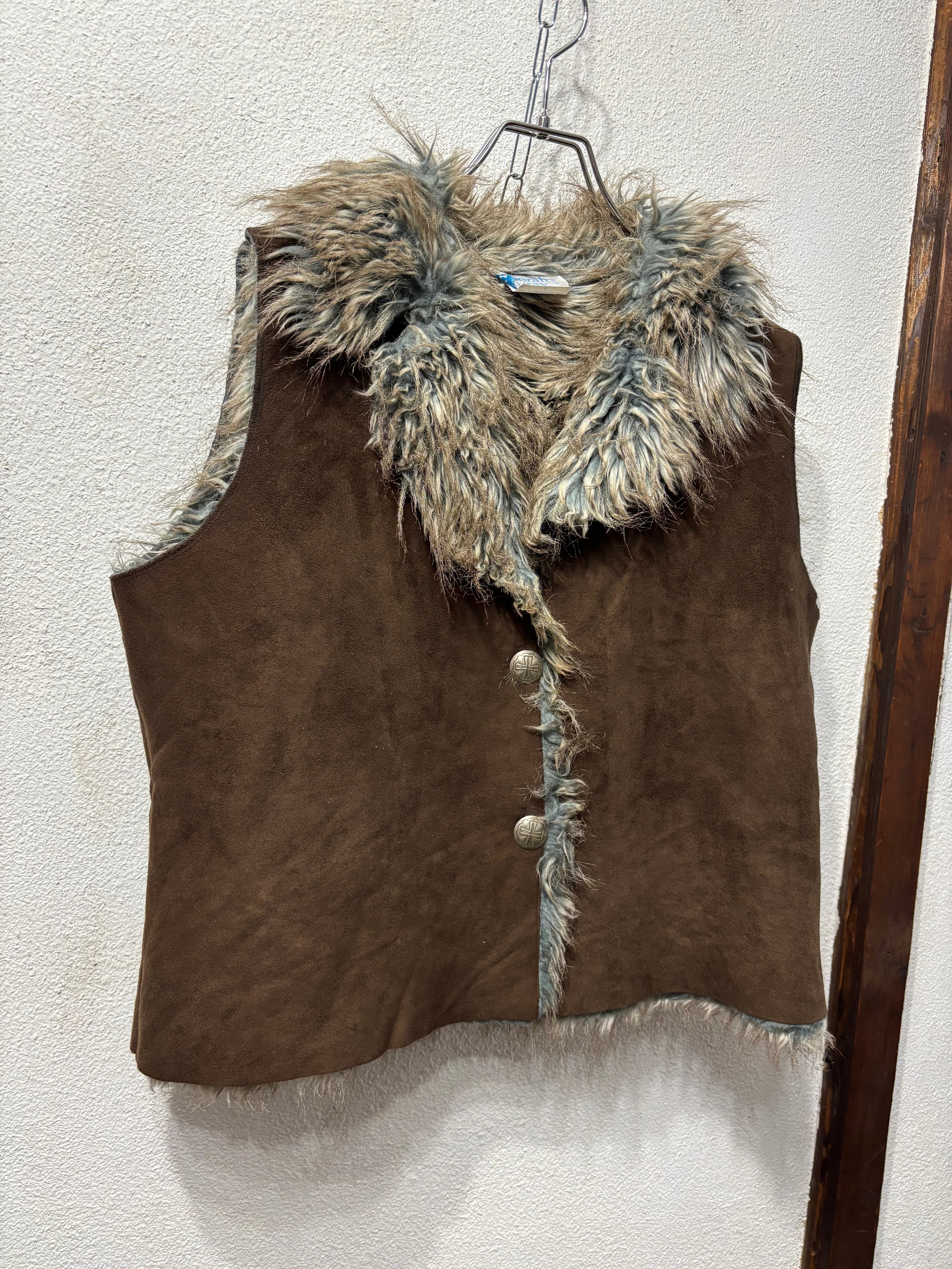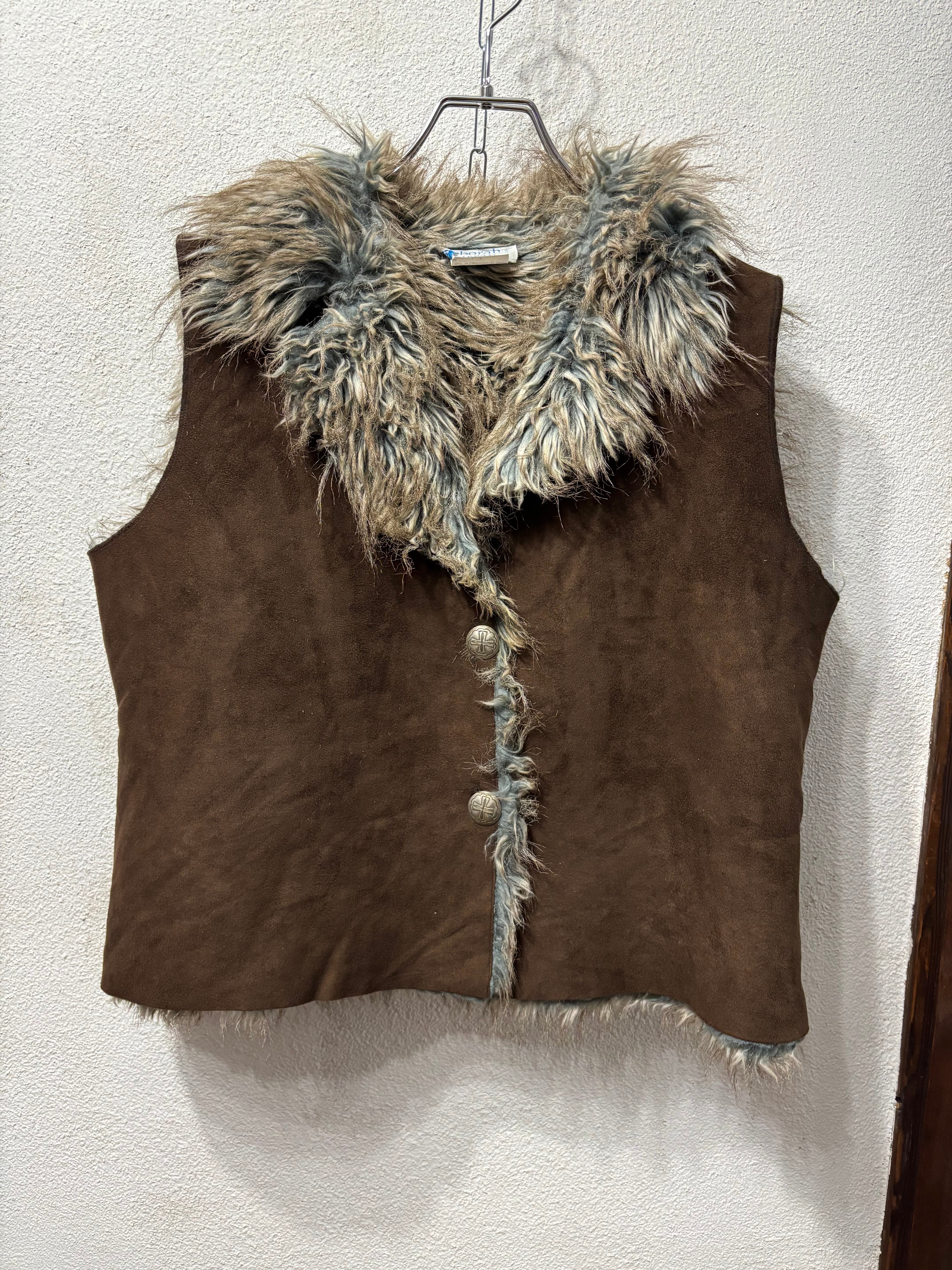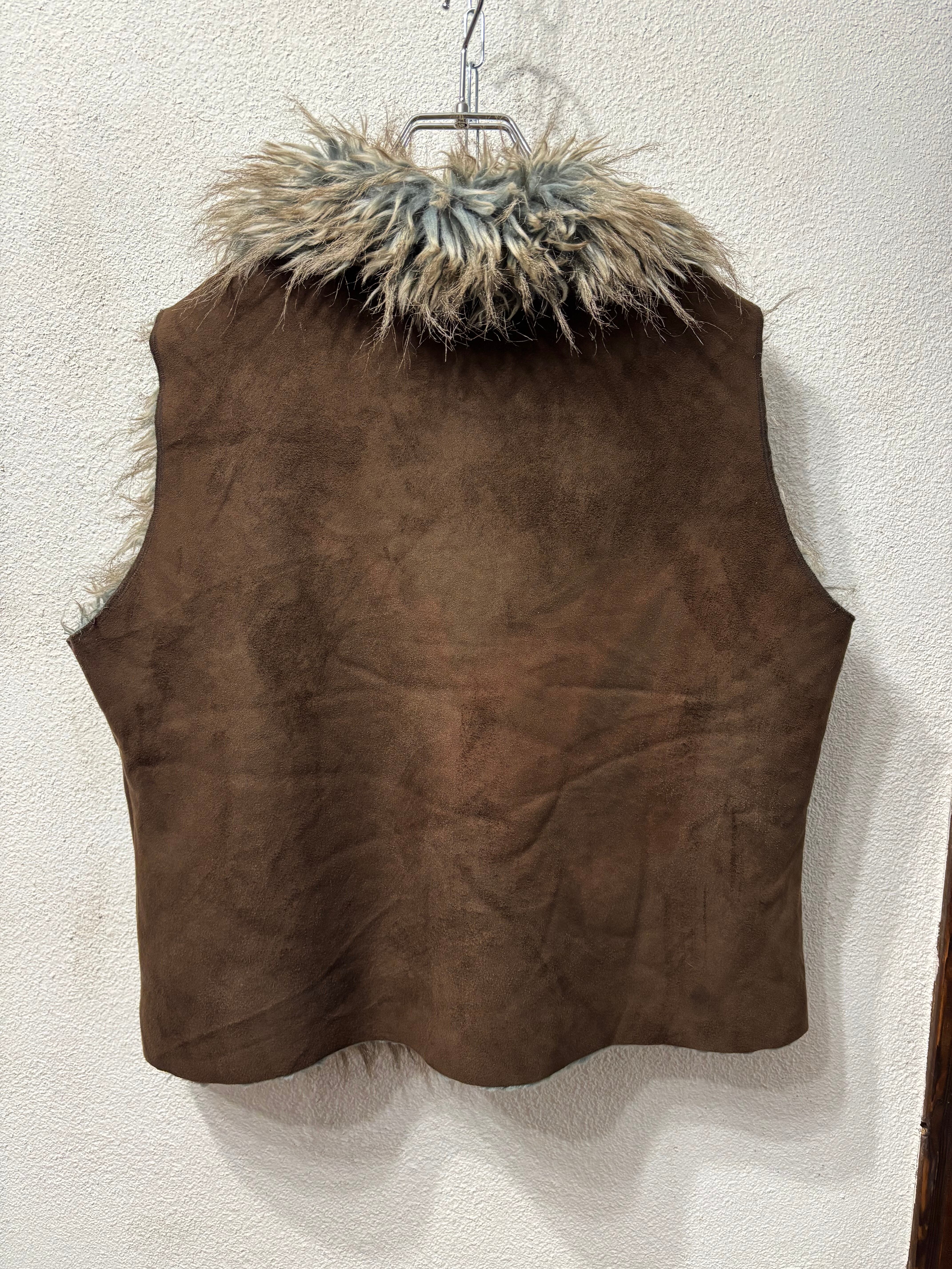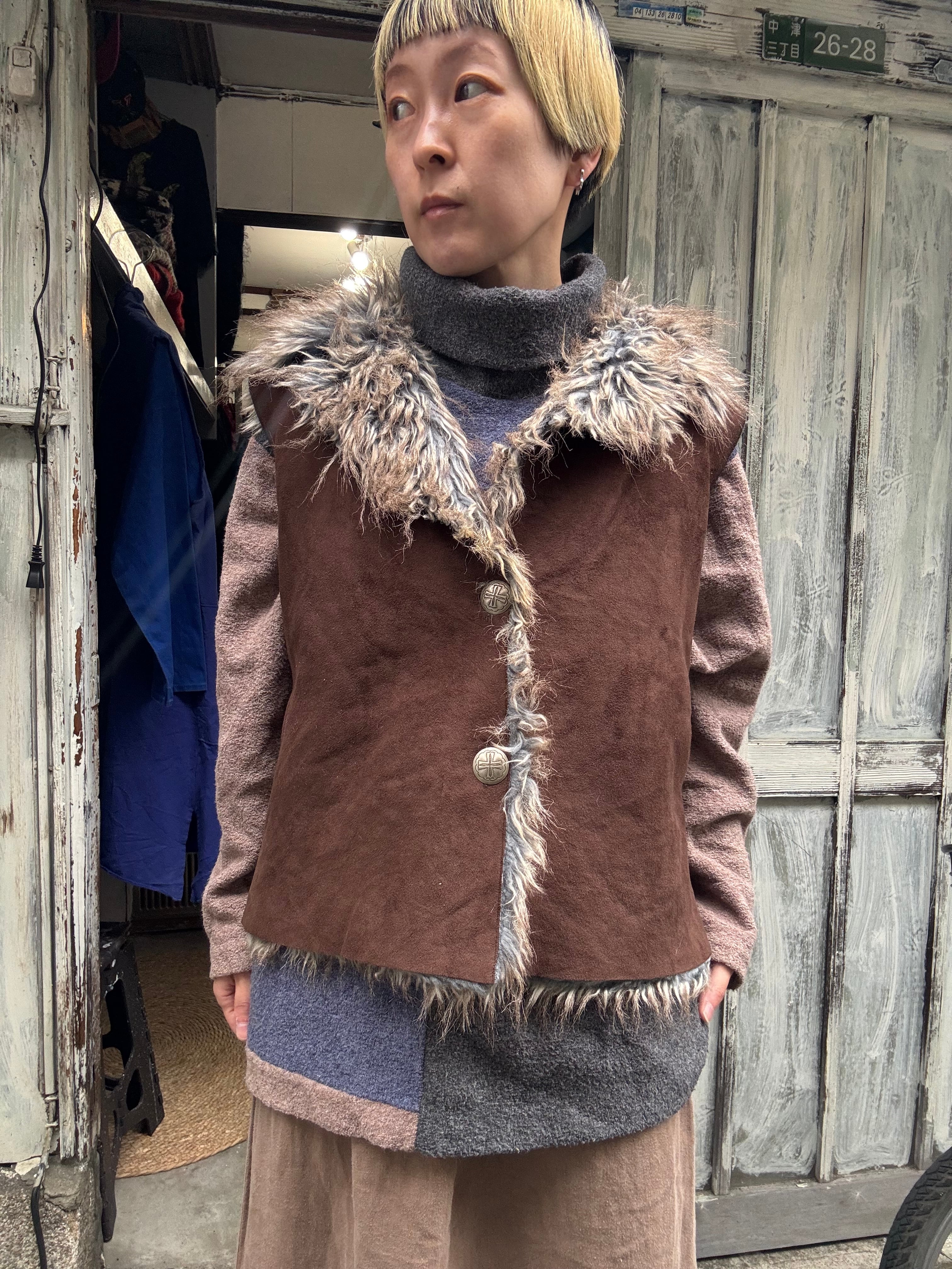 エコファーとフェイクレザーのブラウンカラーのベスト。