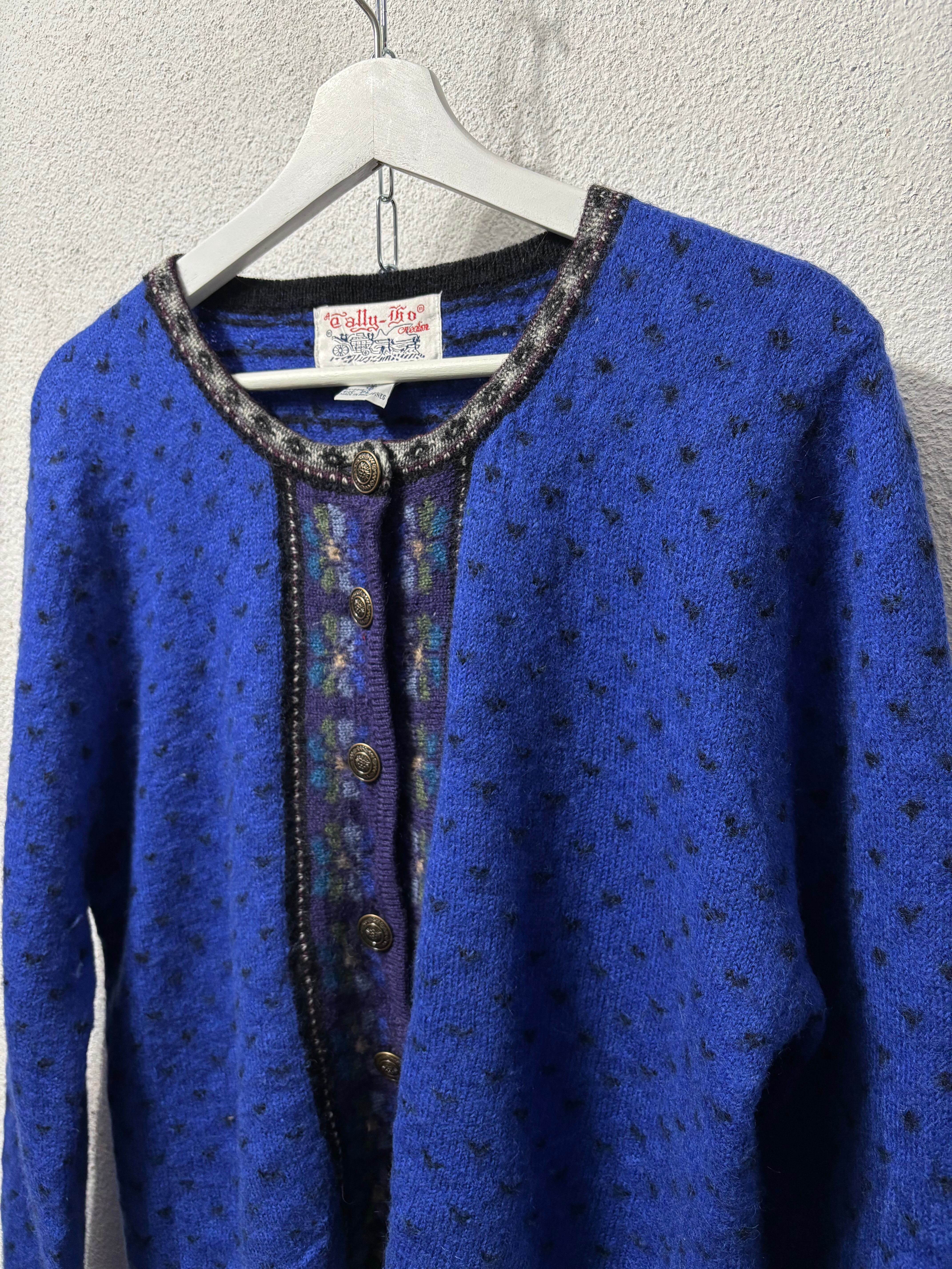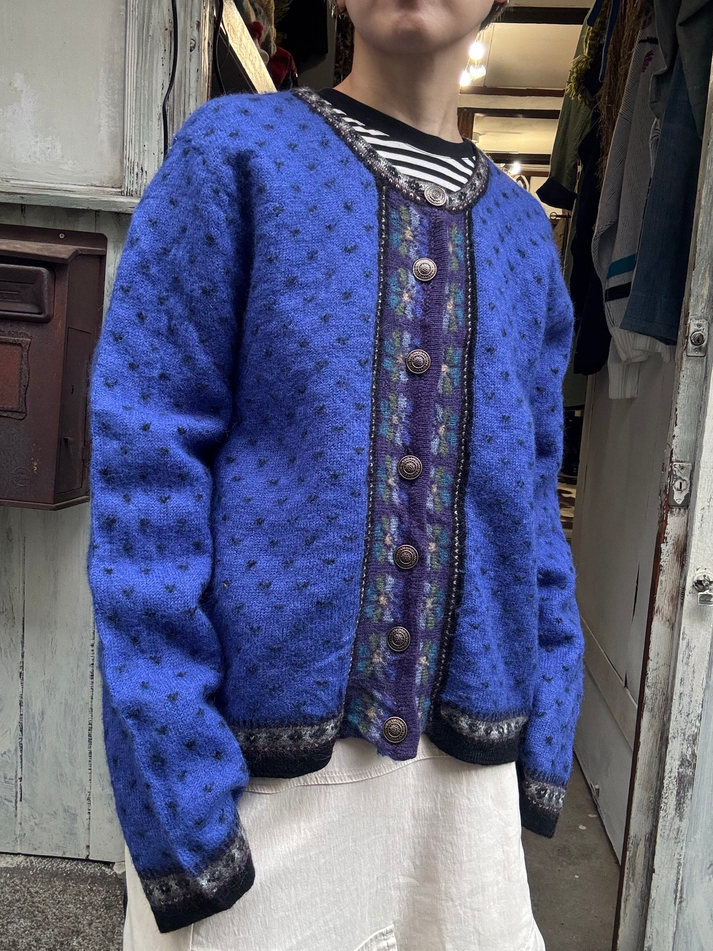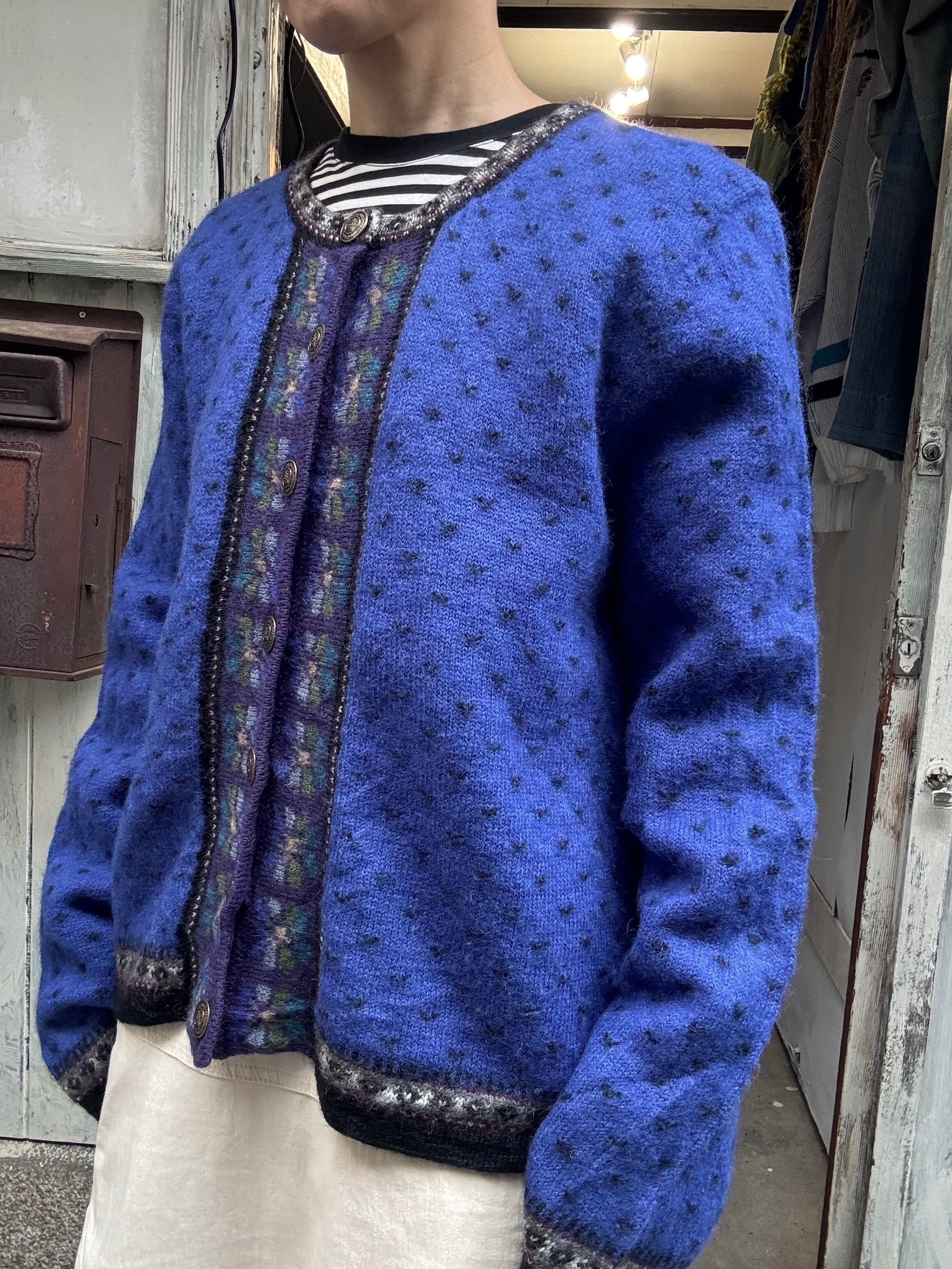 バーズアイ柄と花柄がmixされたカーディガン。
