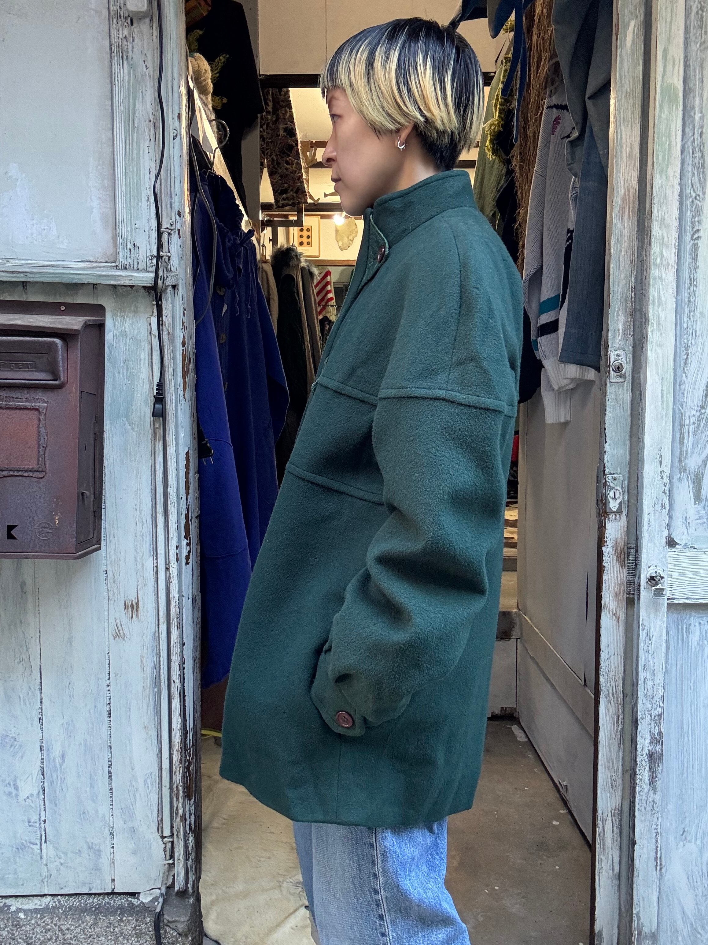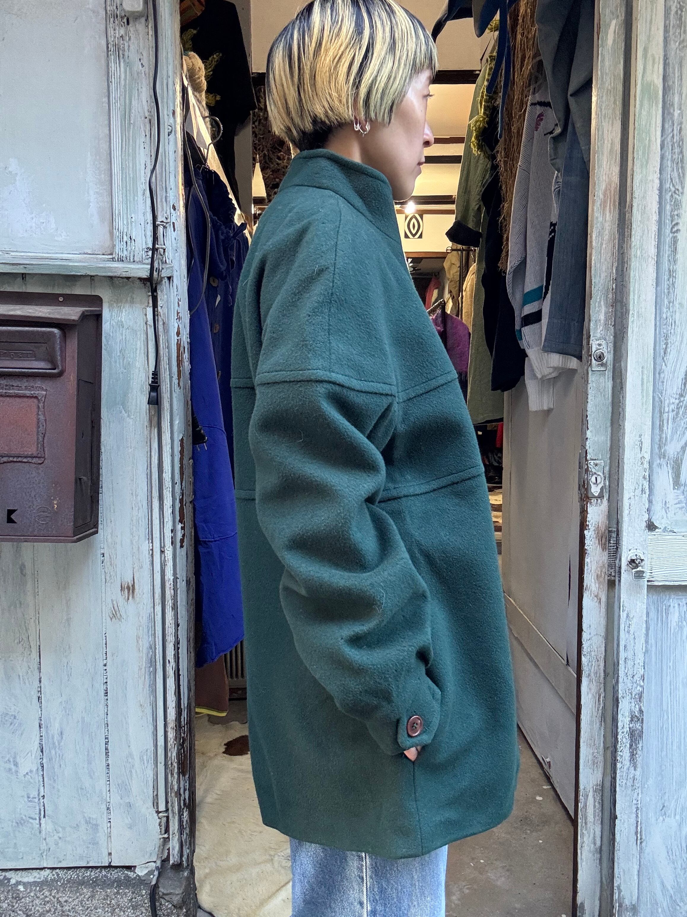 カシミアウールダークグリーンカラーのミドル丈コートです。