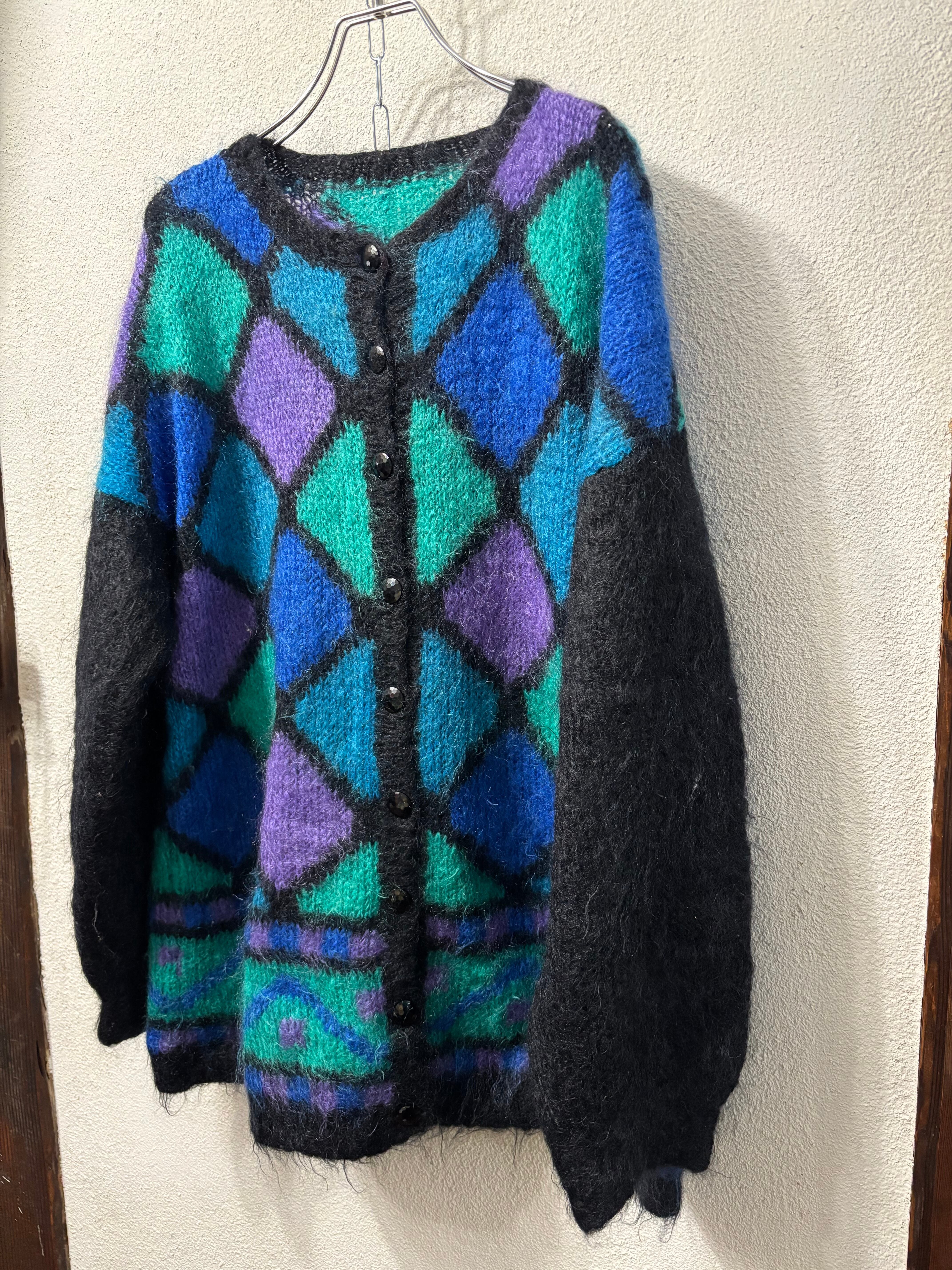 diamond design mohair cardigan