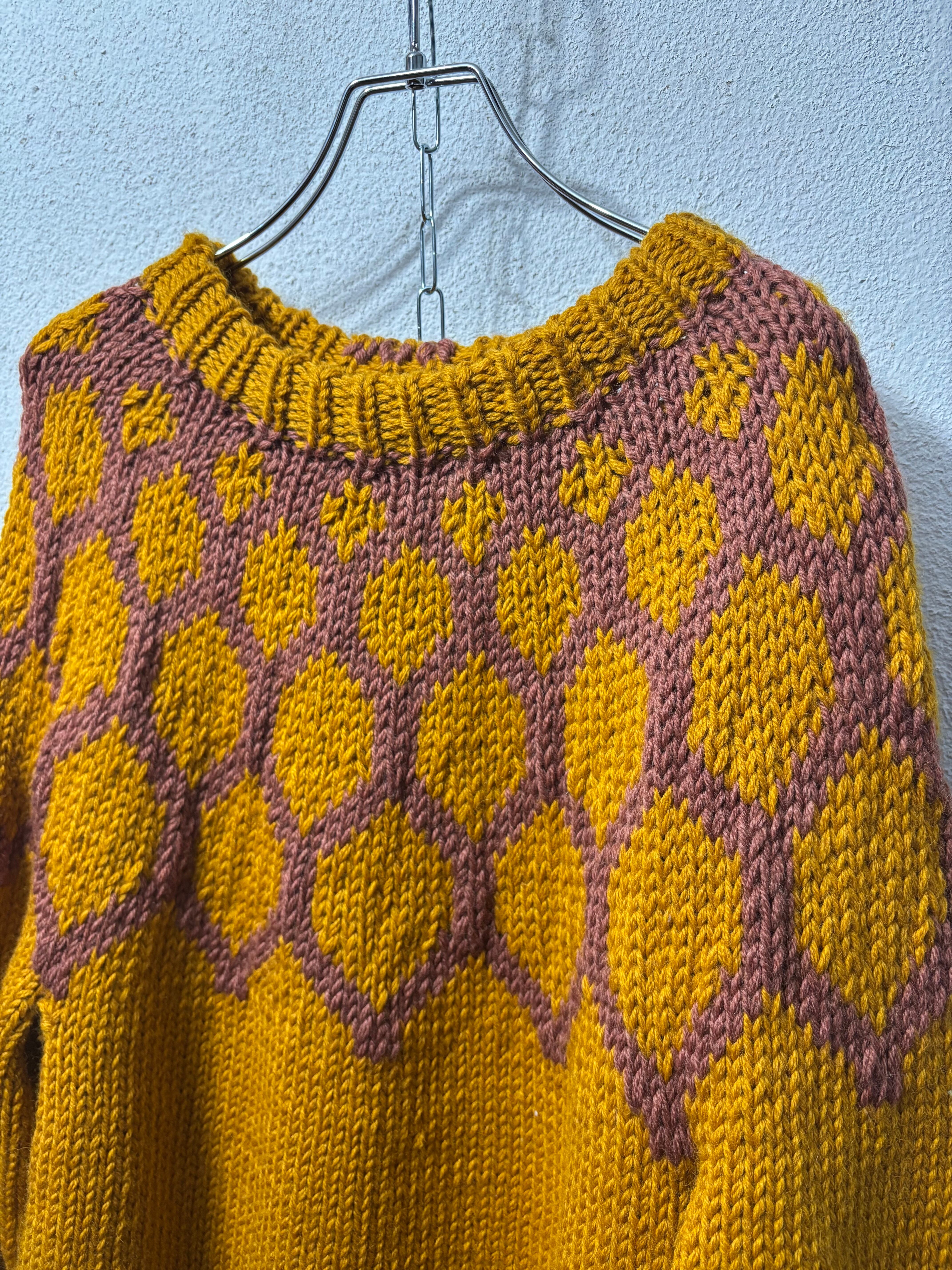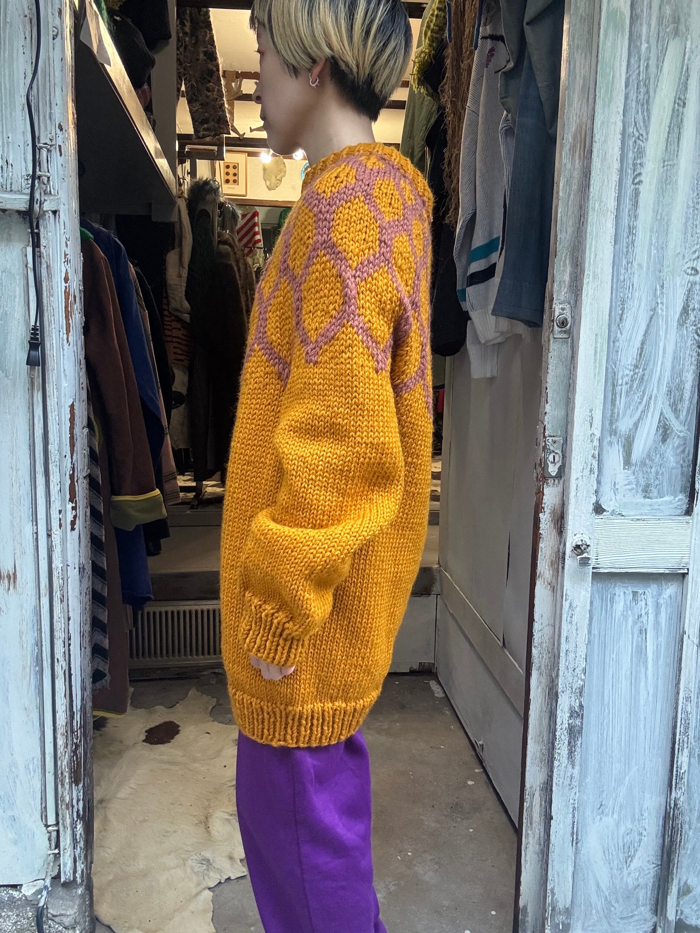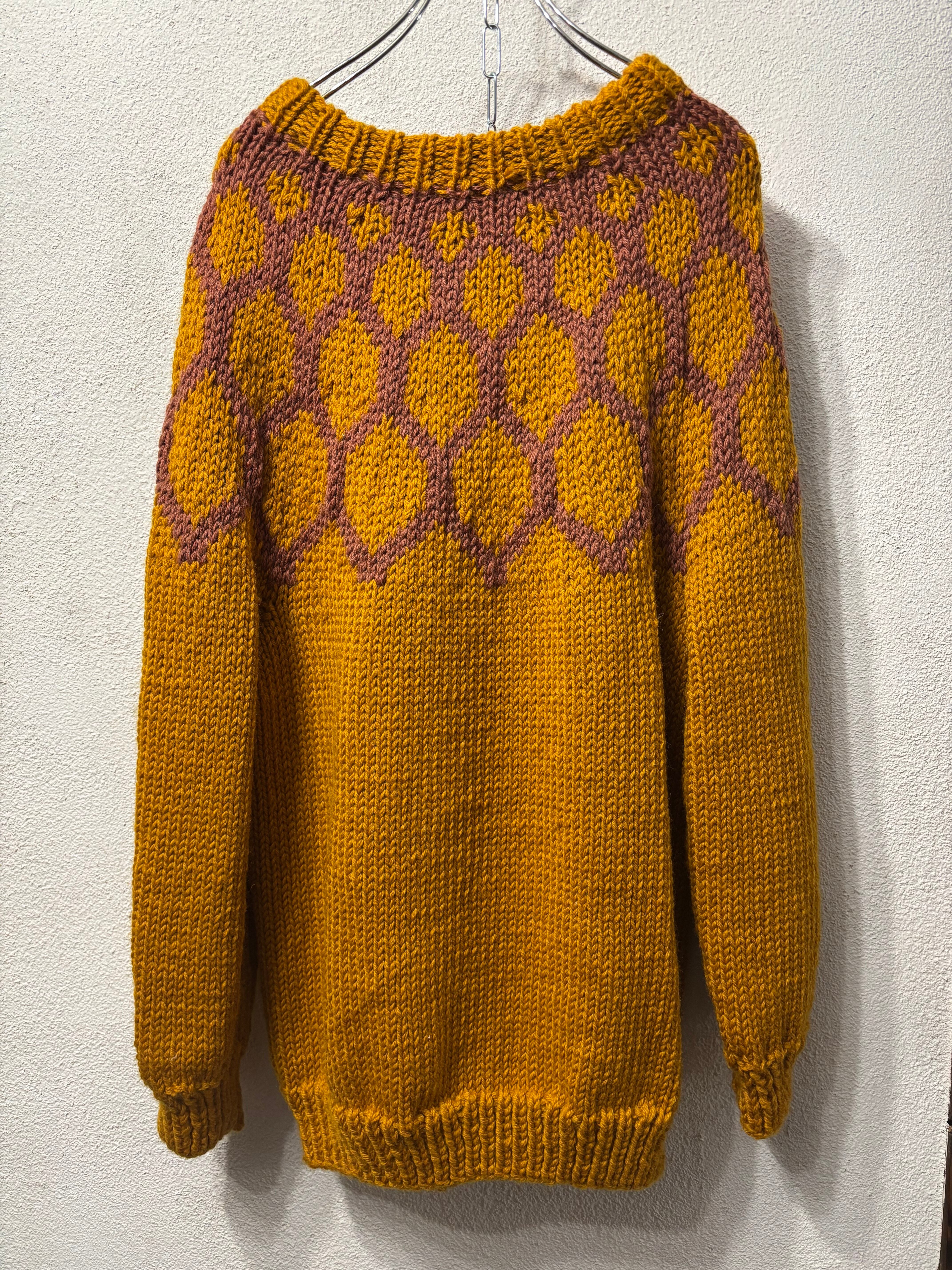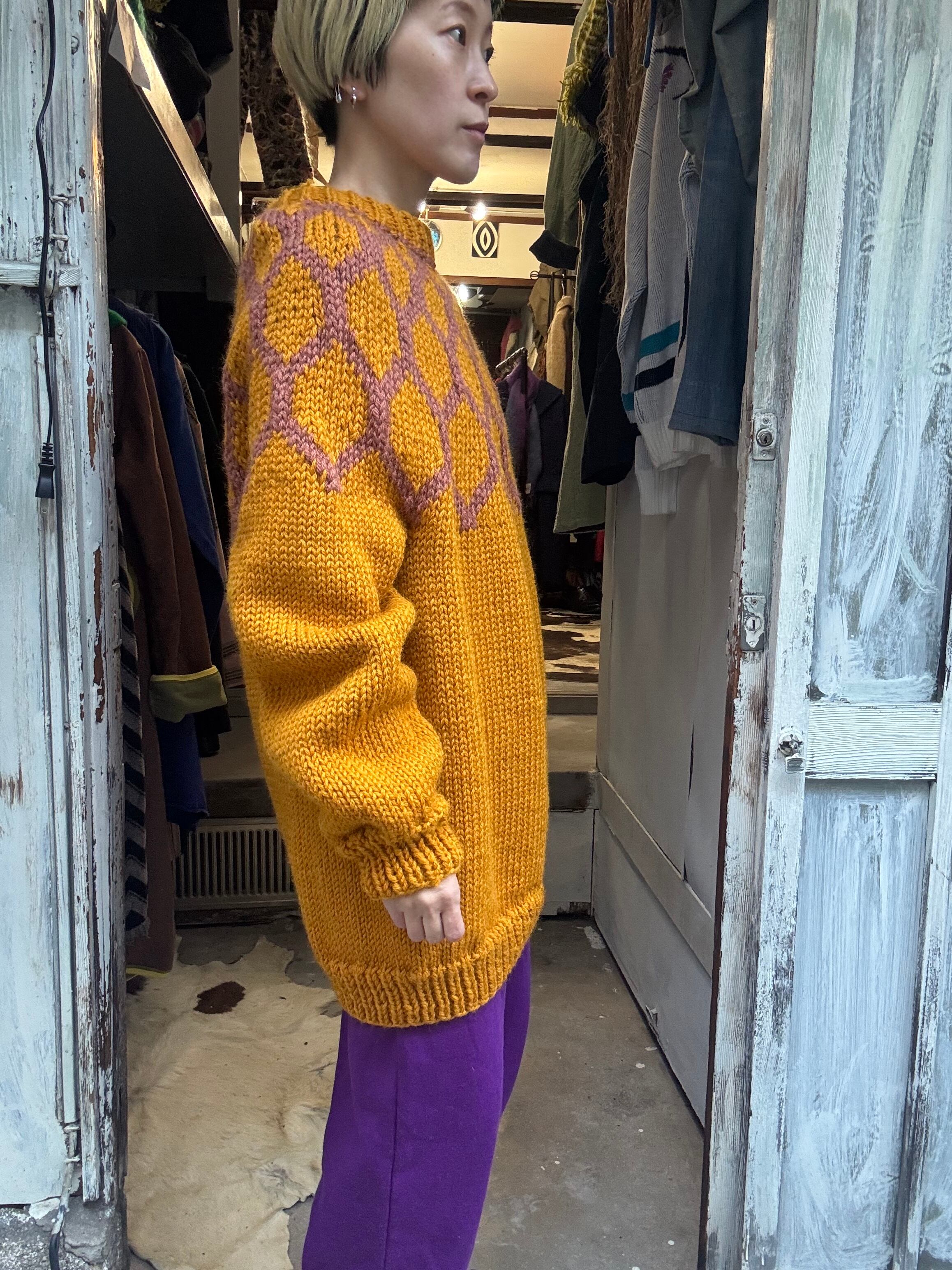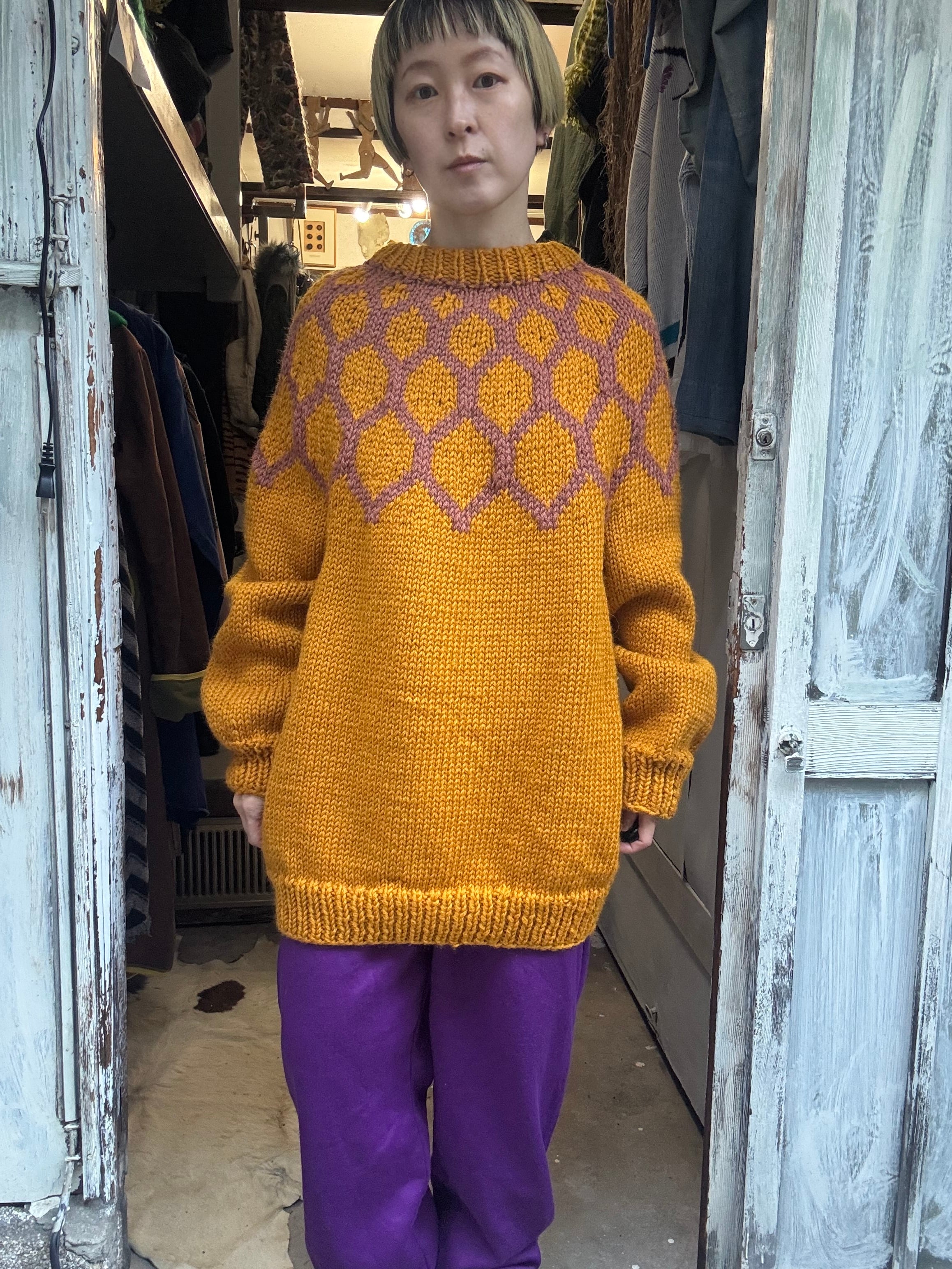 イエローマスタードカラーのノルディックセーター。