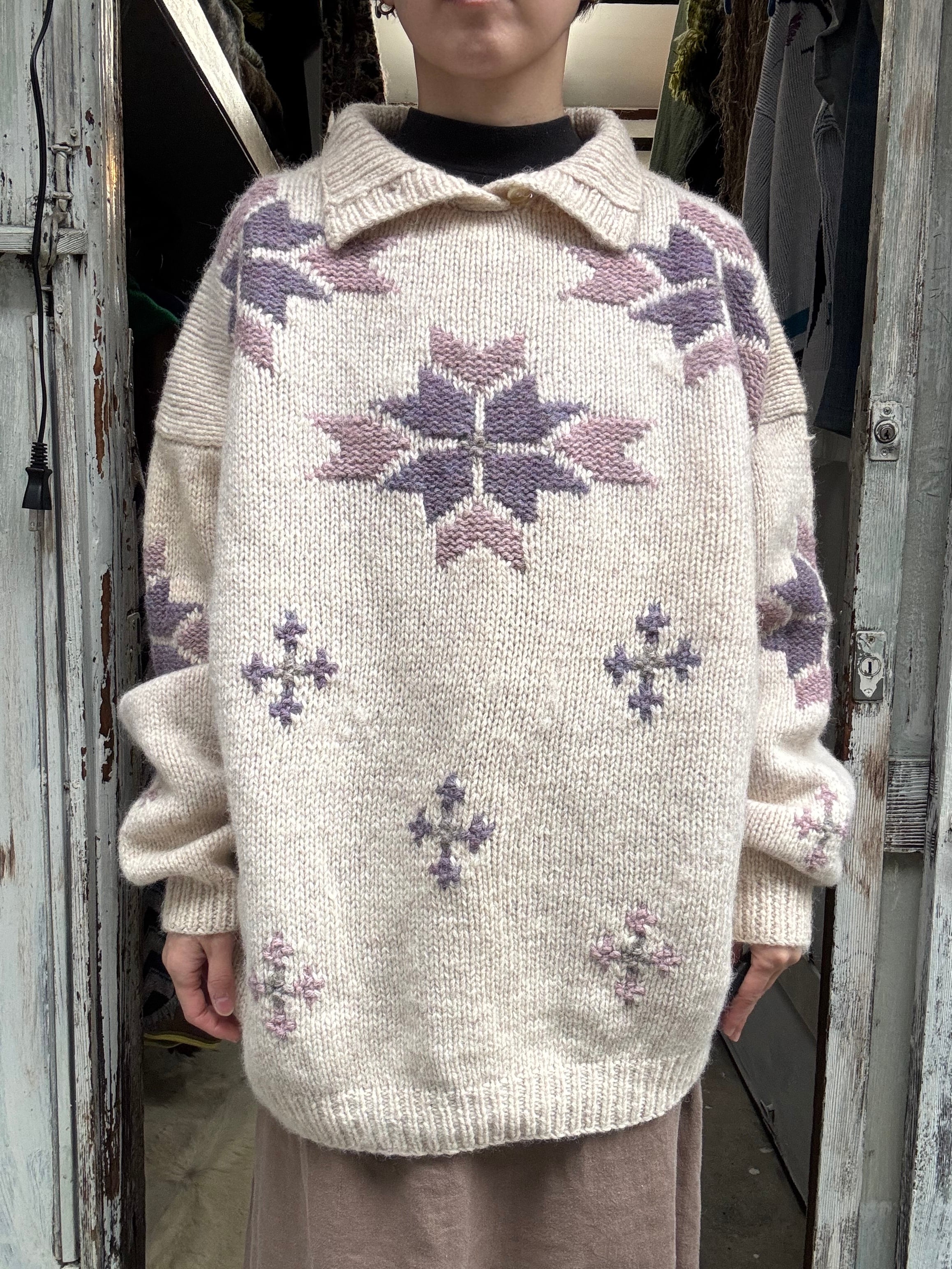 雪の結晶柄のデザインセーターです。