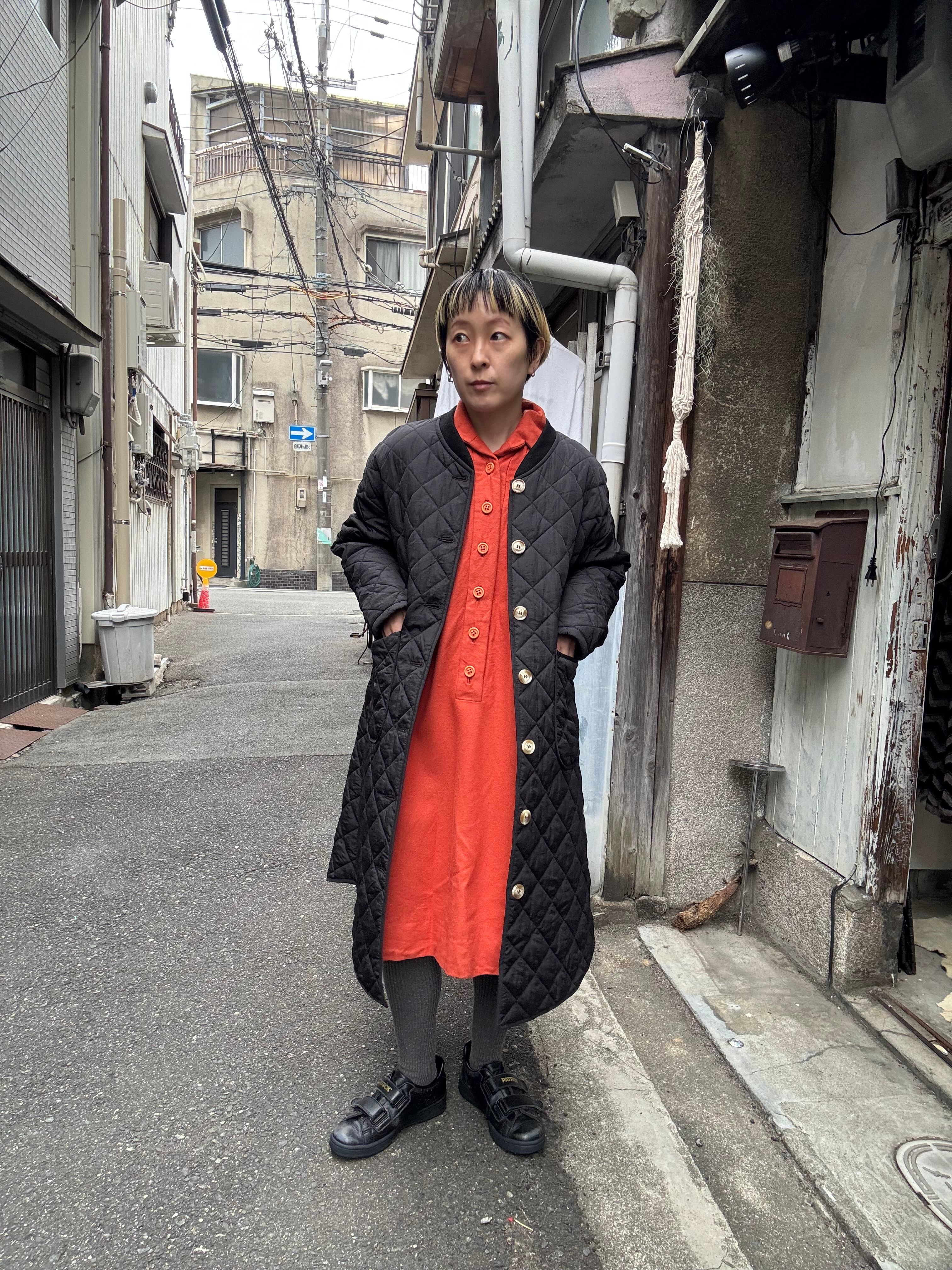 オレンジカラーのウールデザインコートです。