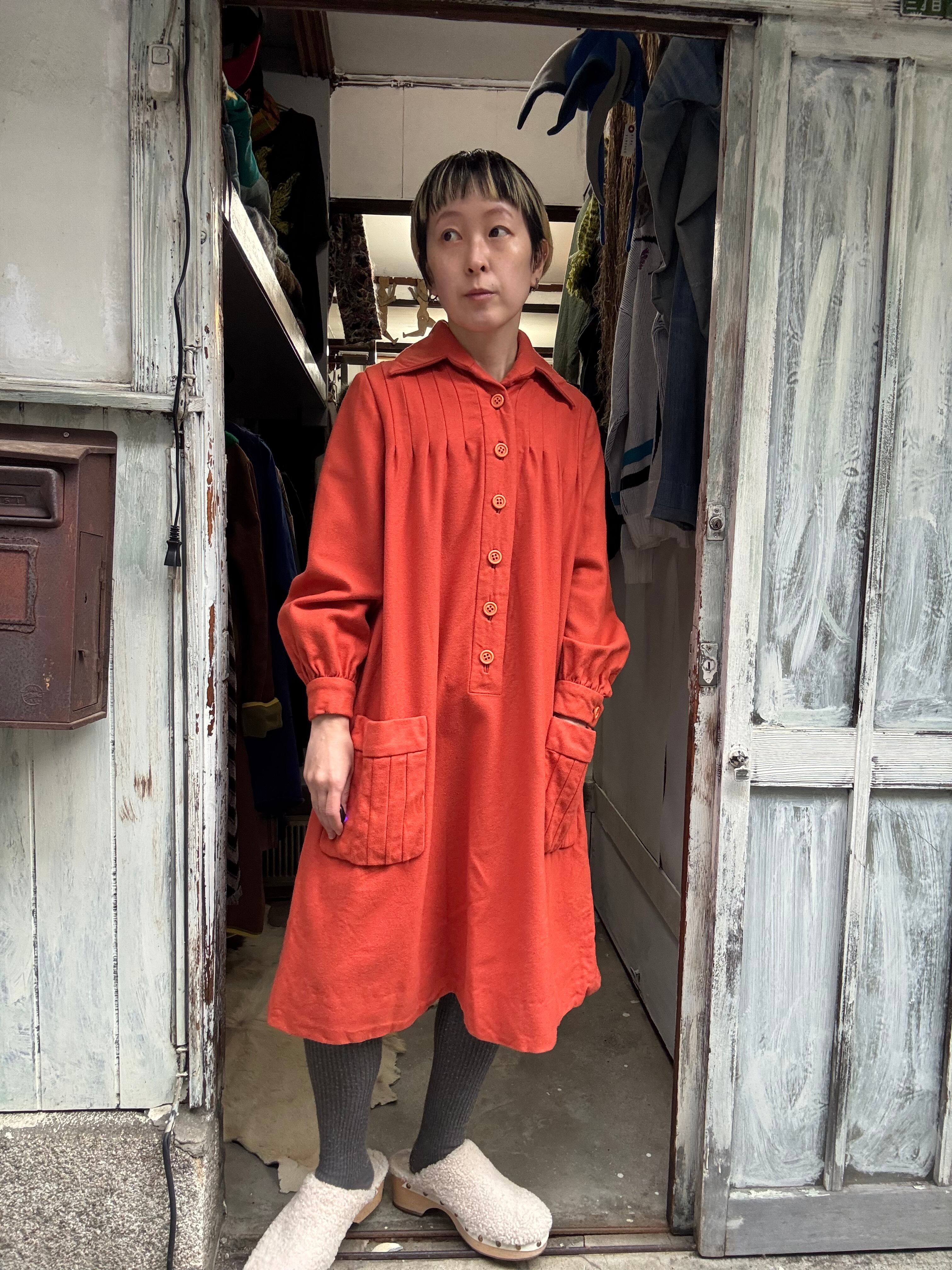 vintage orange wool design one-piece