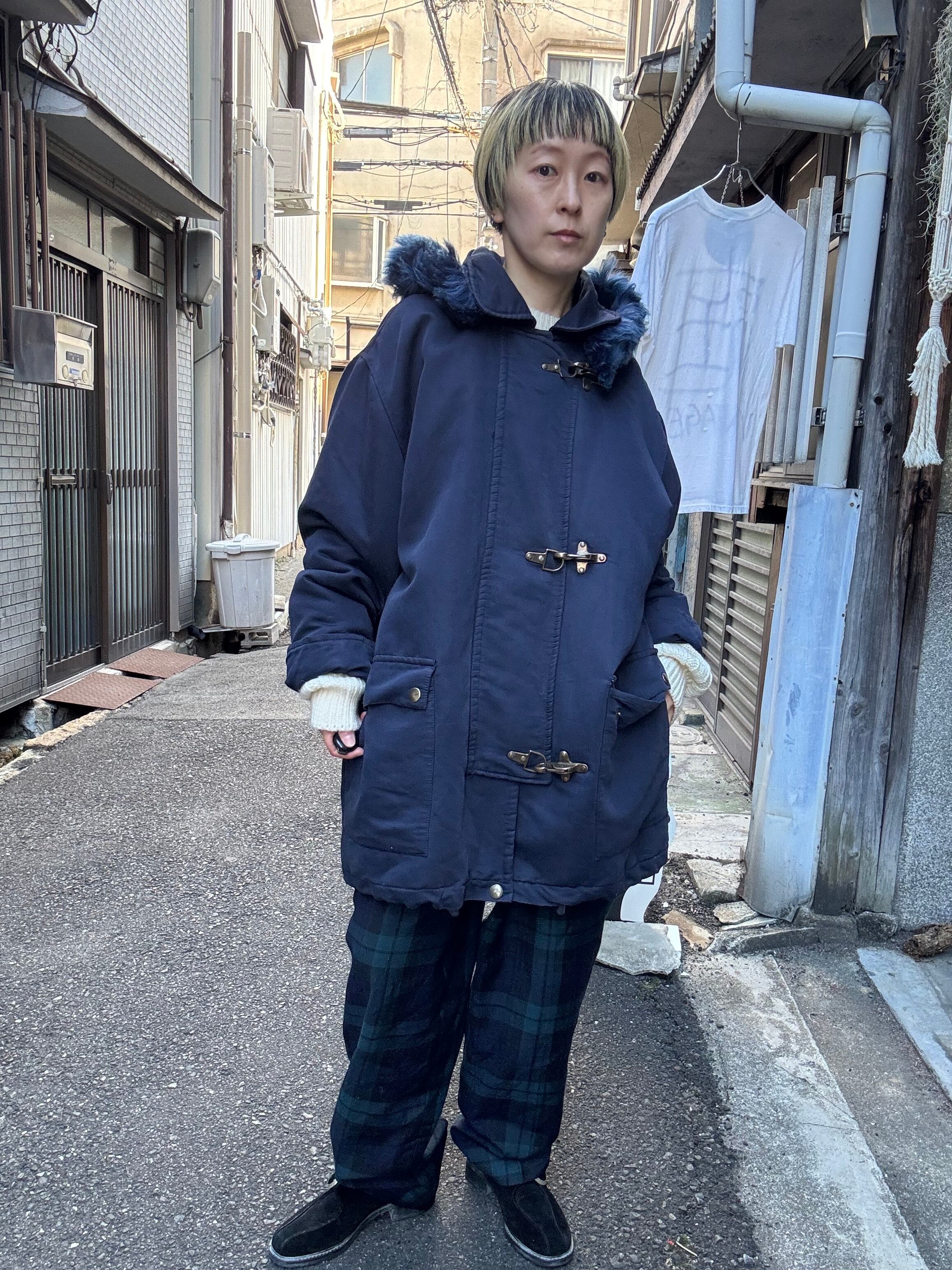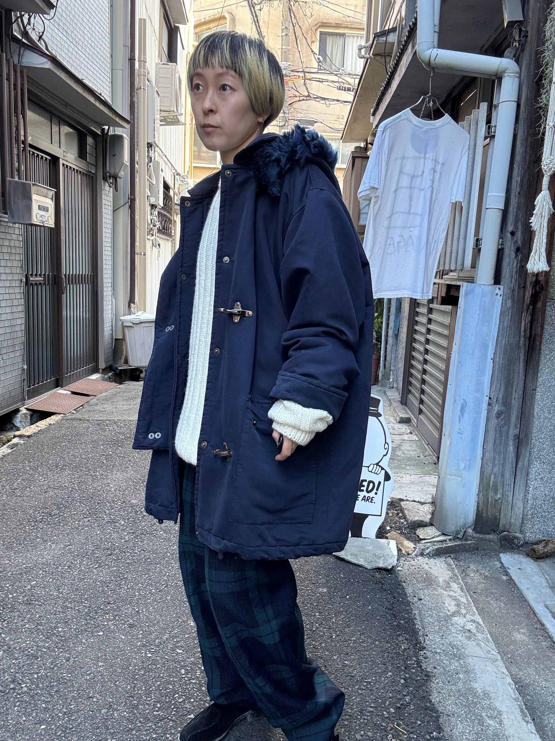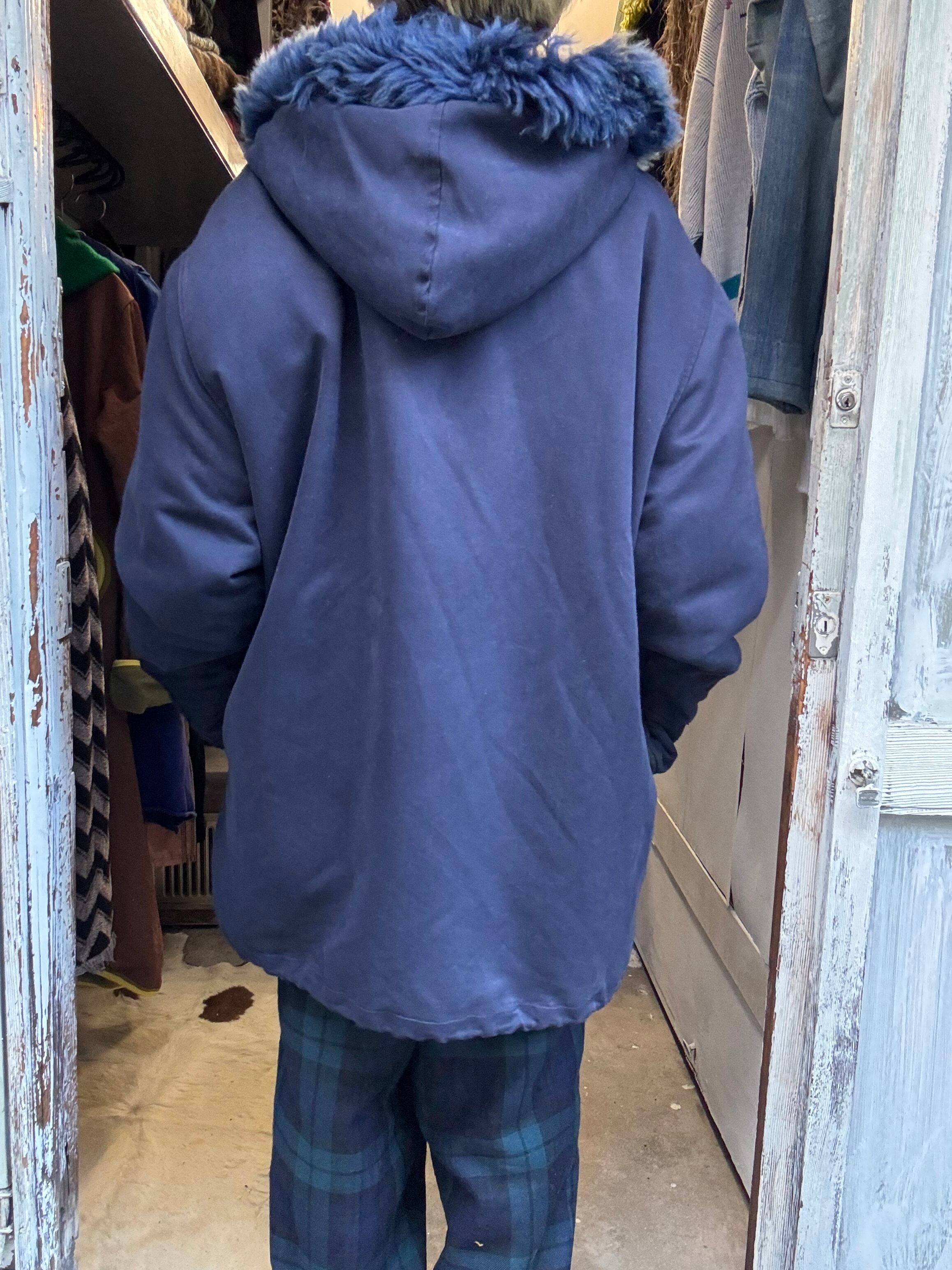 ネイビーカラーのファイヤーマンフード付きコートです。