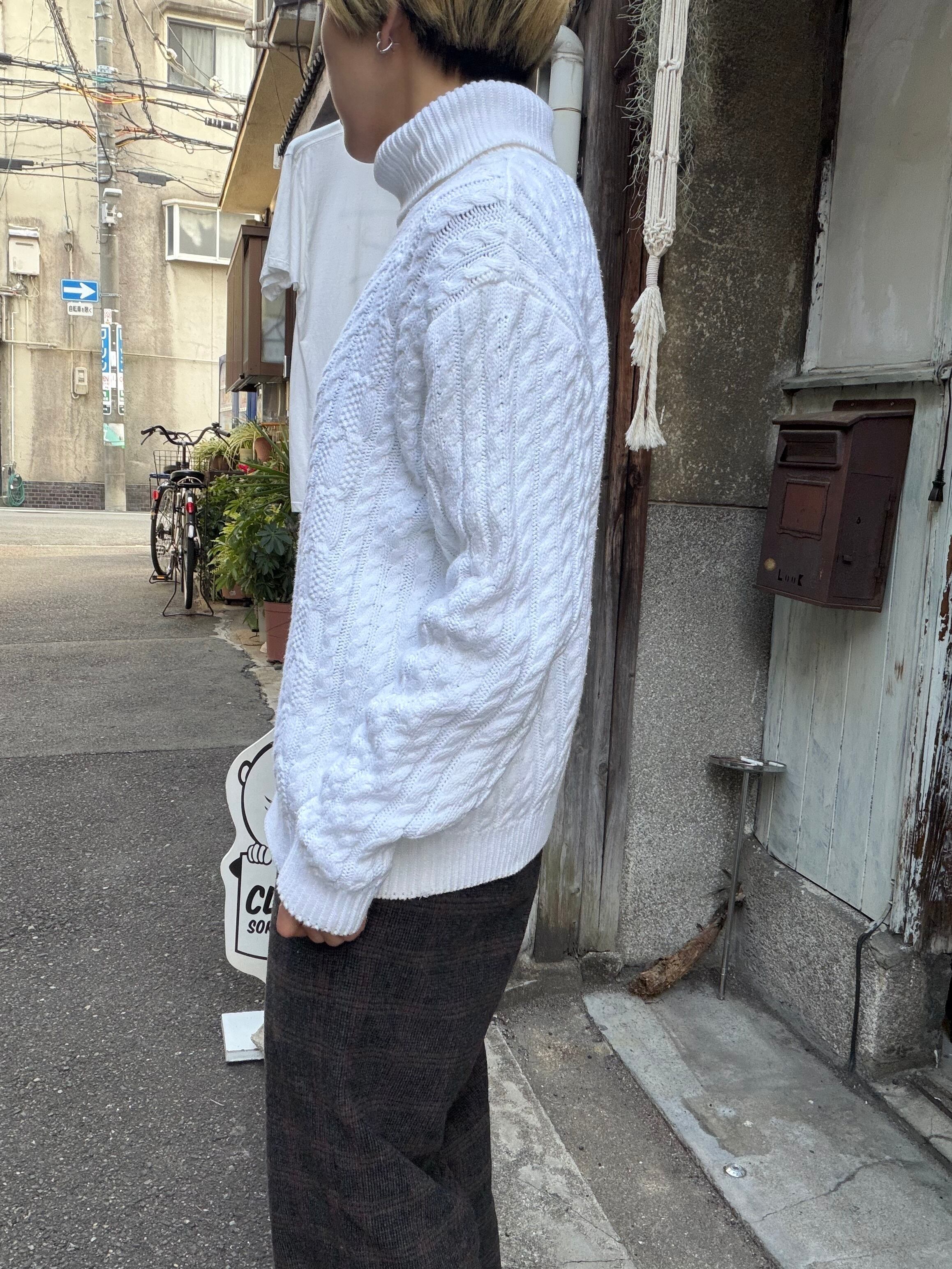 白のタートルネックセーター。