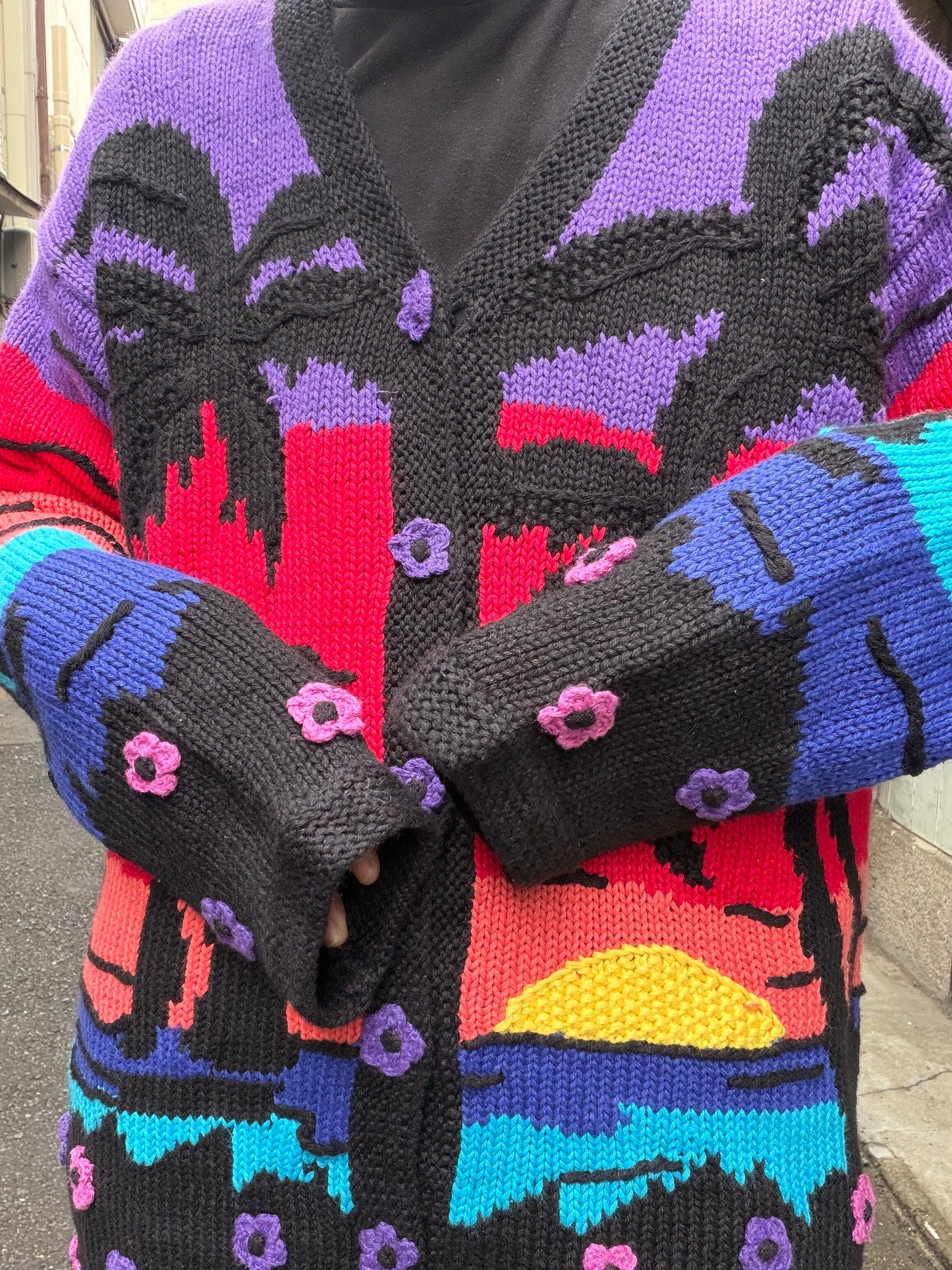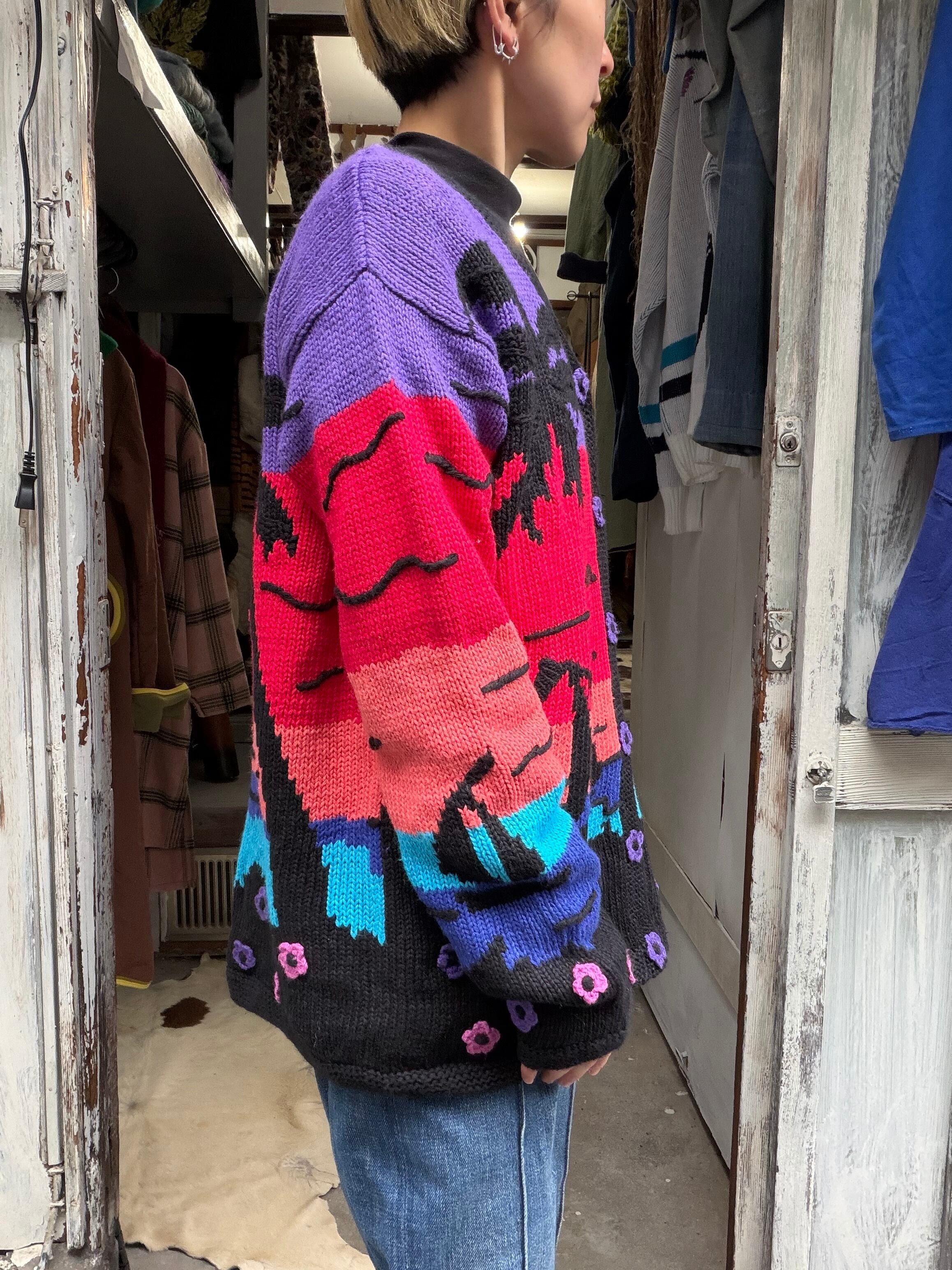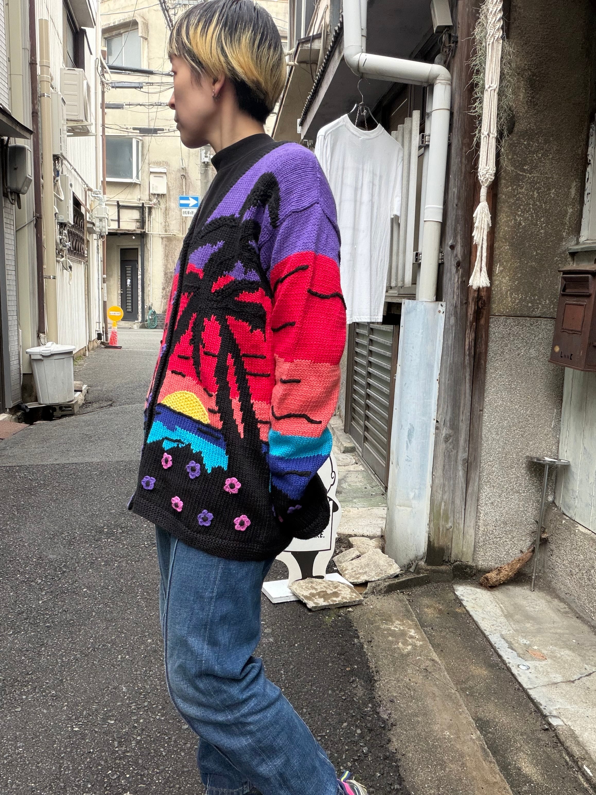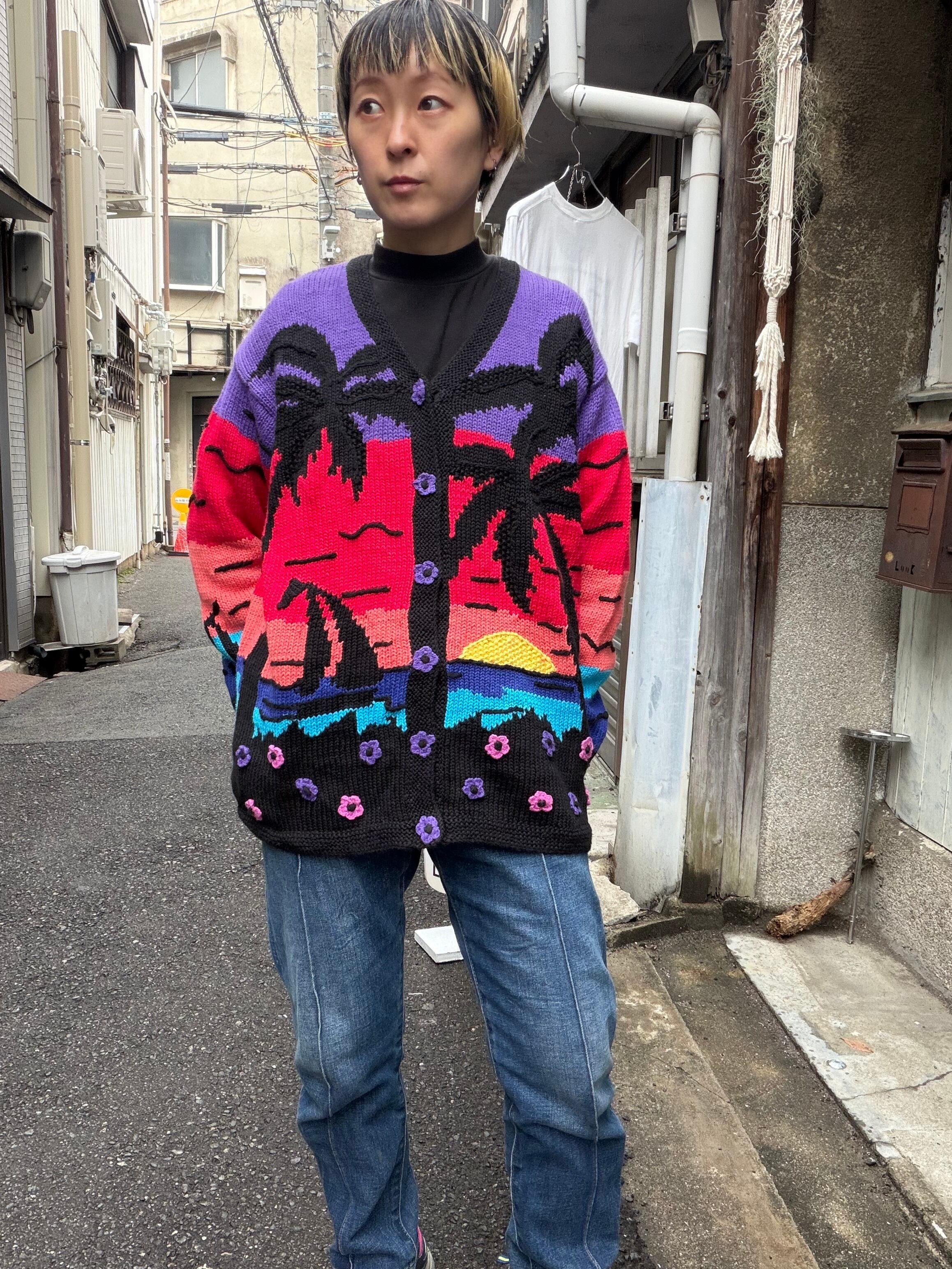 サンセットとヤシの木のカーディガン。