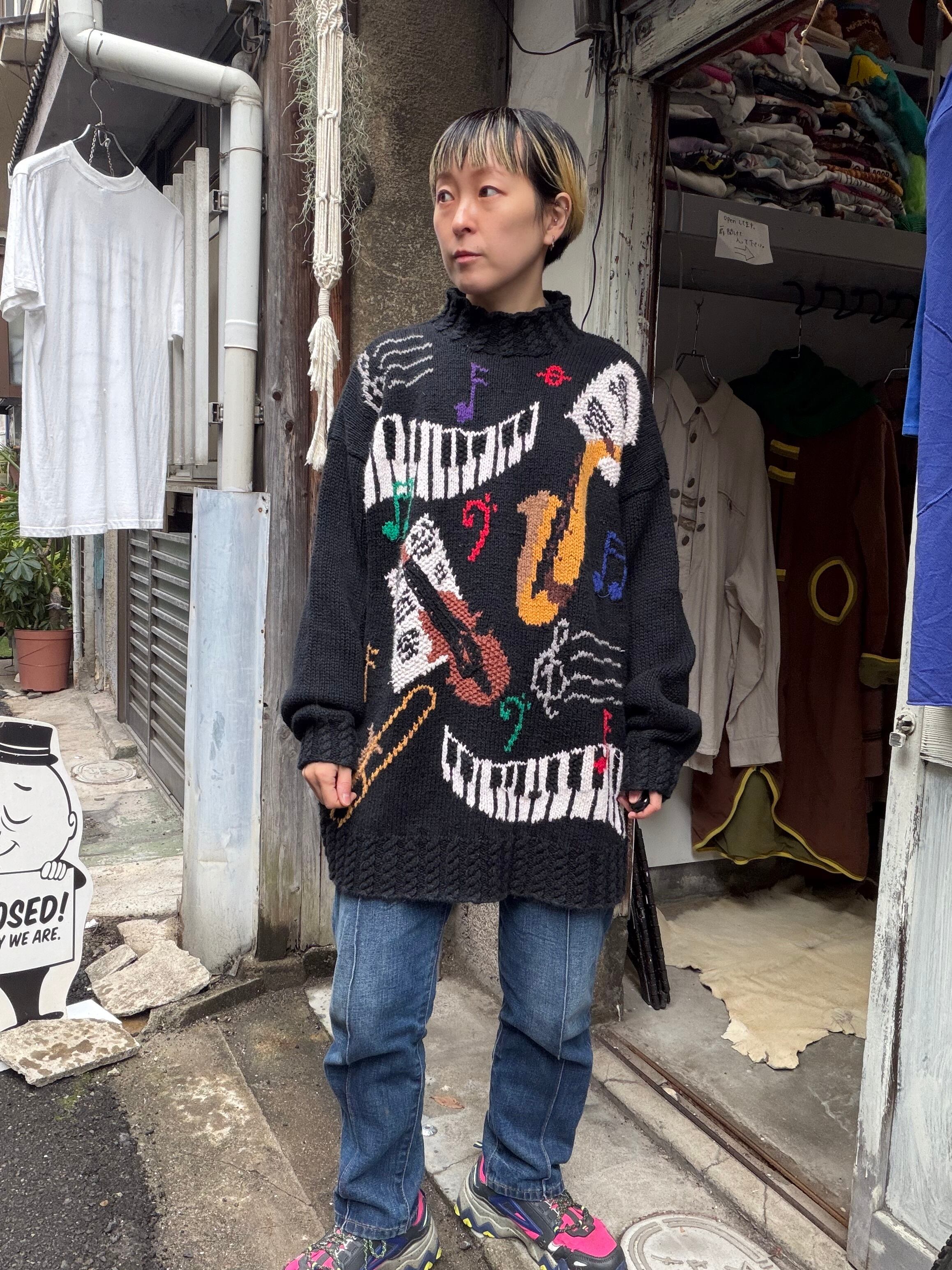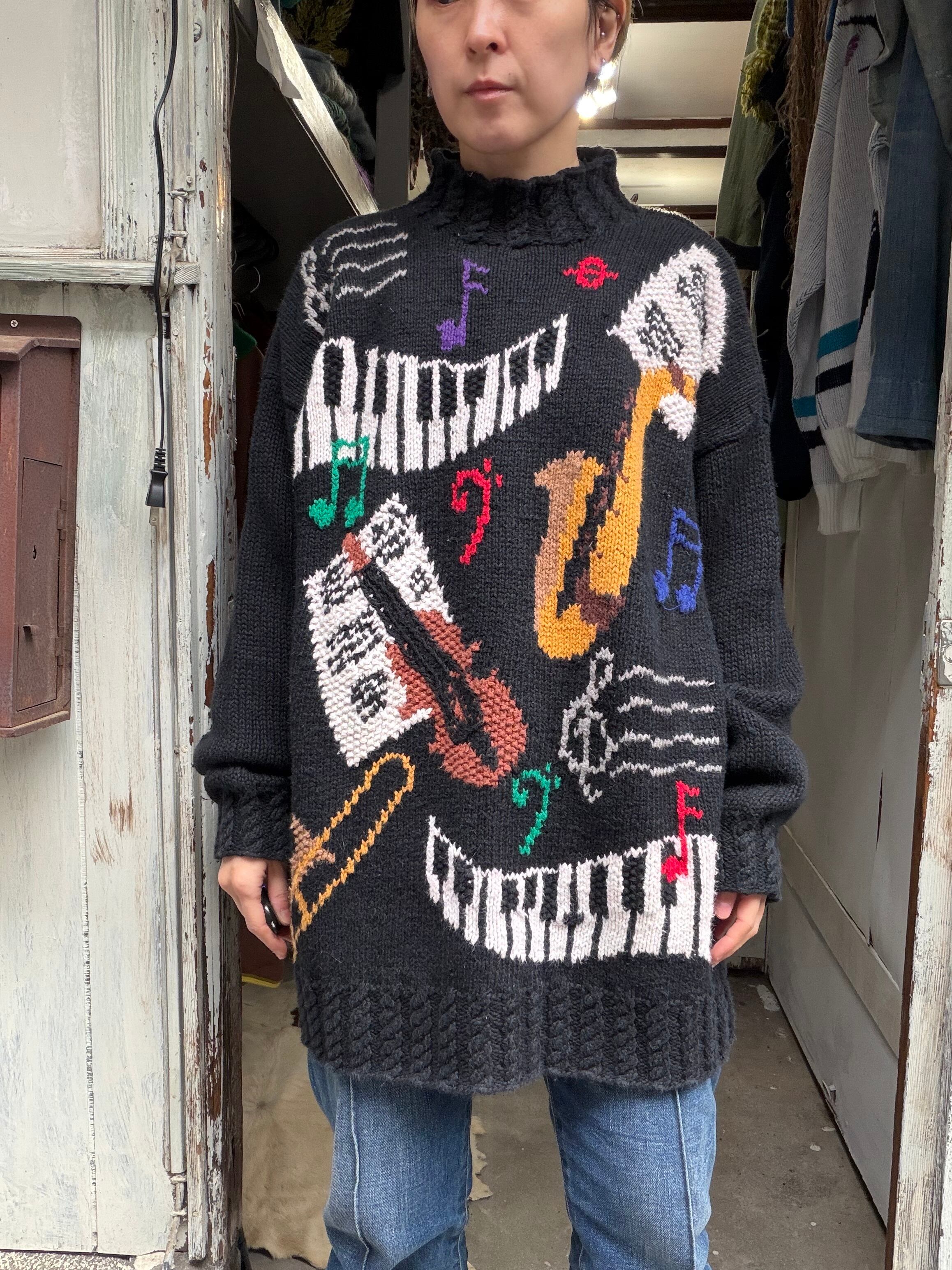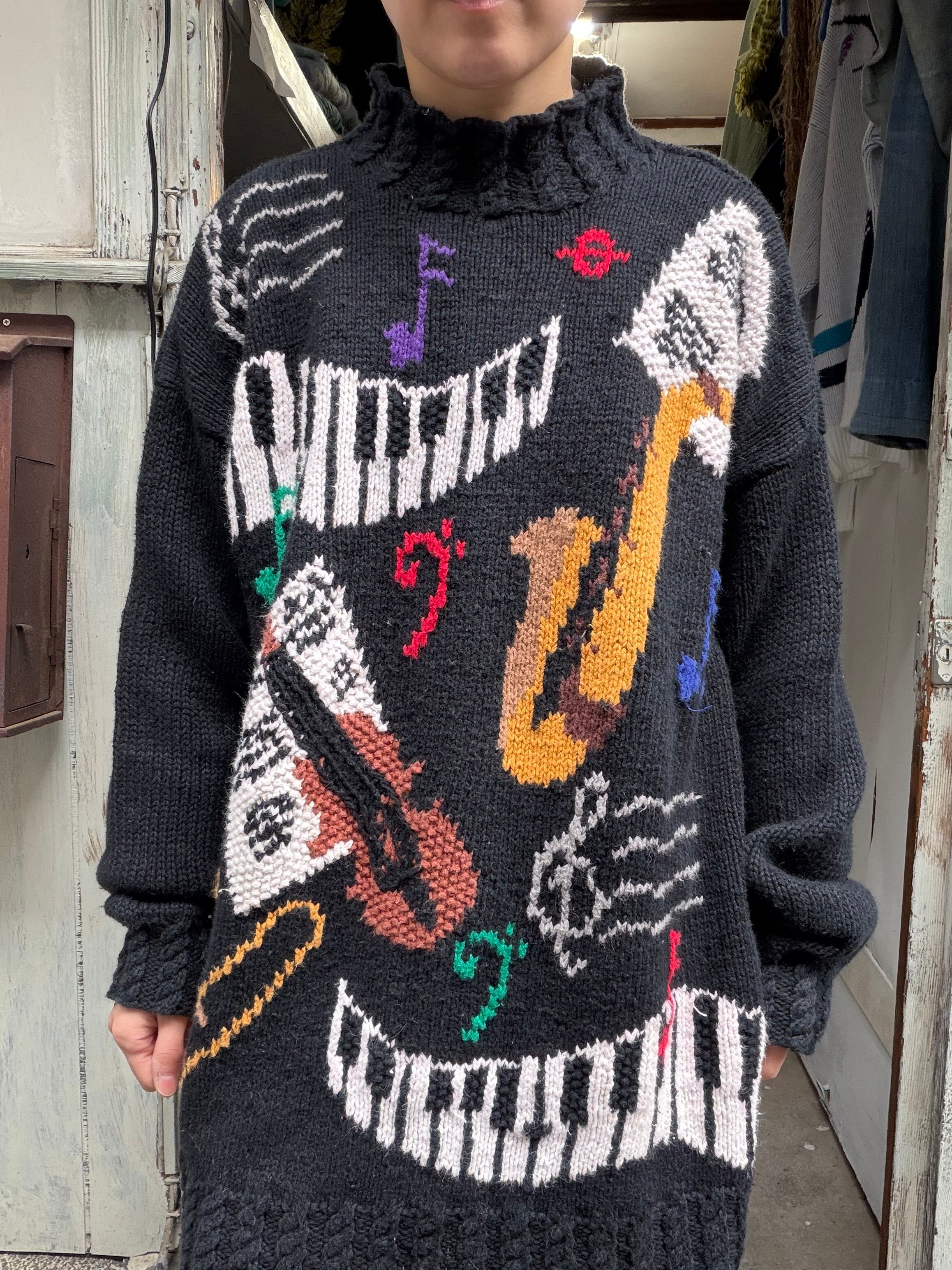 ミュージカルデザインのハンドニットセーター。