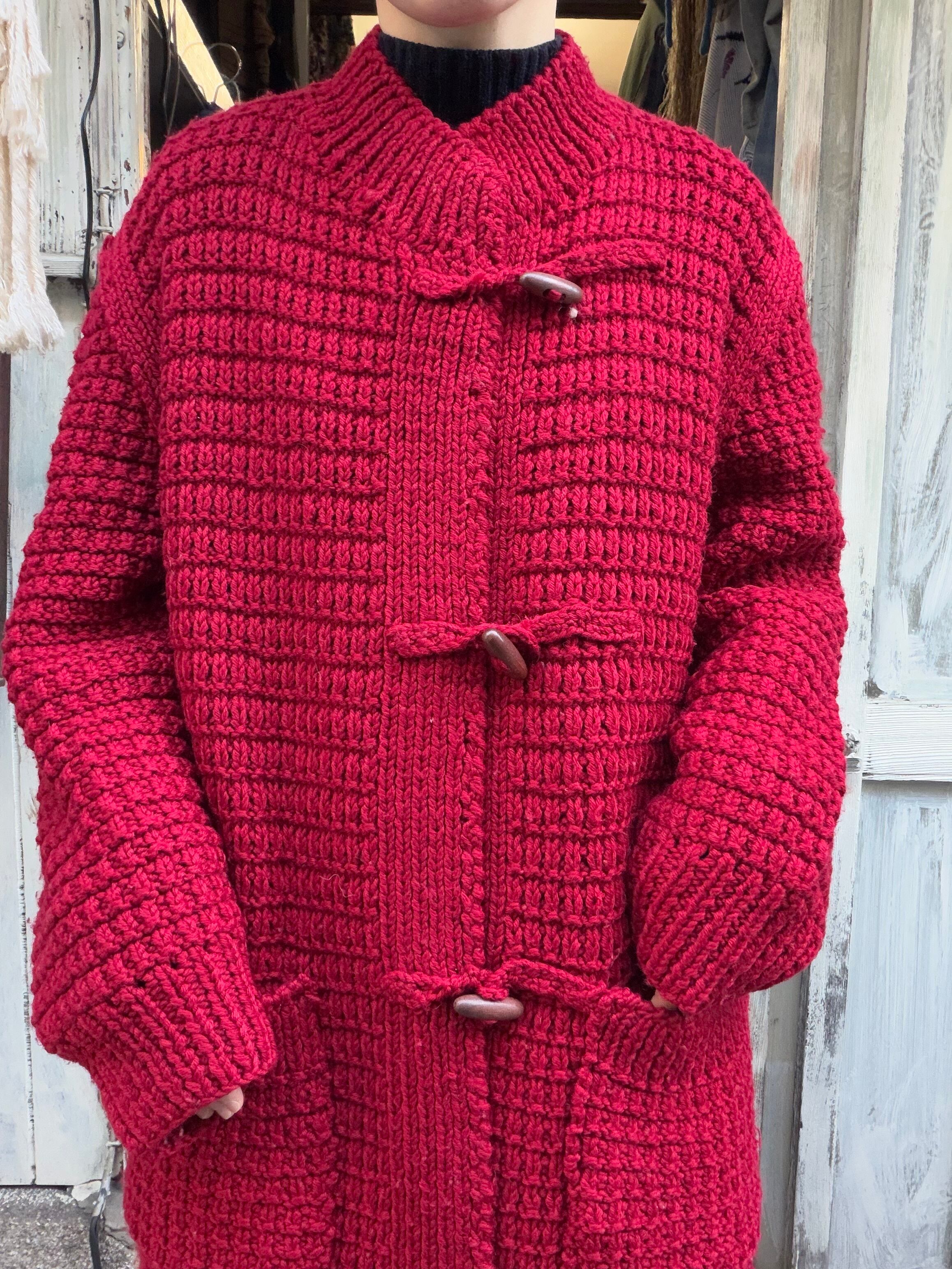 ダッフルボタン部分は何回か指でクルクルと紐をねじってからボタン留めてください。
