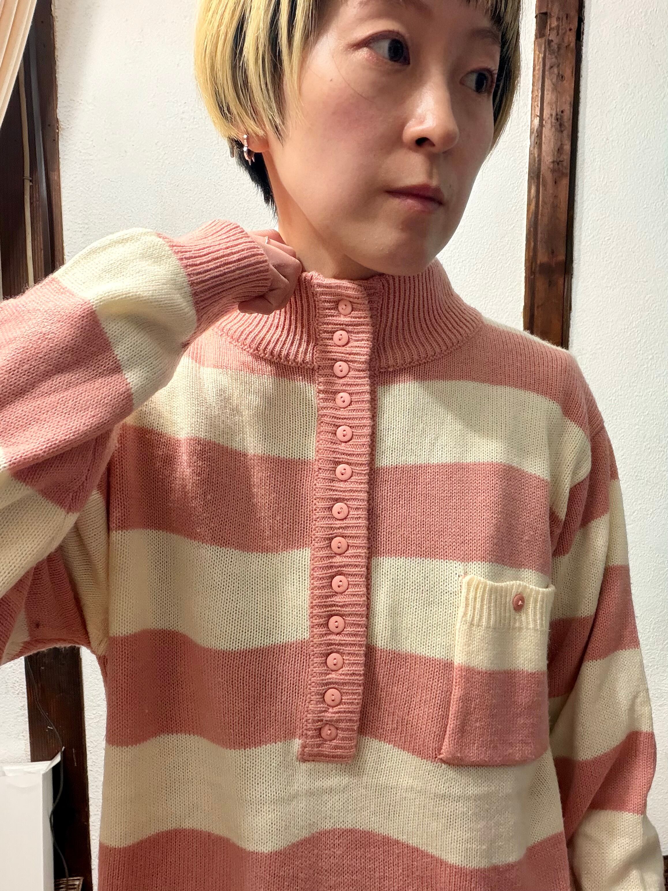 baby pink×ivory boarder sweater
