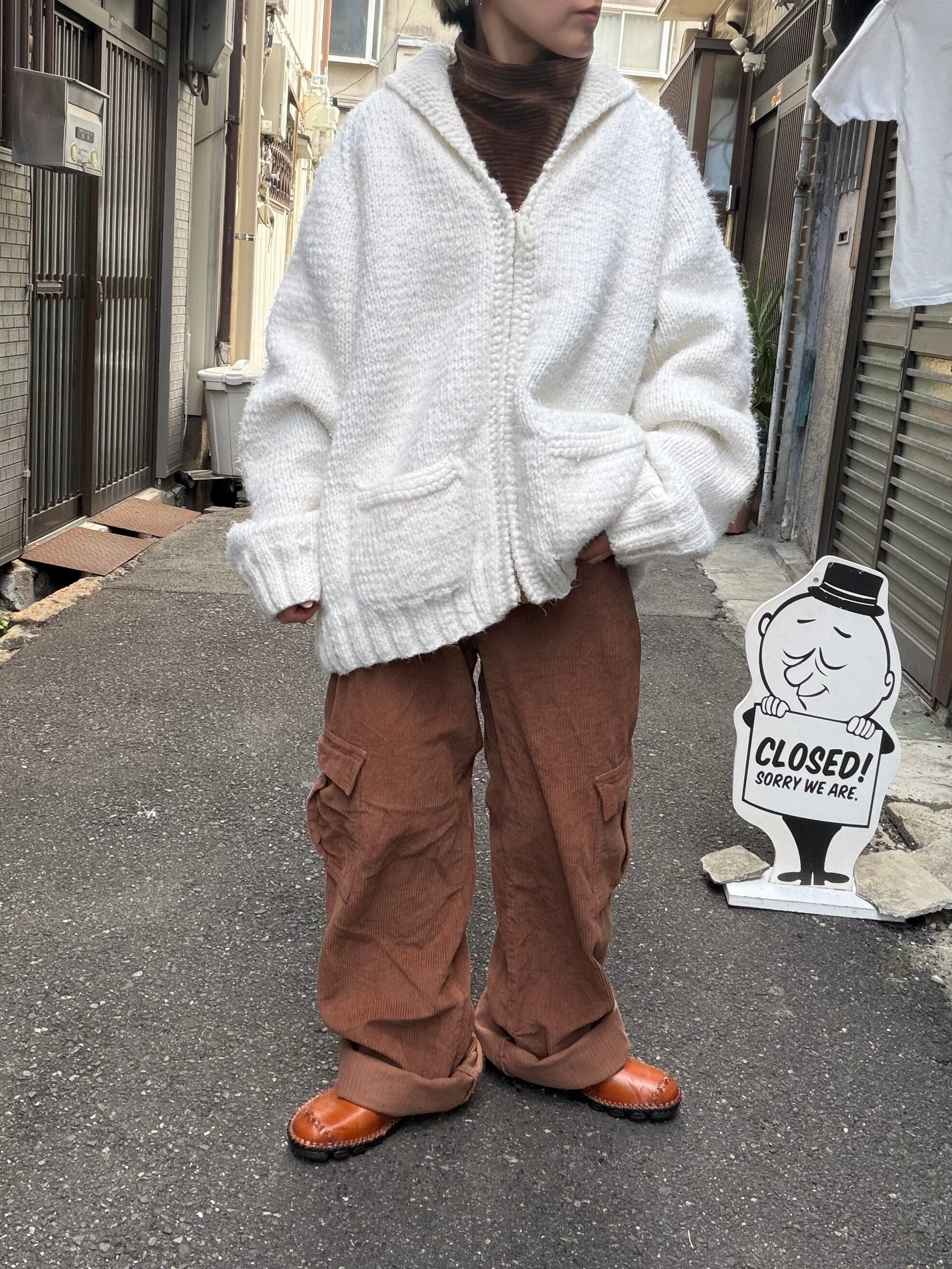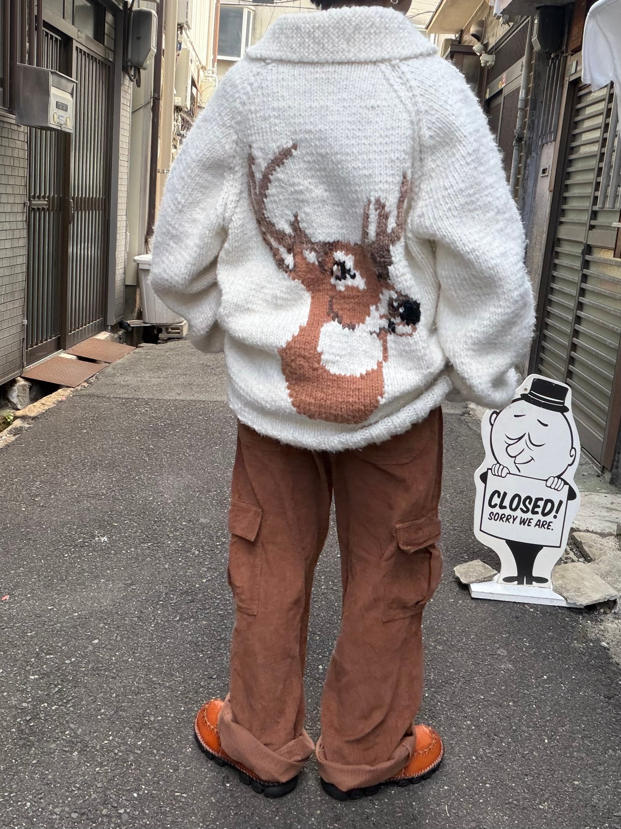 後ろにトナカイがドンと特徴的なラグラン型のニットカーディガンです。