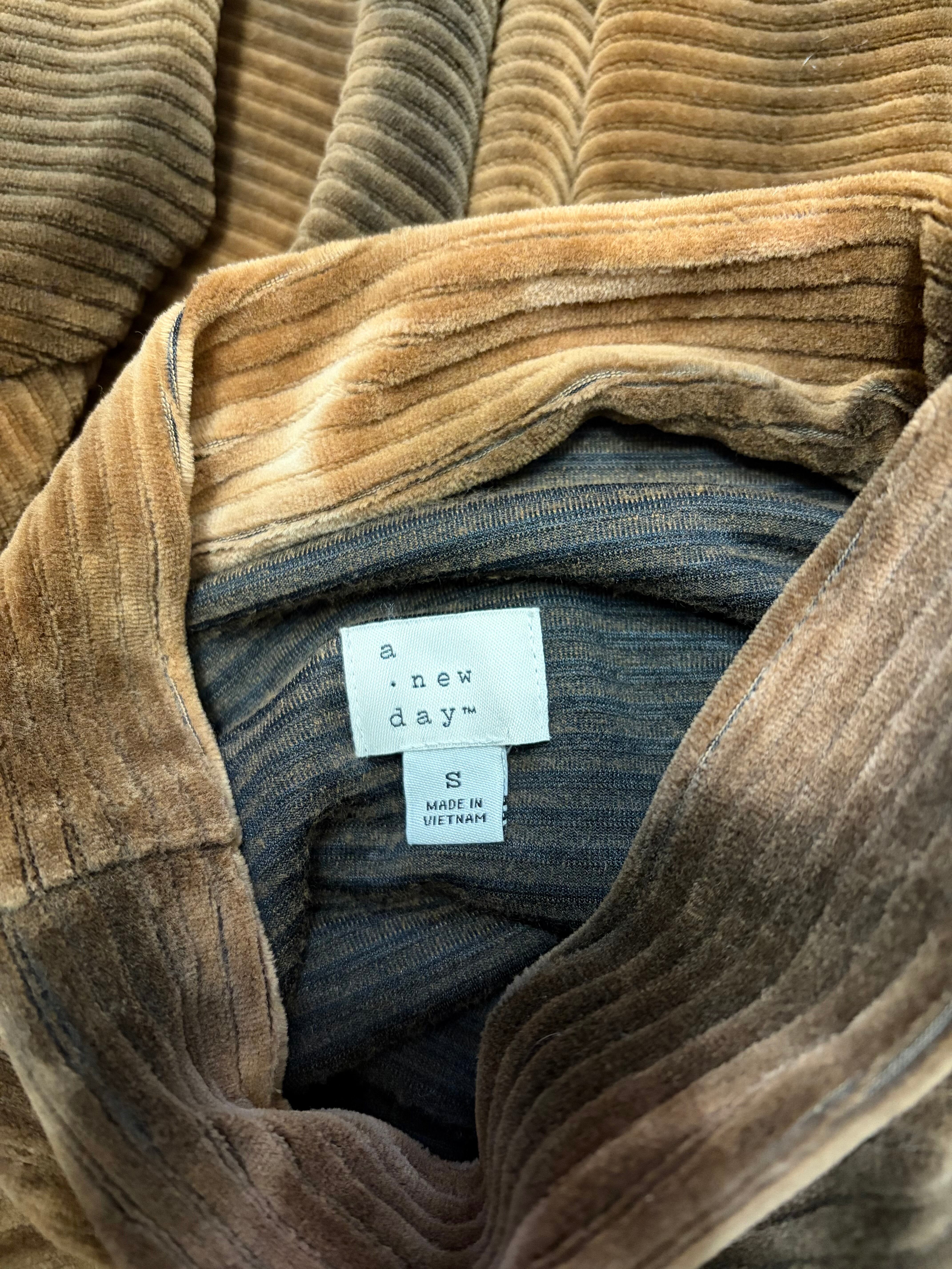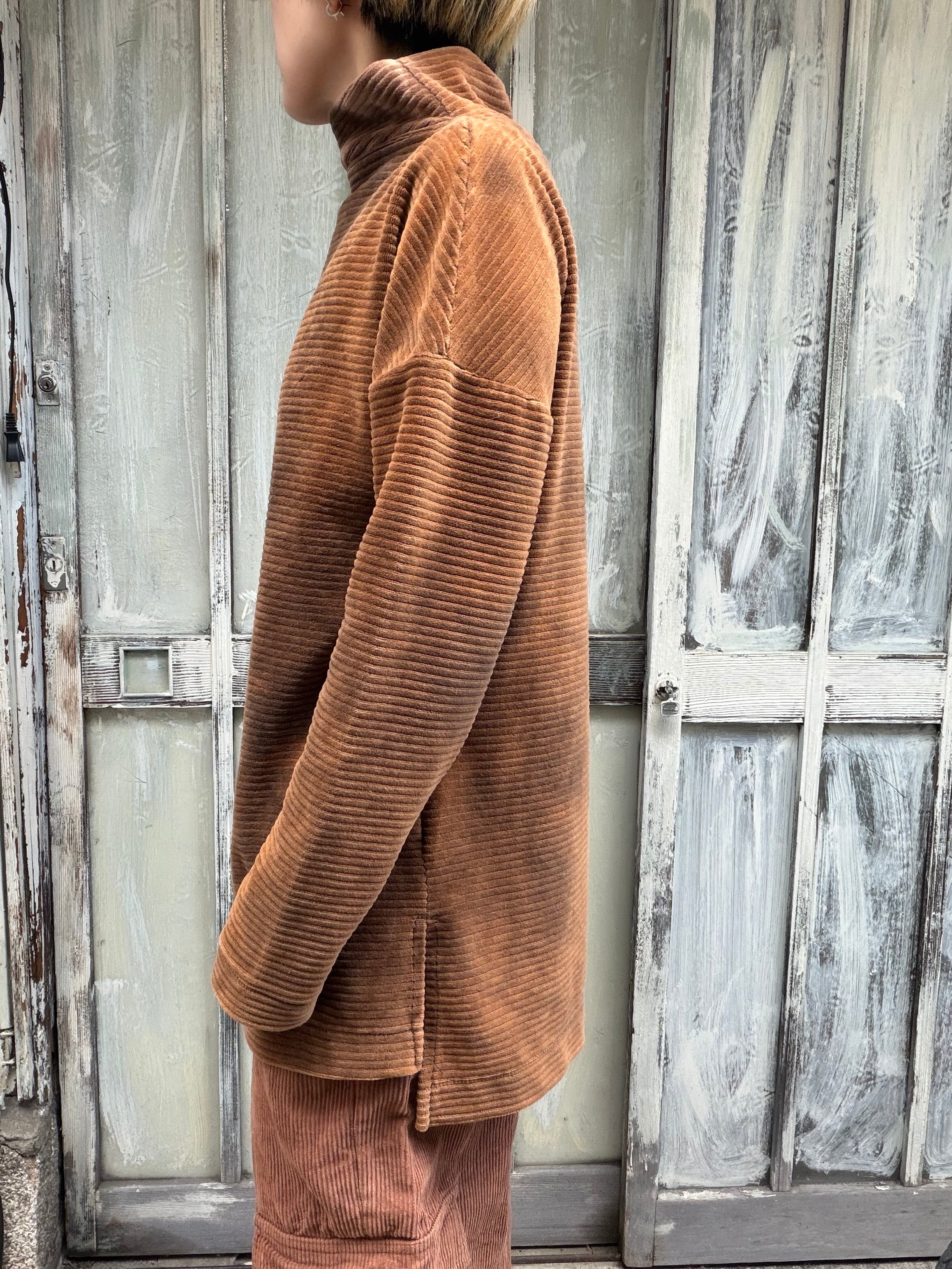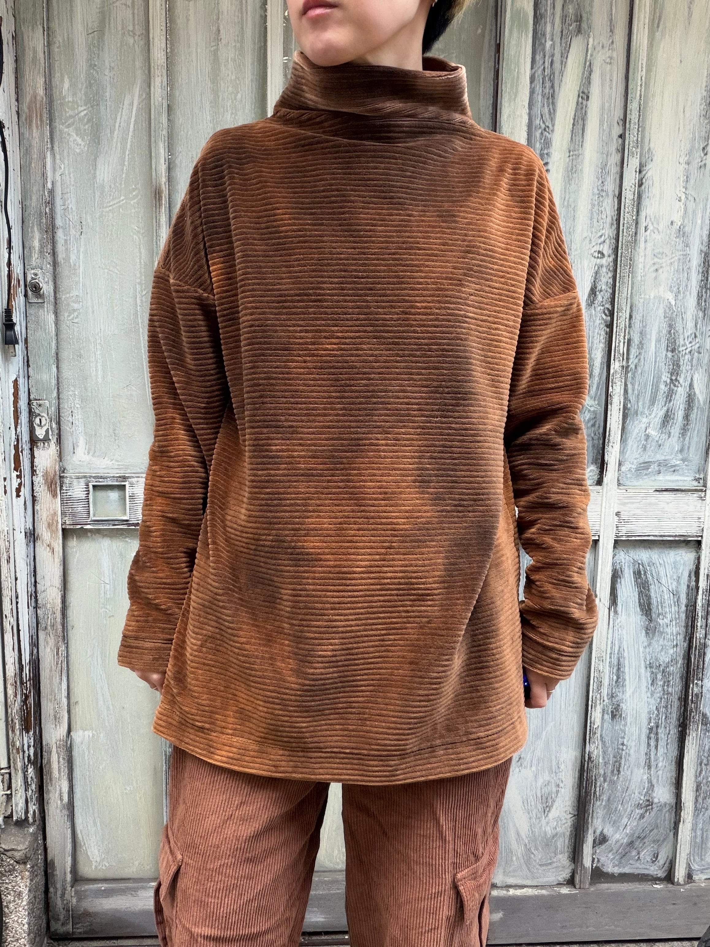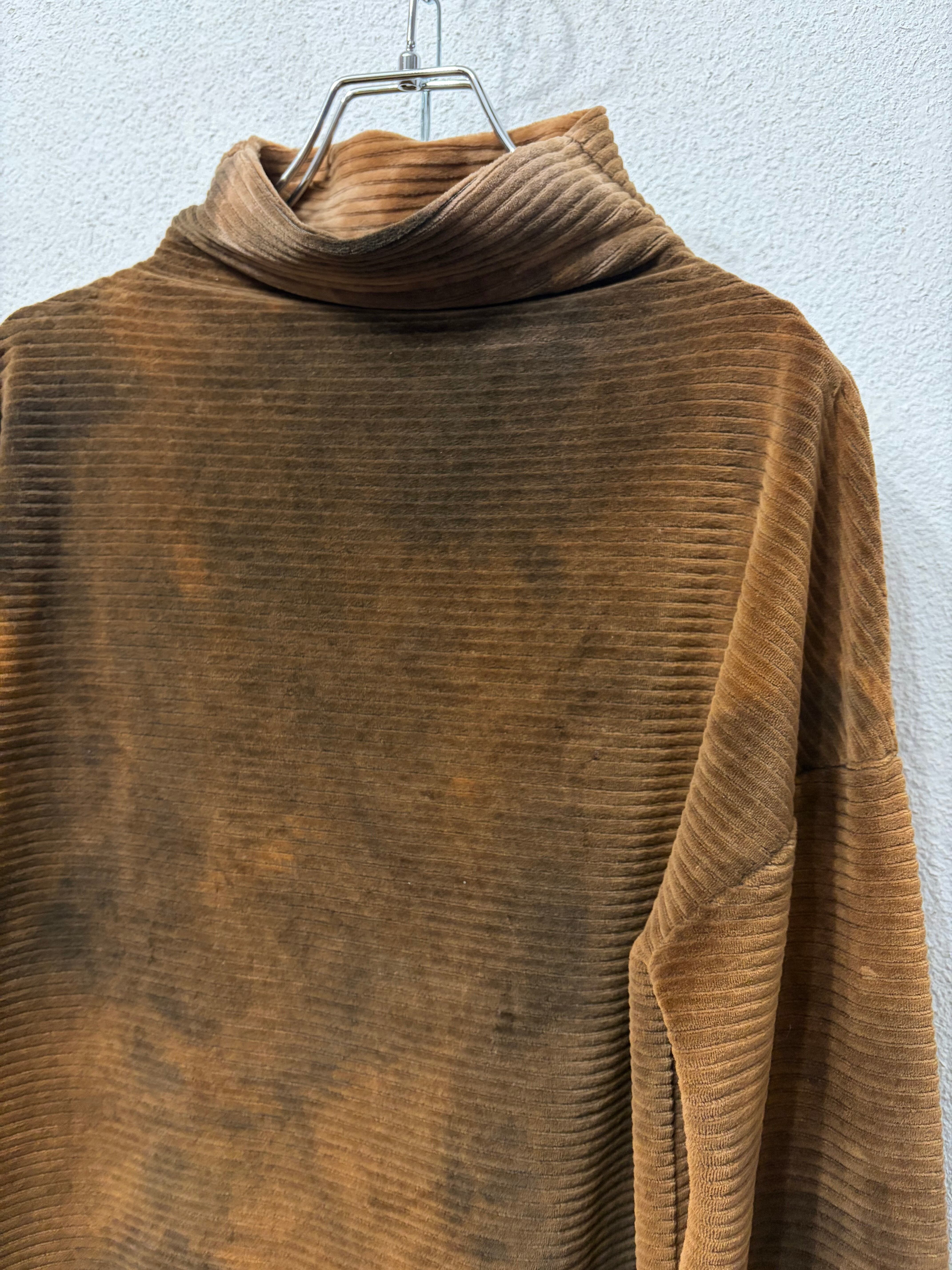 まだらカラーが特徴的なブラウンカラーのベロア素材のタートルカットソー。