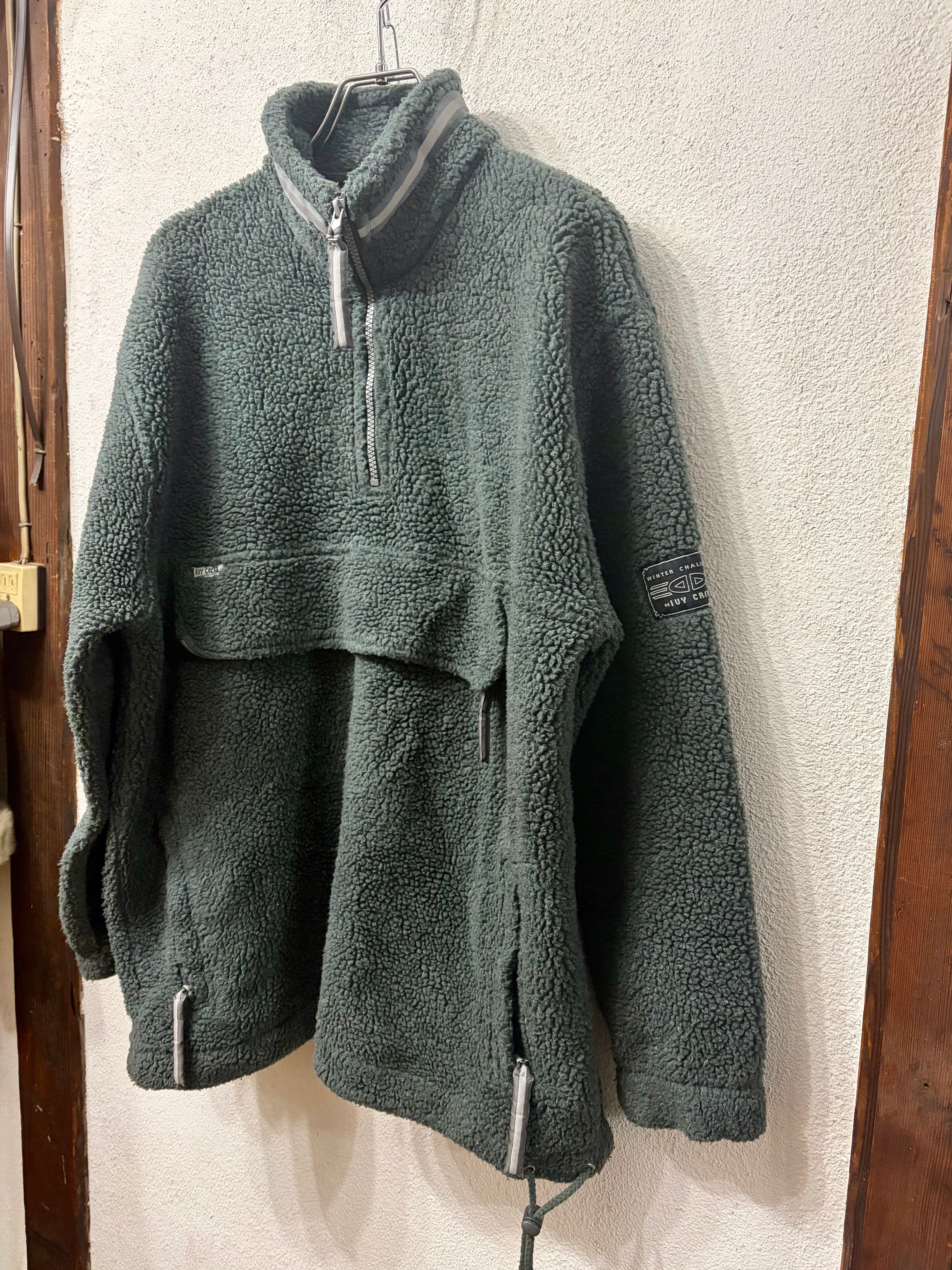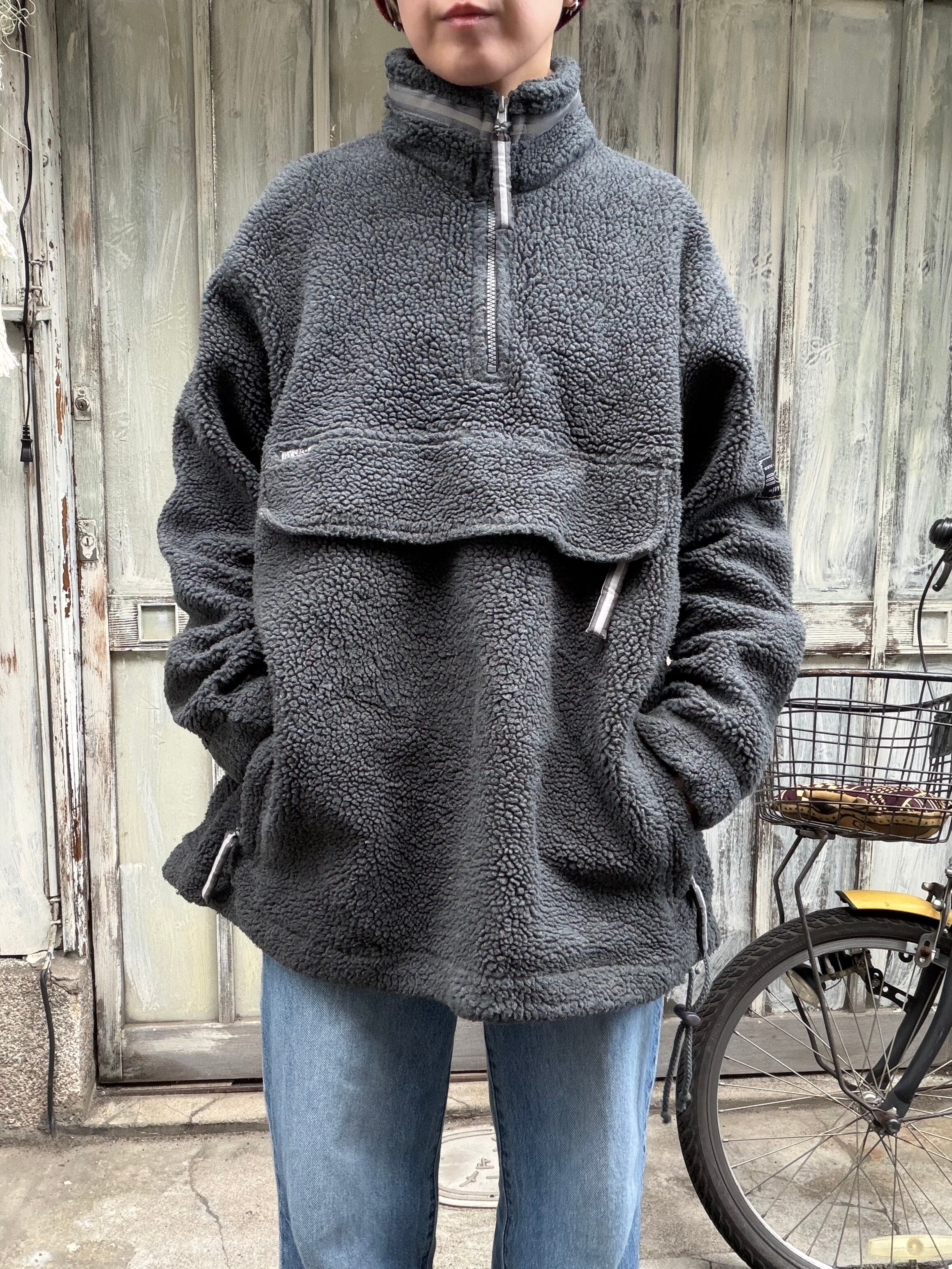 グレーグリーンのような珍しい色味のボアのプルオーバートップスです。