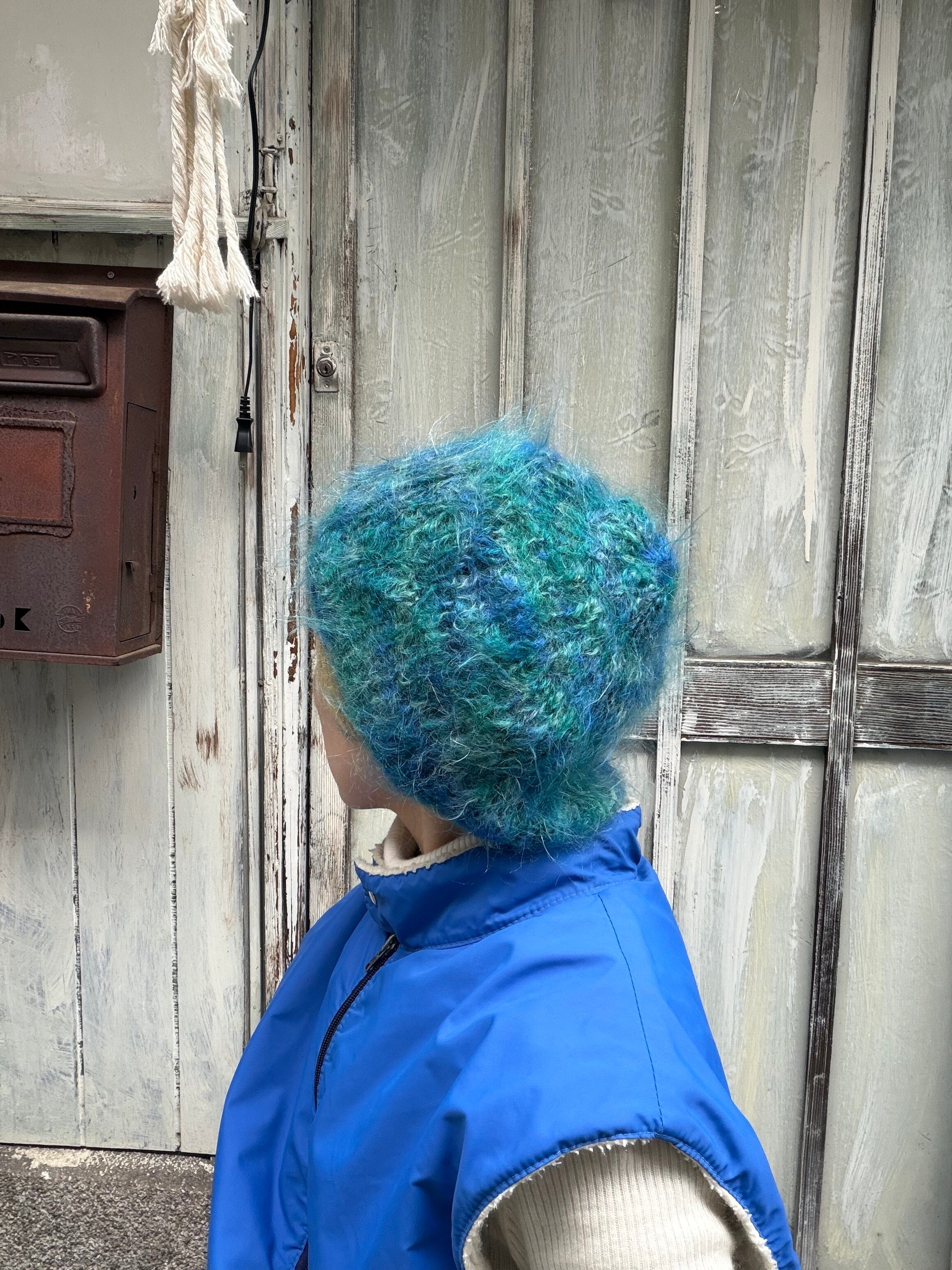 mohair blue gradation knit cap