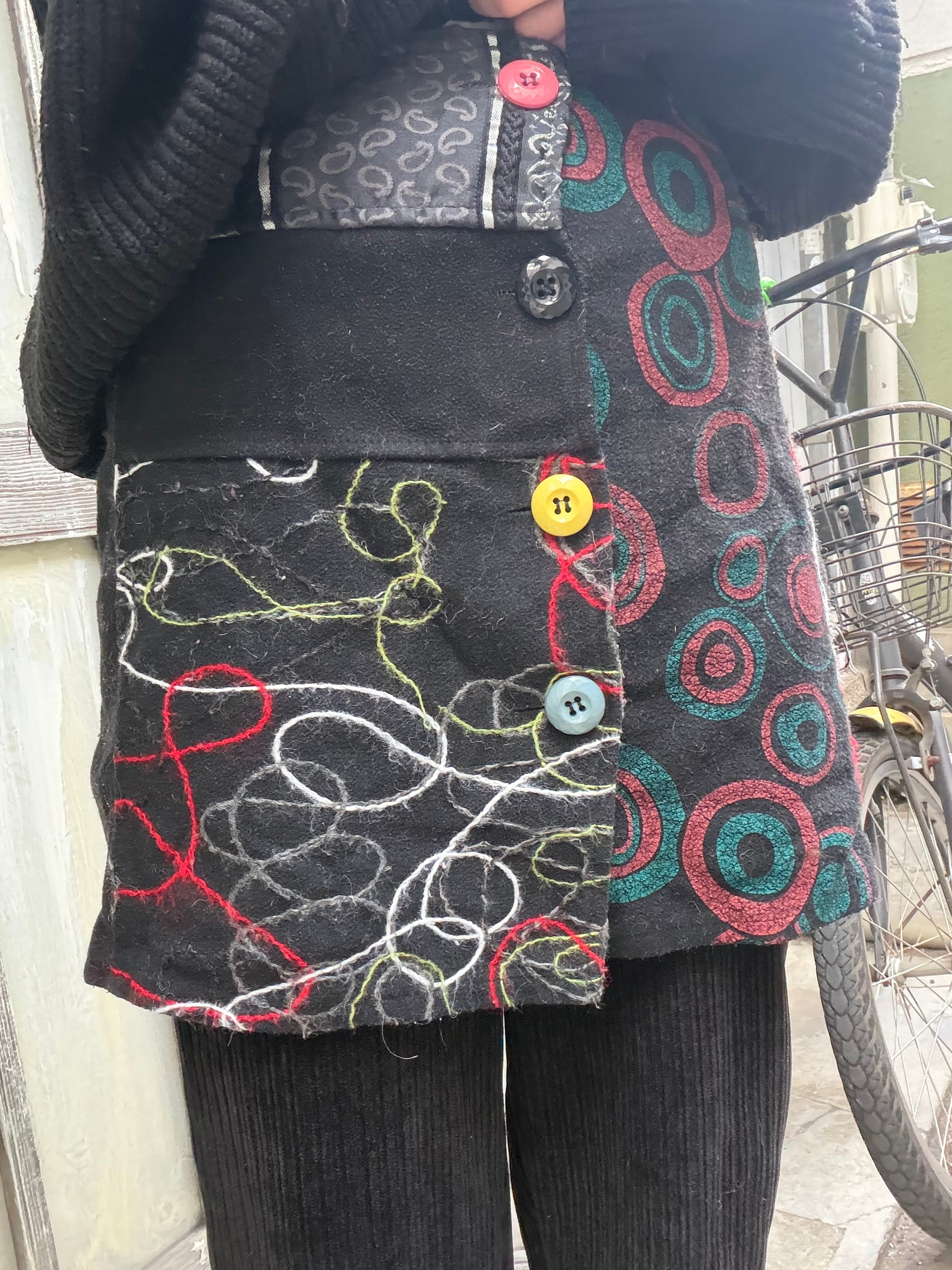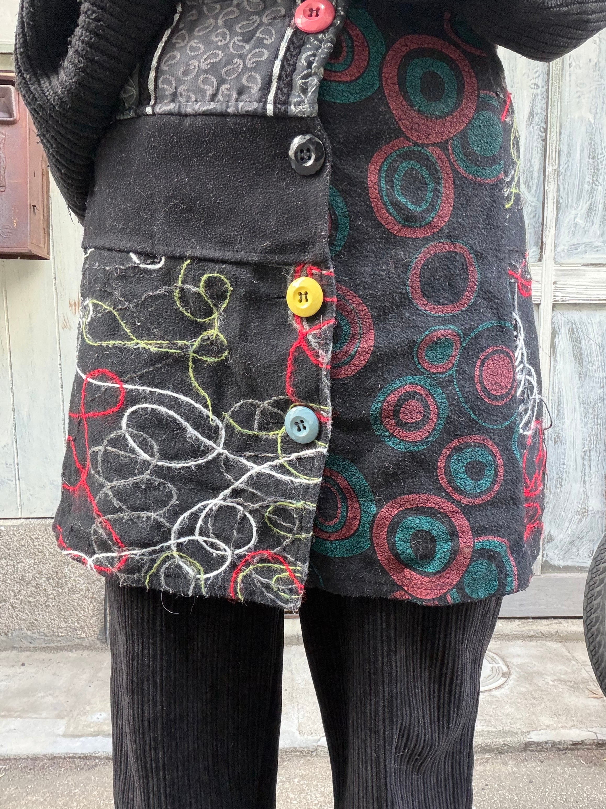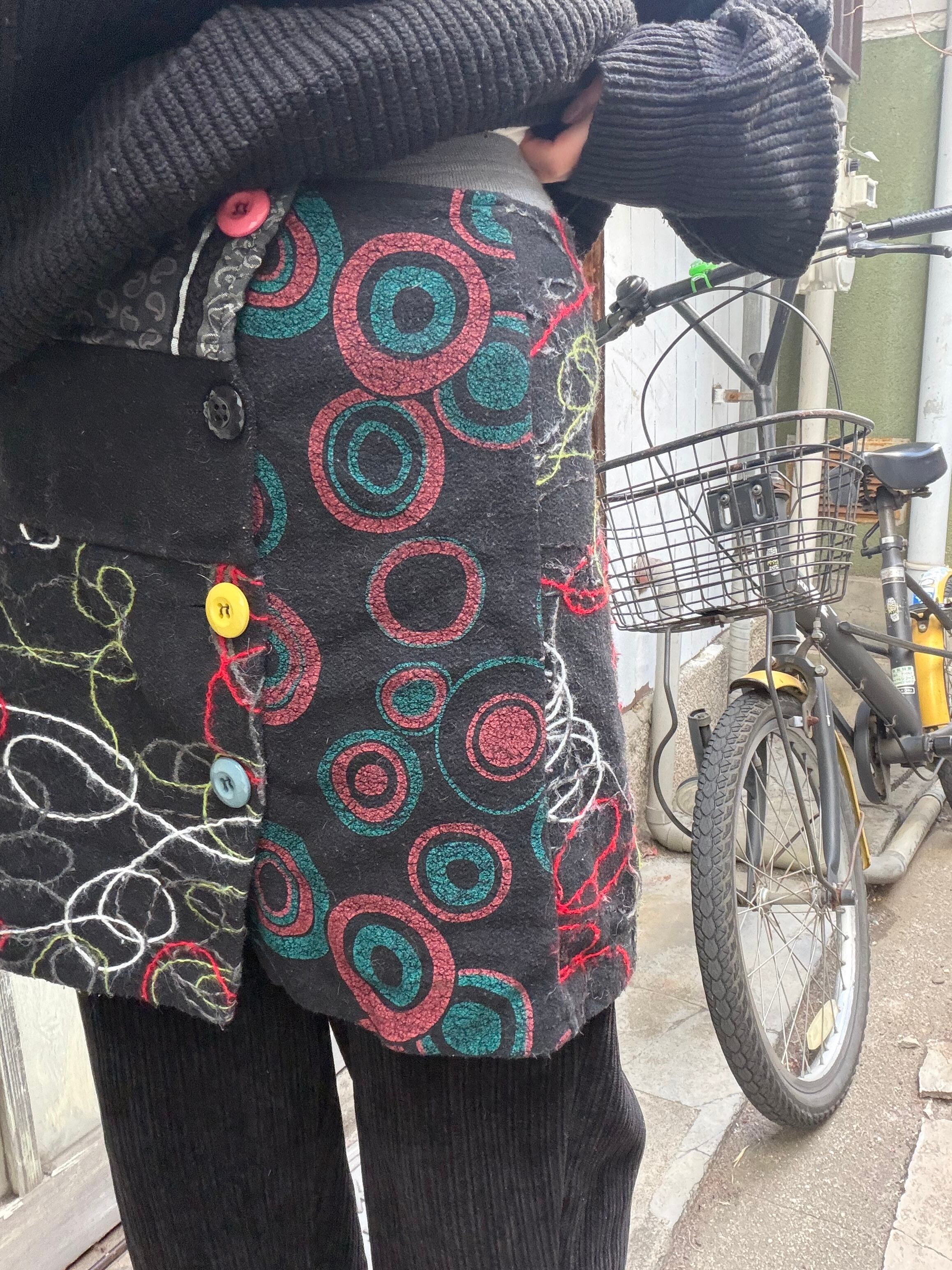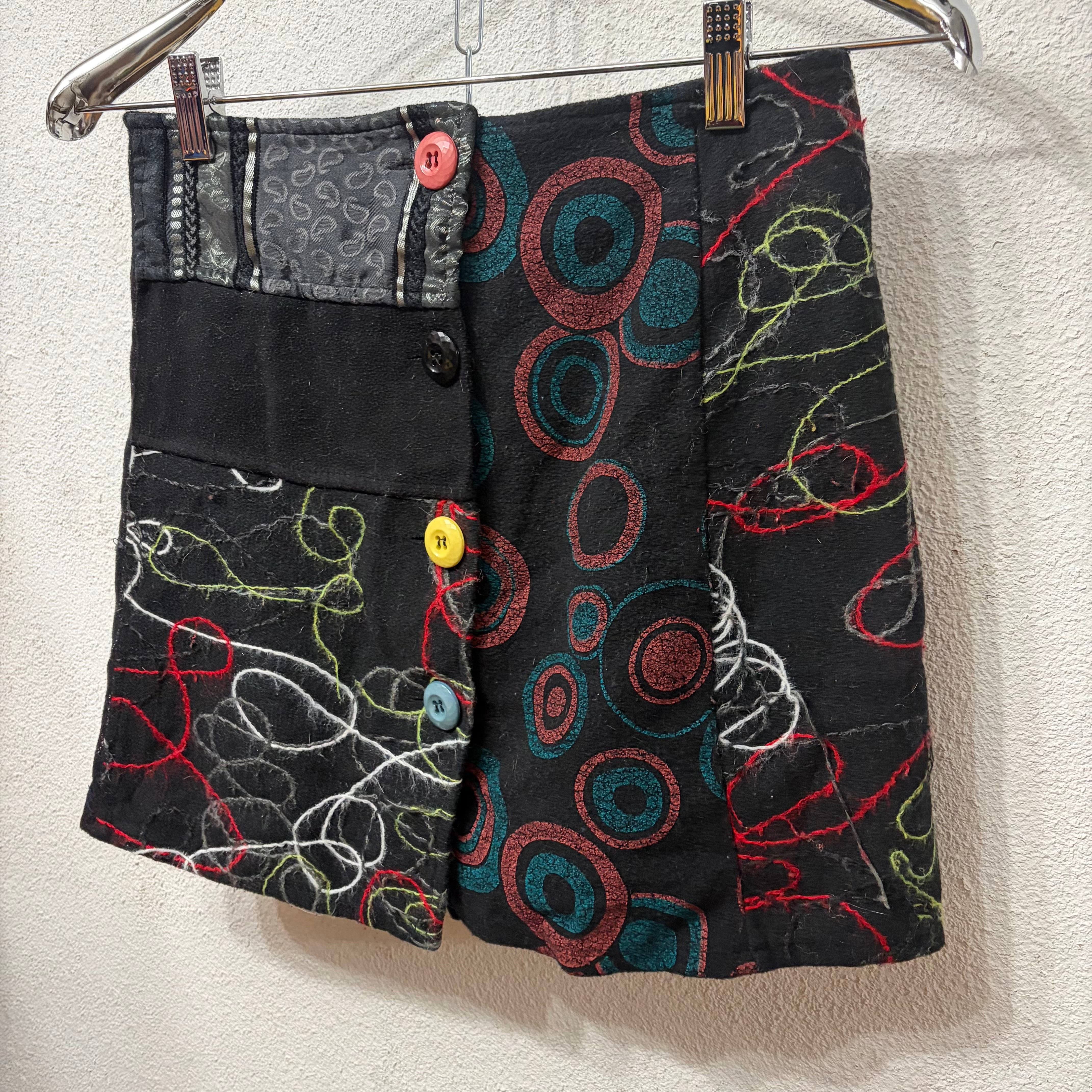 フェルト生地にカラフルボタンが特徴的なミニスカート。