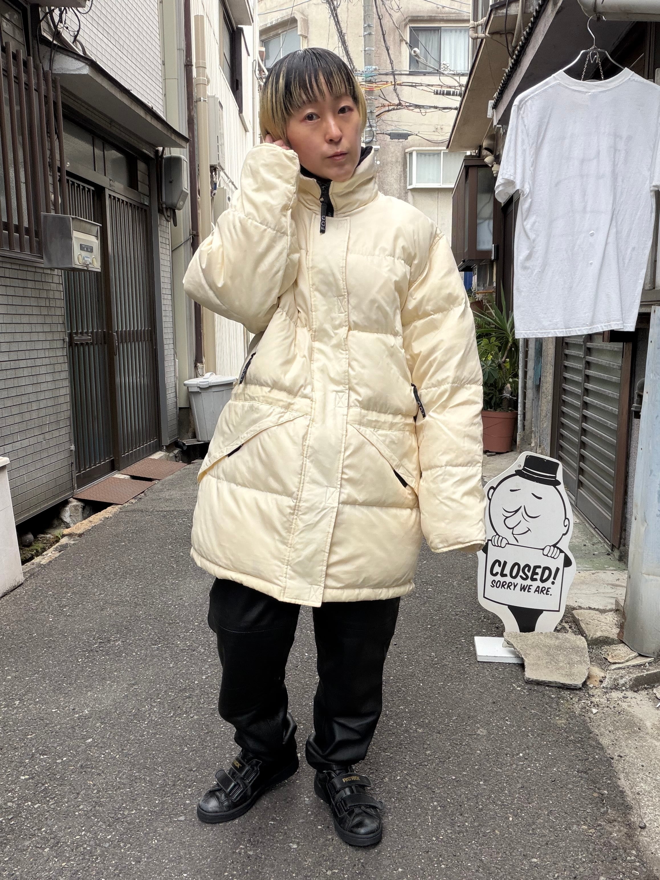 London Fogのオフホワイトのクリーミーカラーのダウンコート。