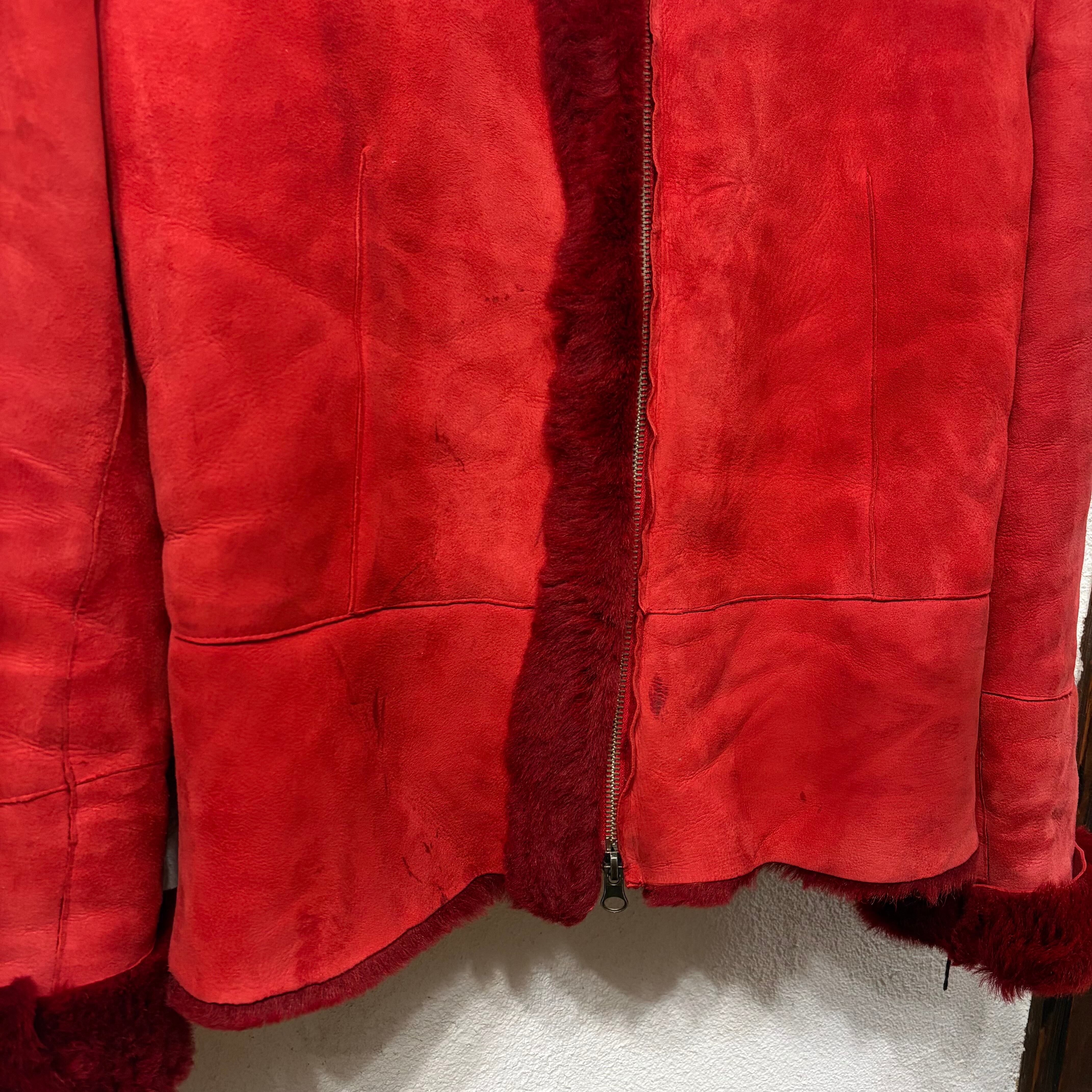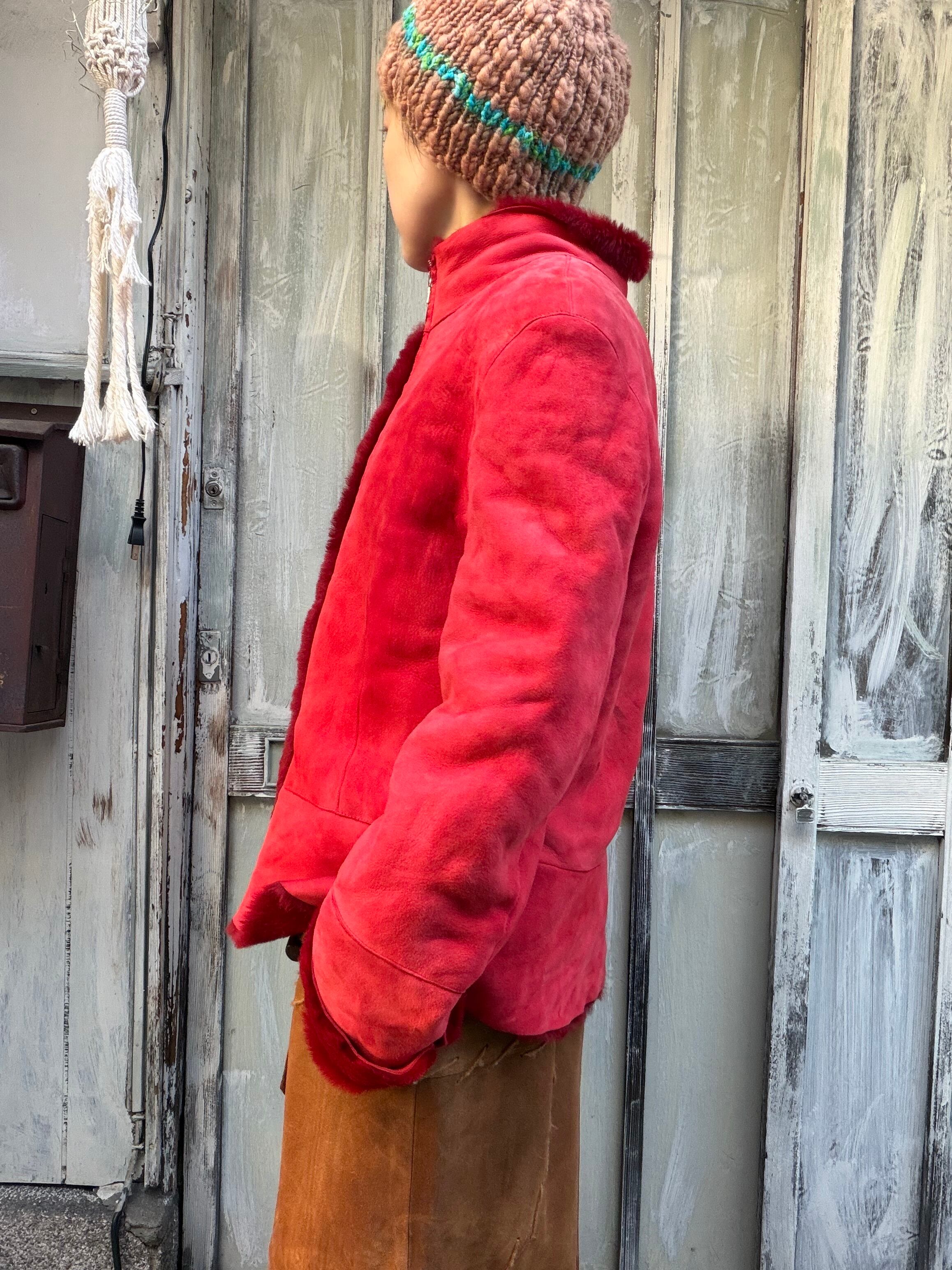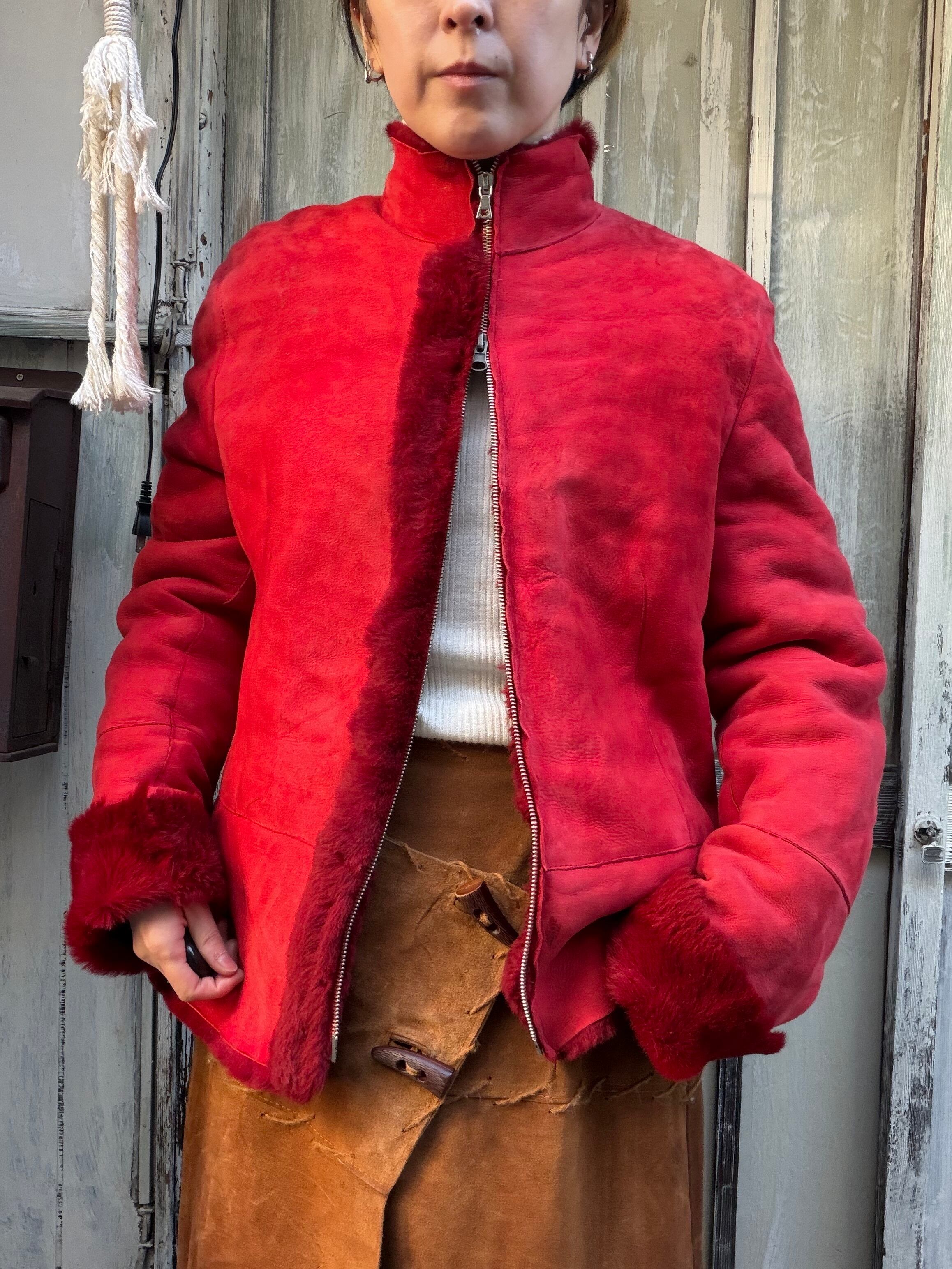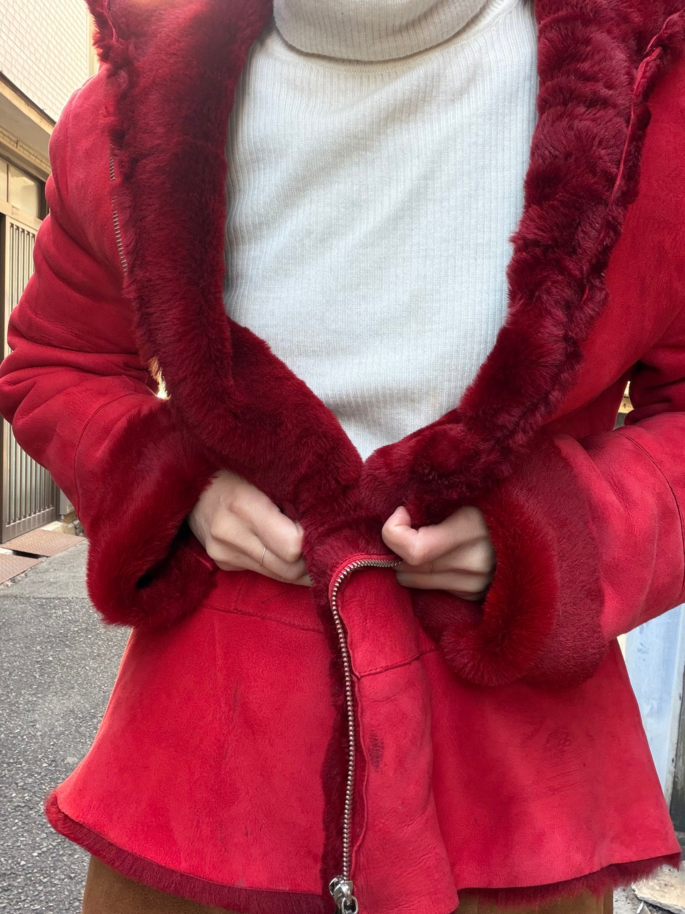 イタリア製、赤のムートンジャケット。