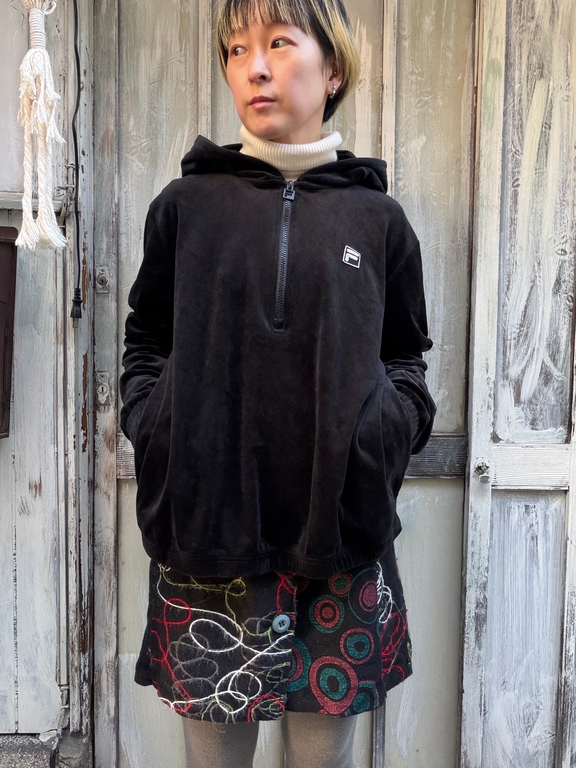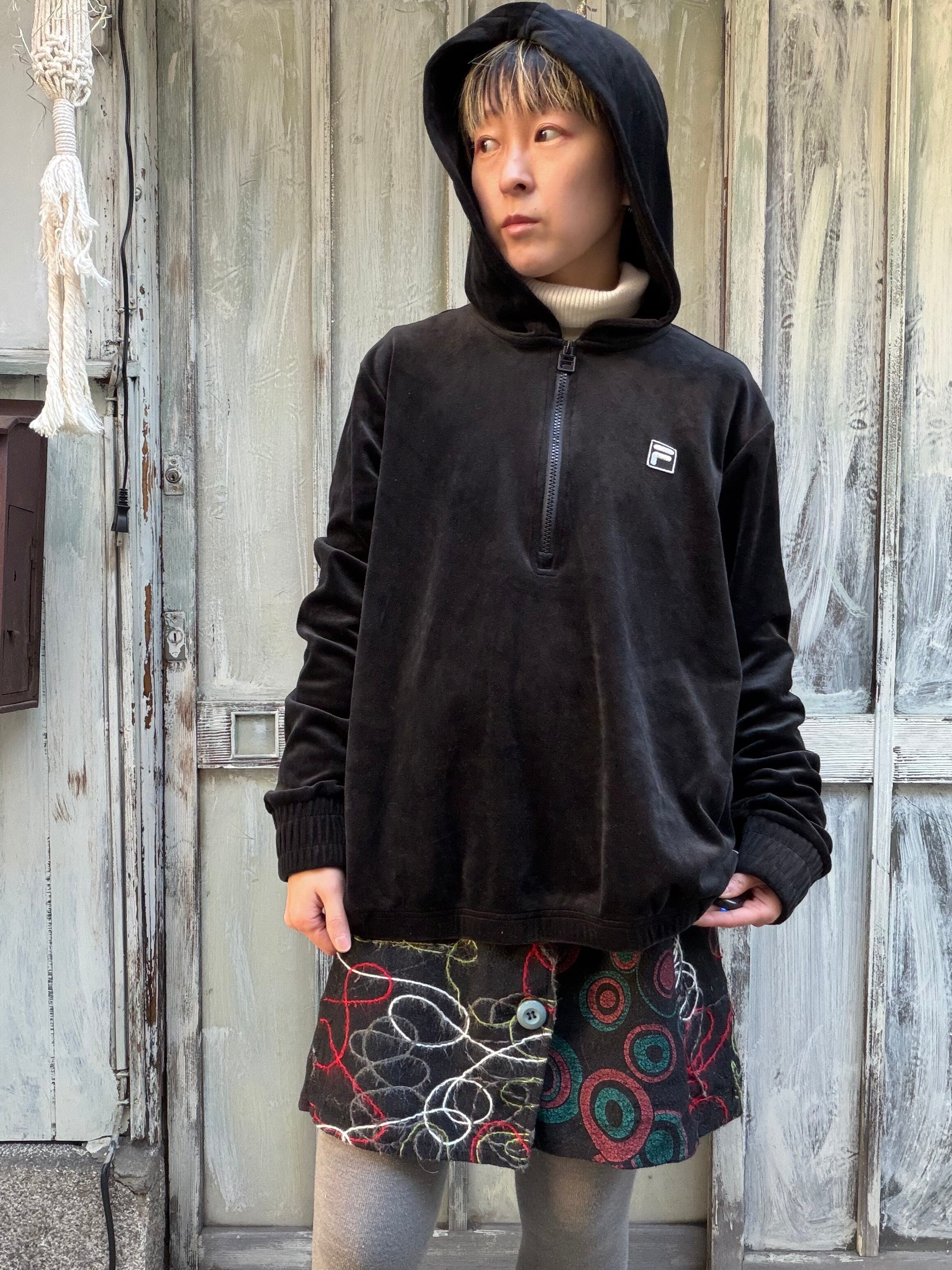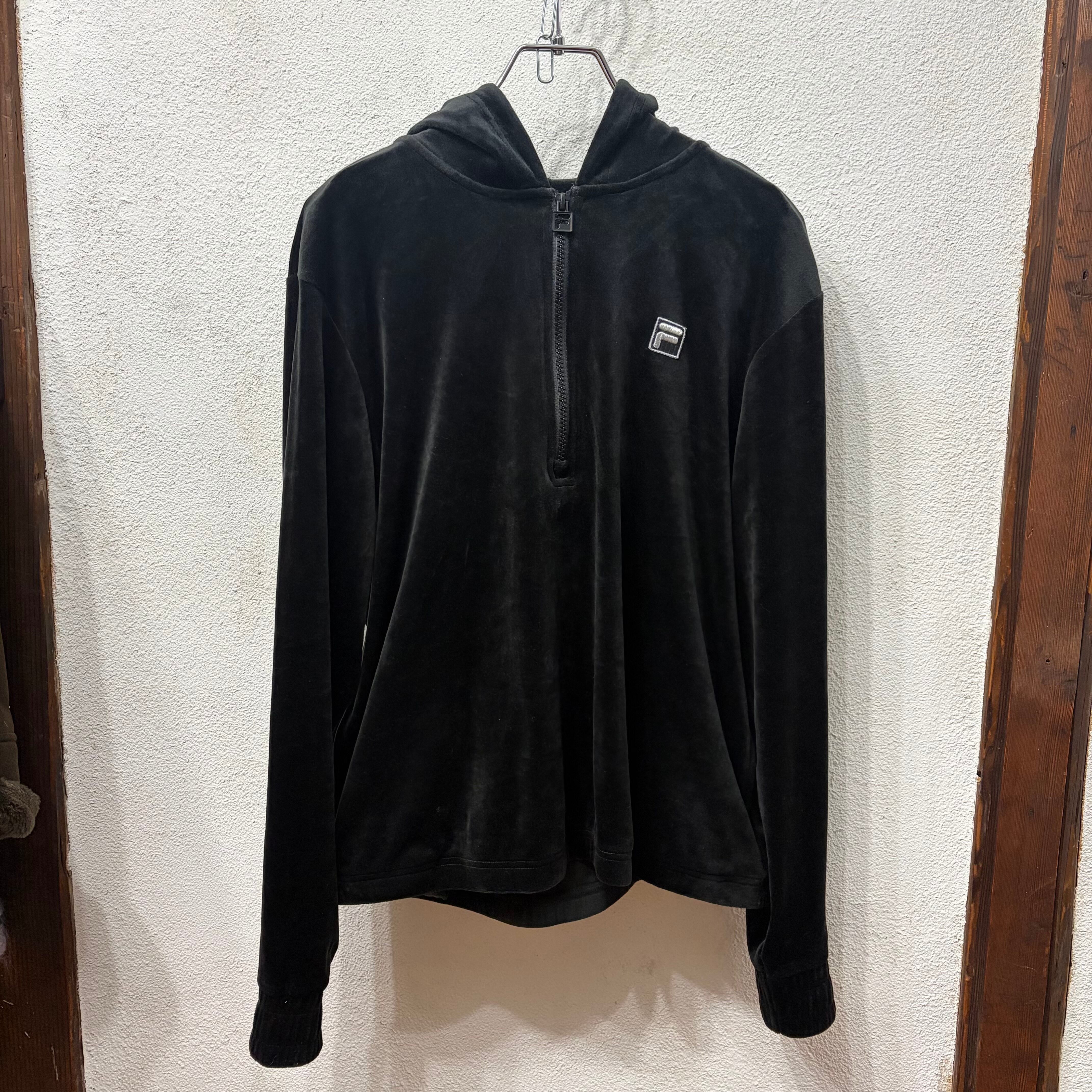 FILA Black velours pullover hoodie tops