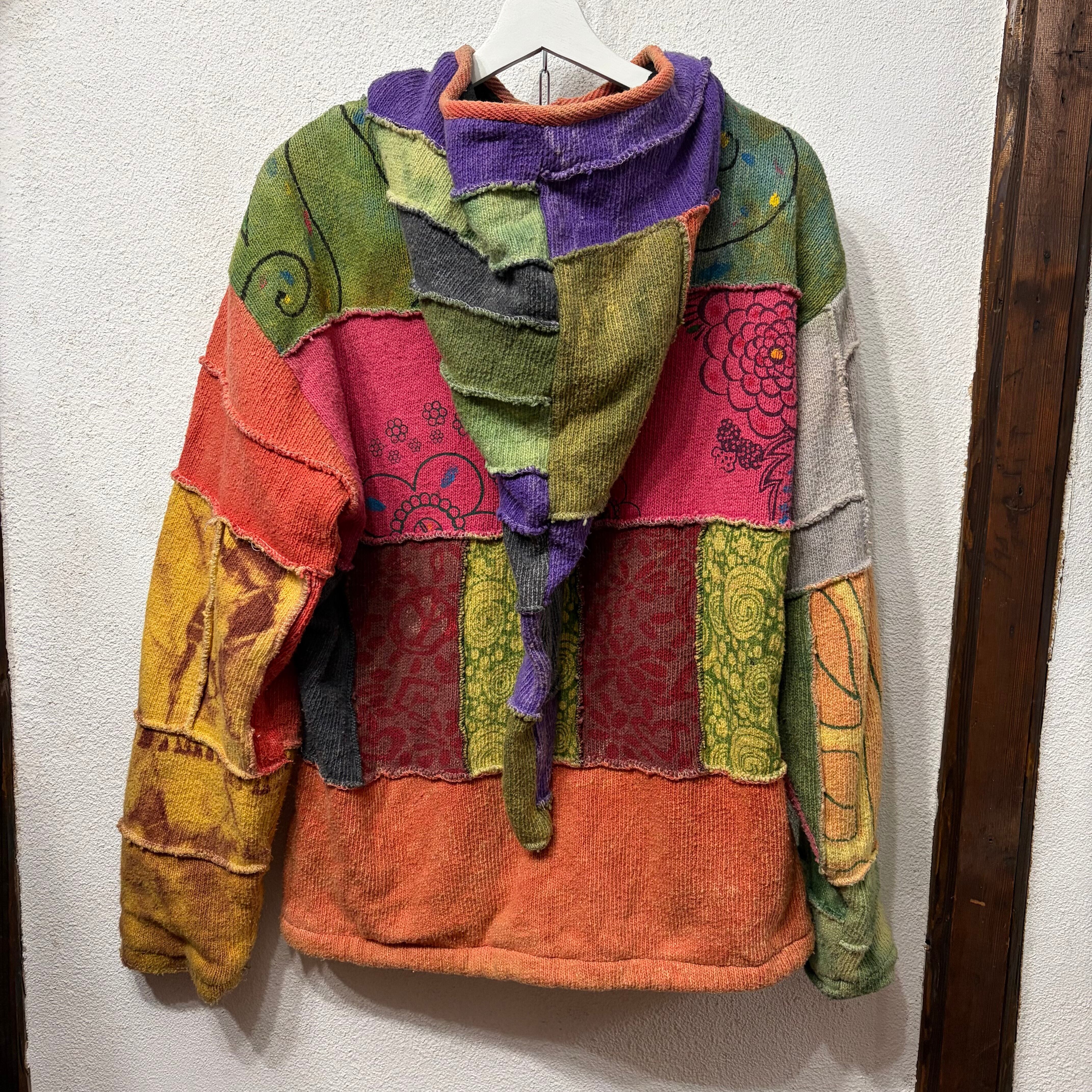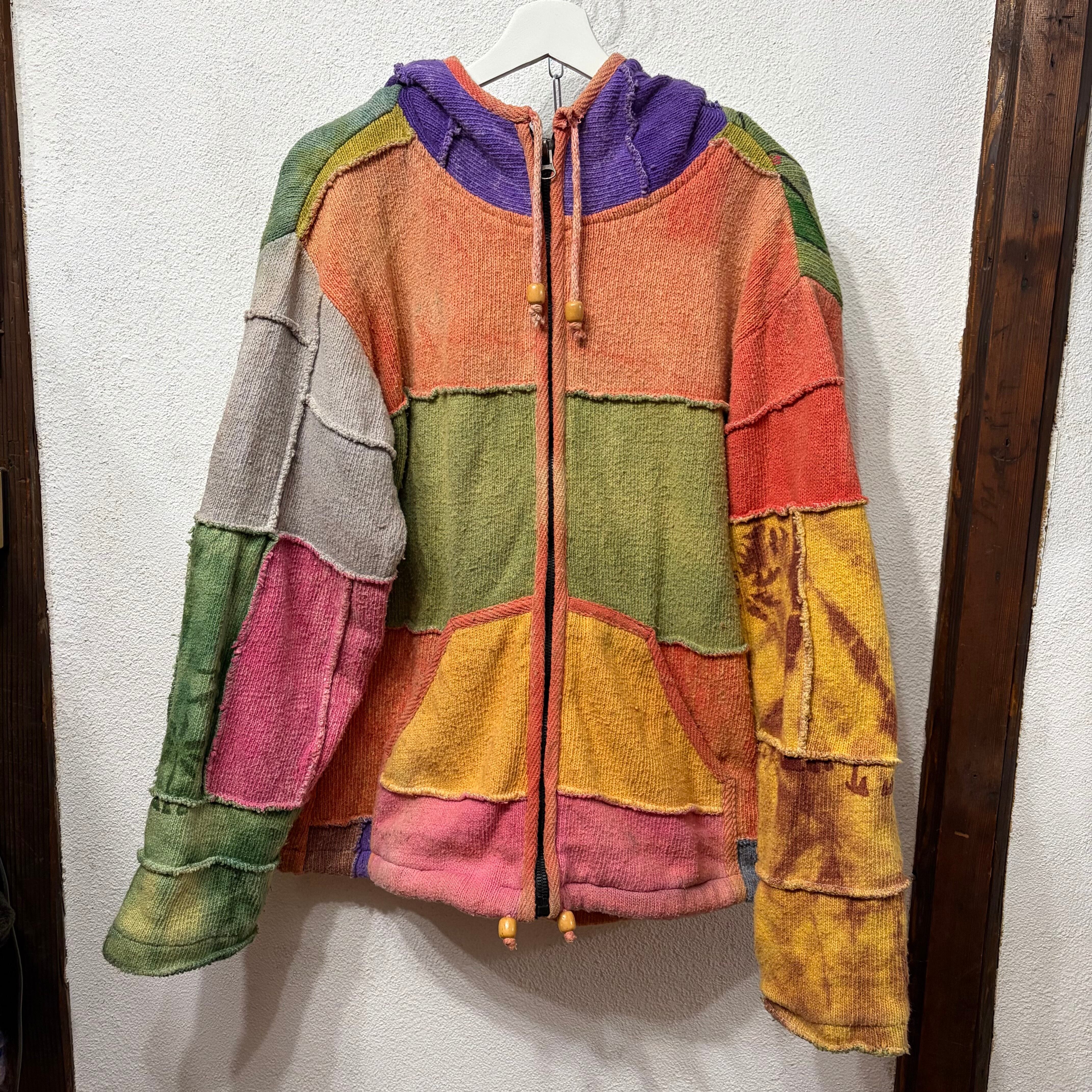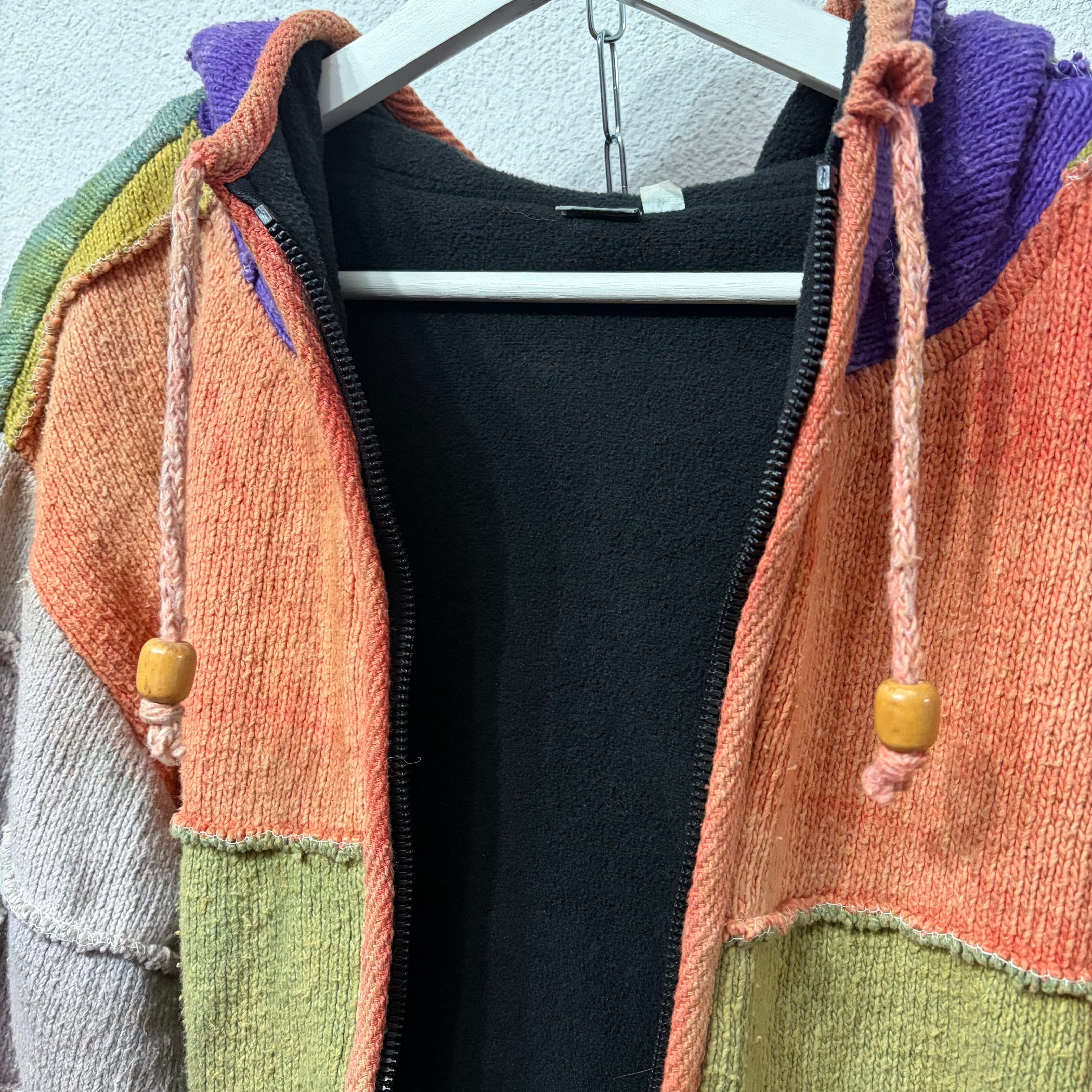 ネパール製カラフルなジップアップニットパーカー。