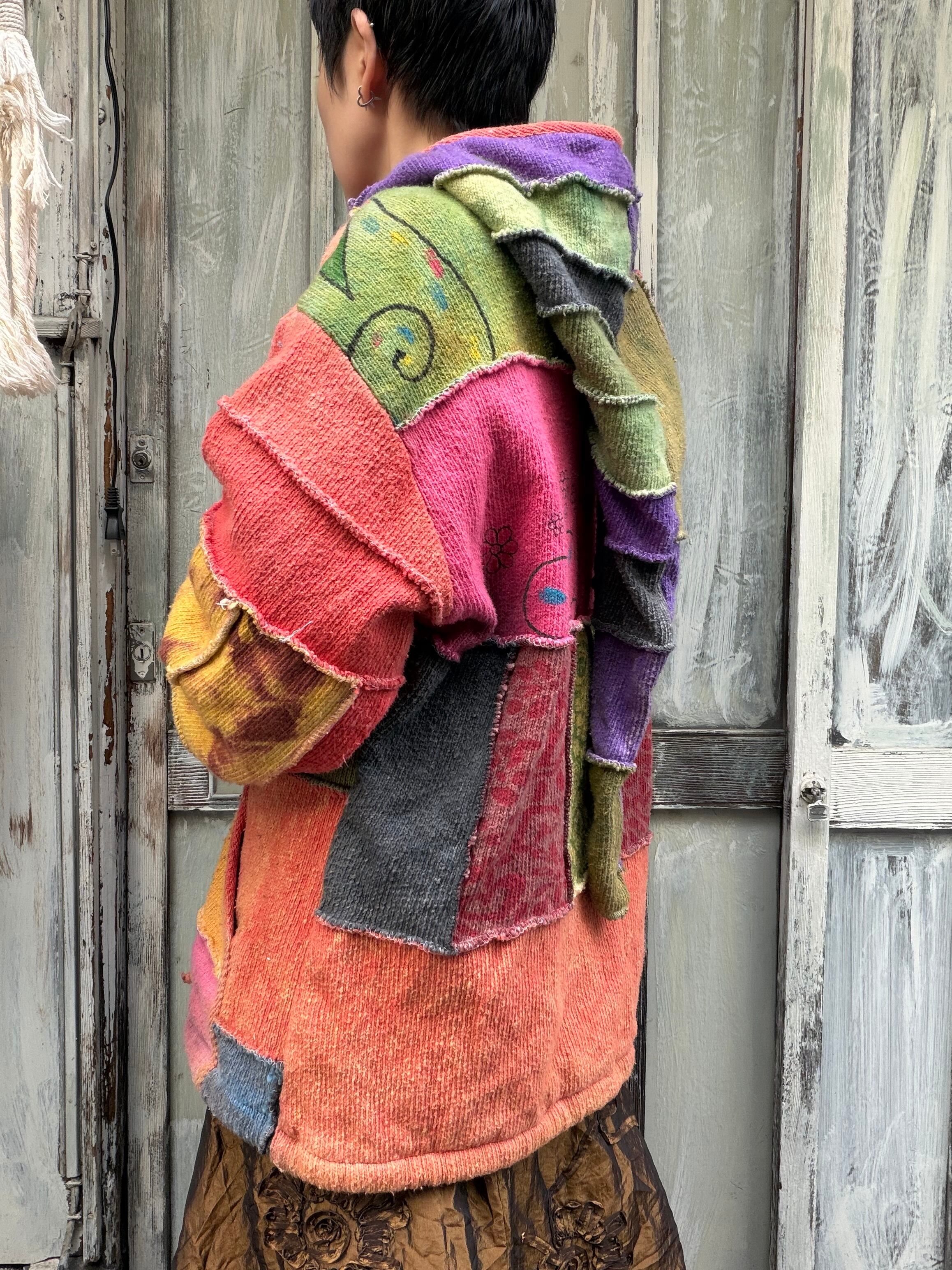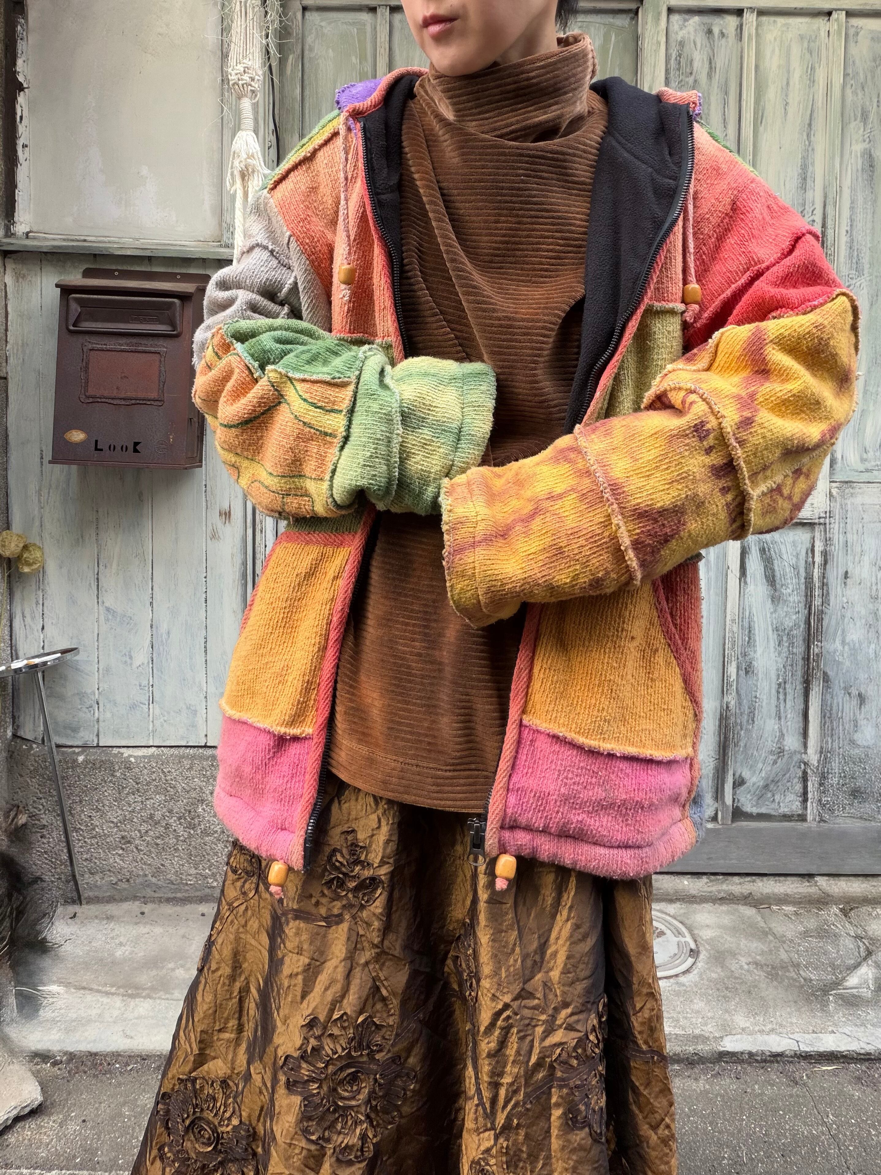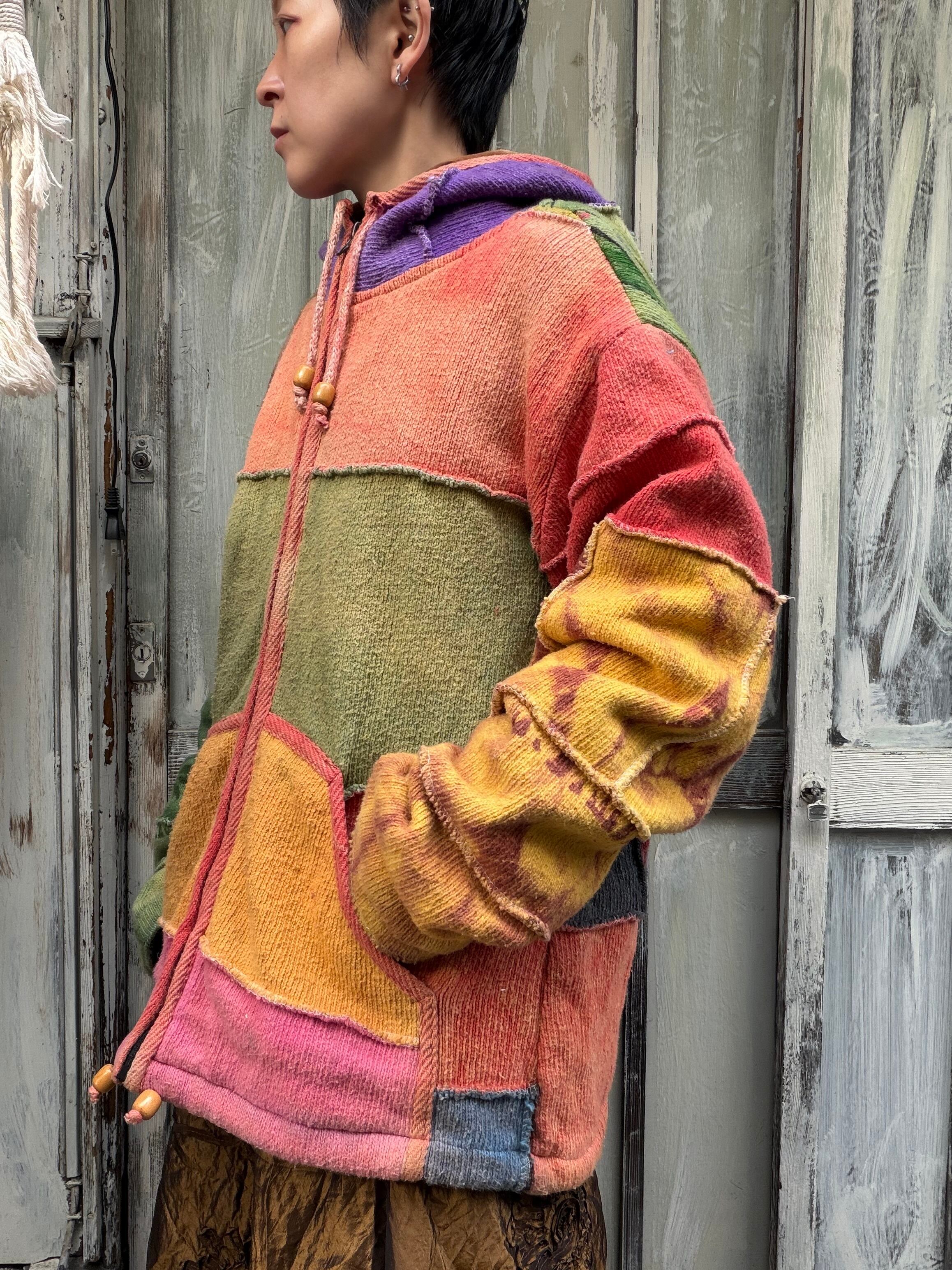 ネパール製カラフルなジップアップニットパーカー。