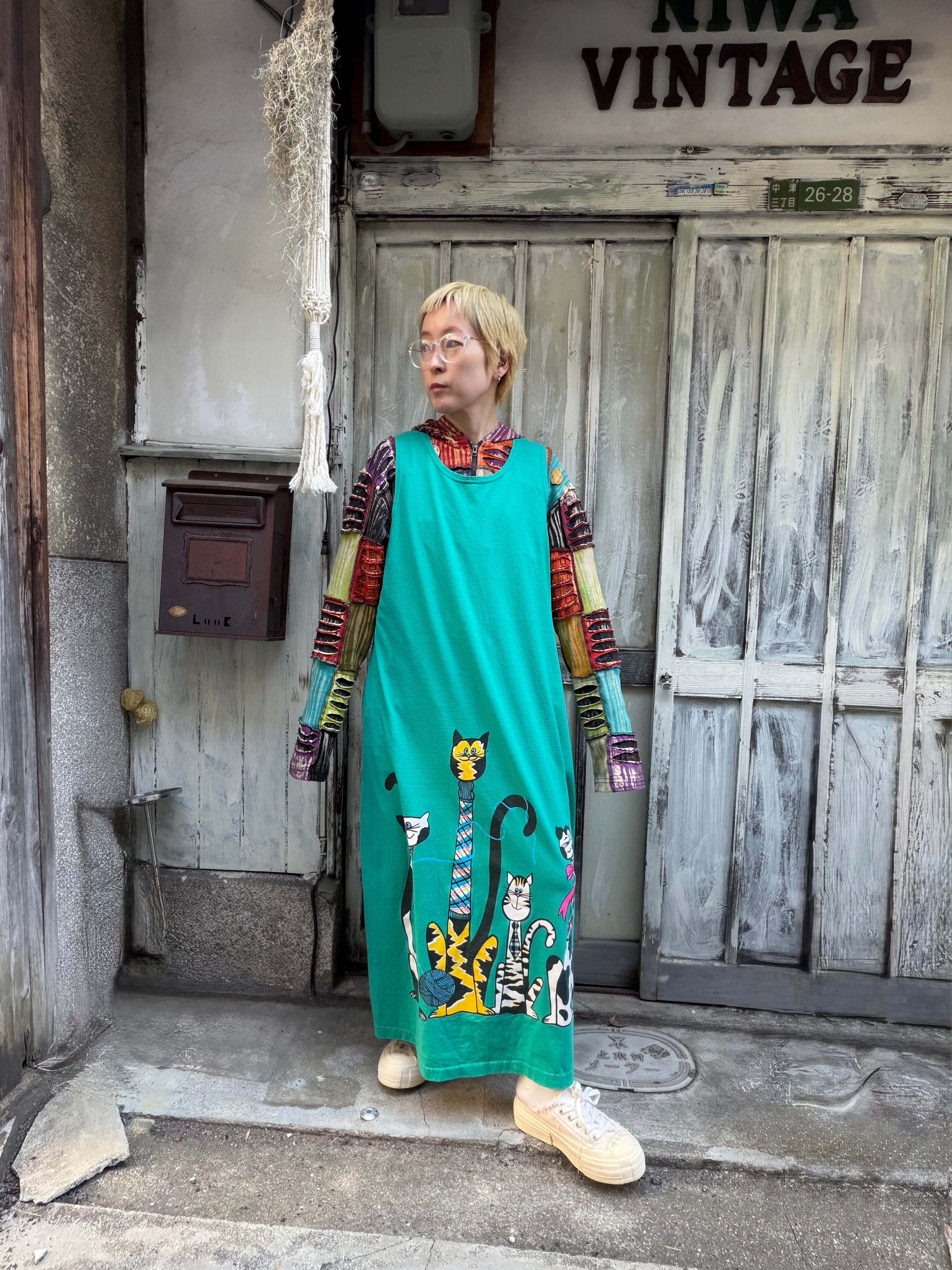 個性的なネコちゃん達が特徴的なロングワンピース。