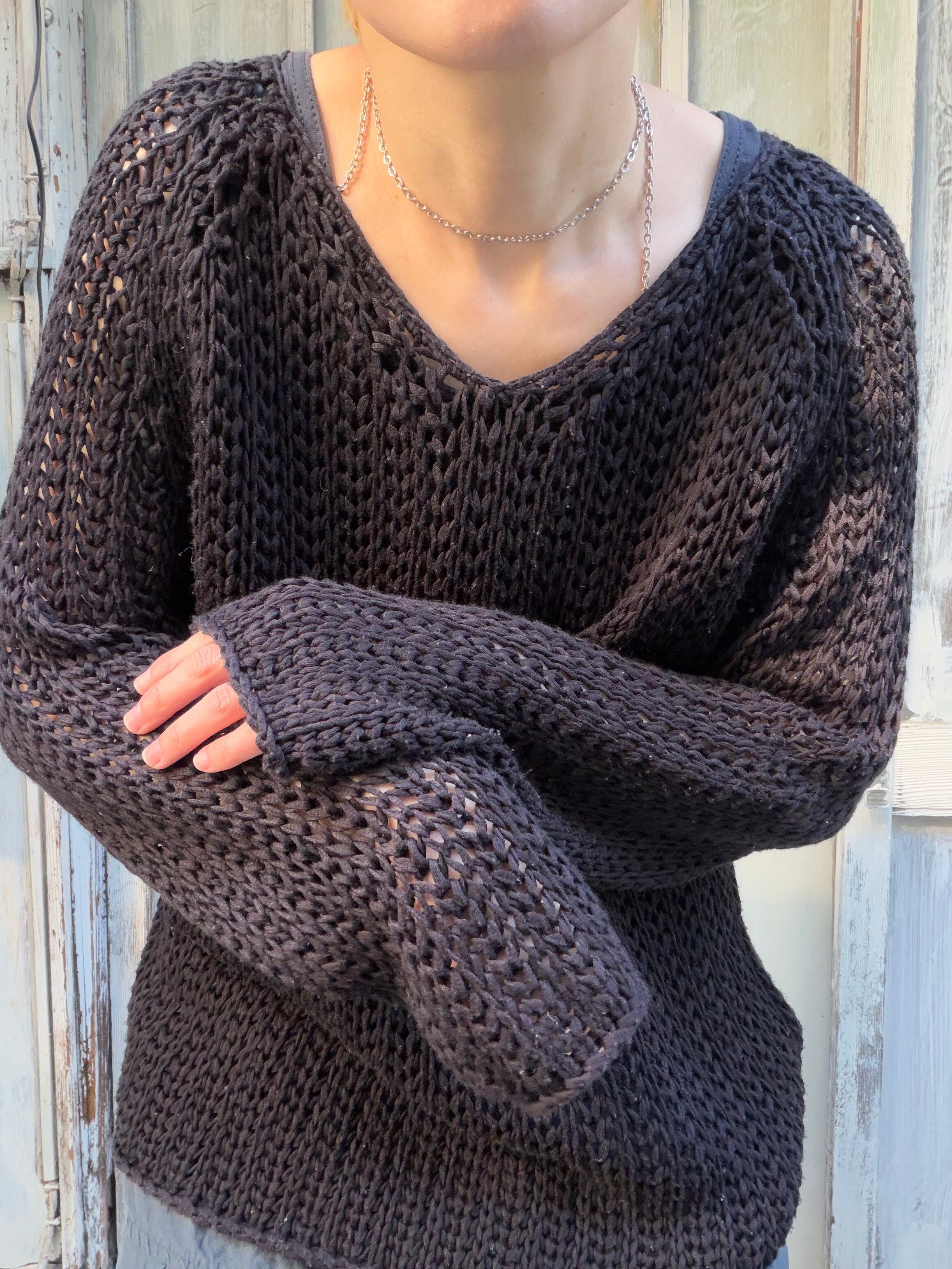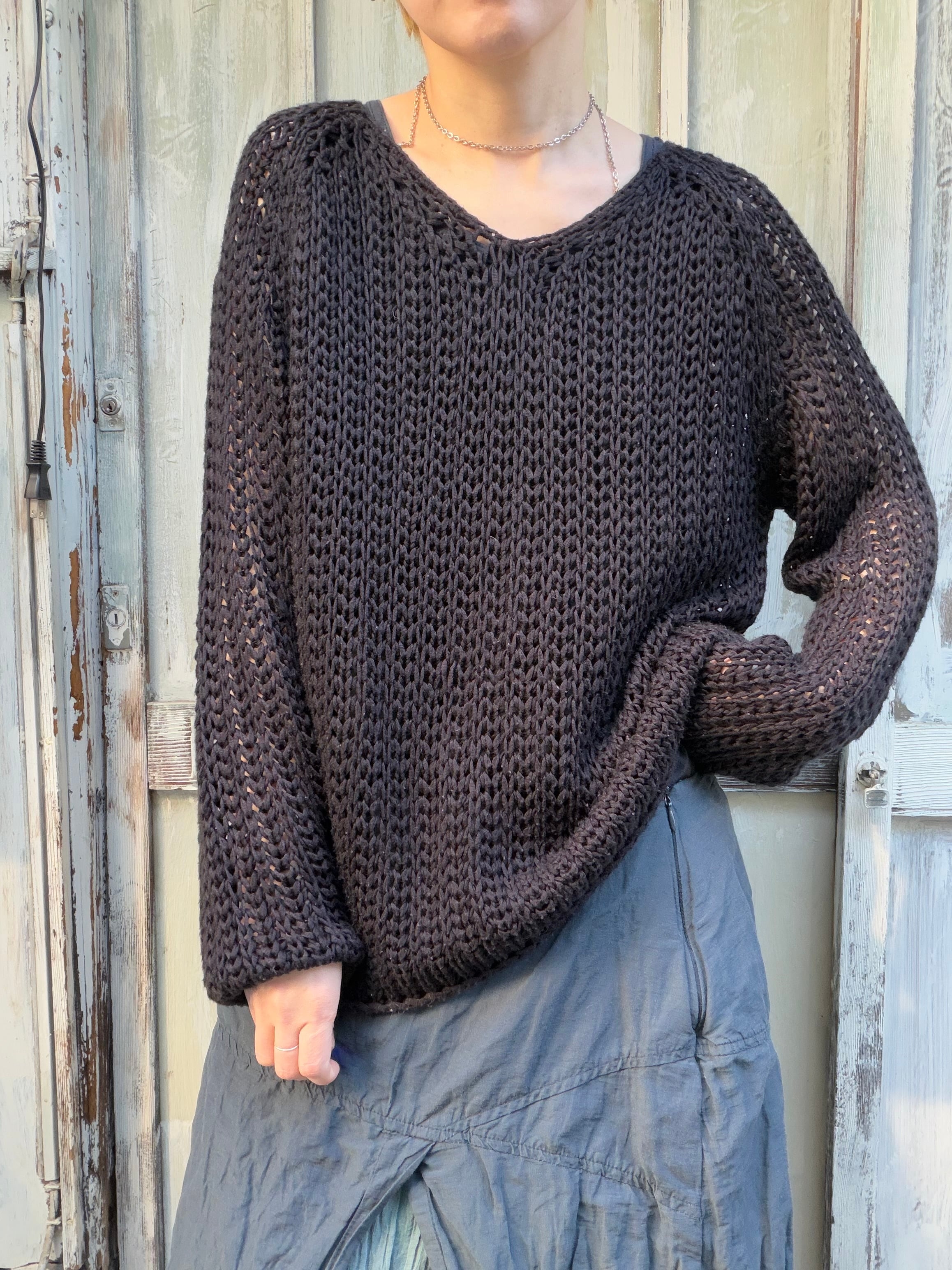 黒の透かし編み風のセーターです。