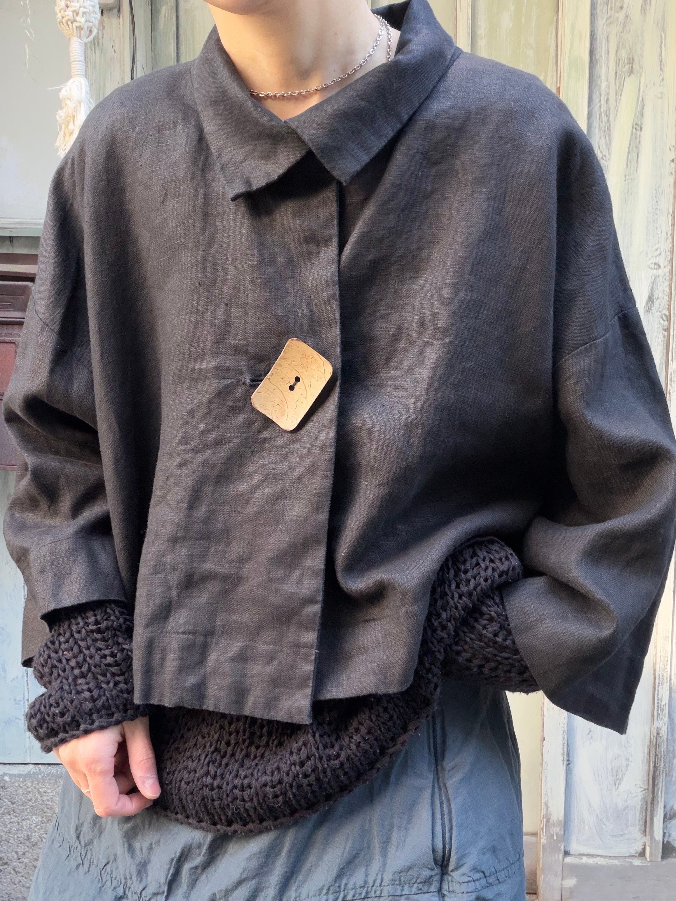 身幅はどかっと大きく着丈、袖丈は短いシルエットです。
