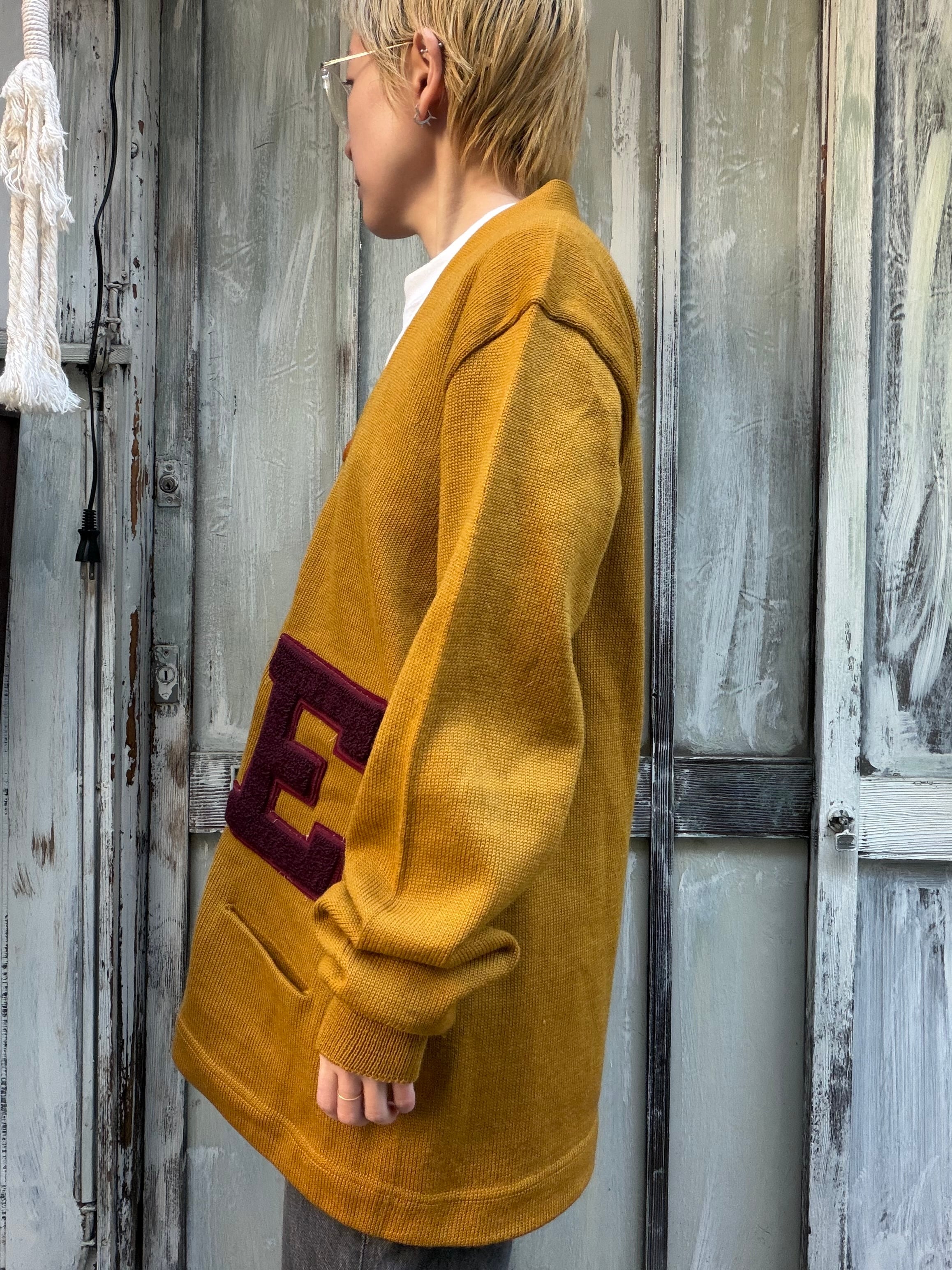 【E】のレタードカーディガン。