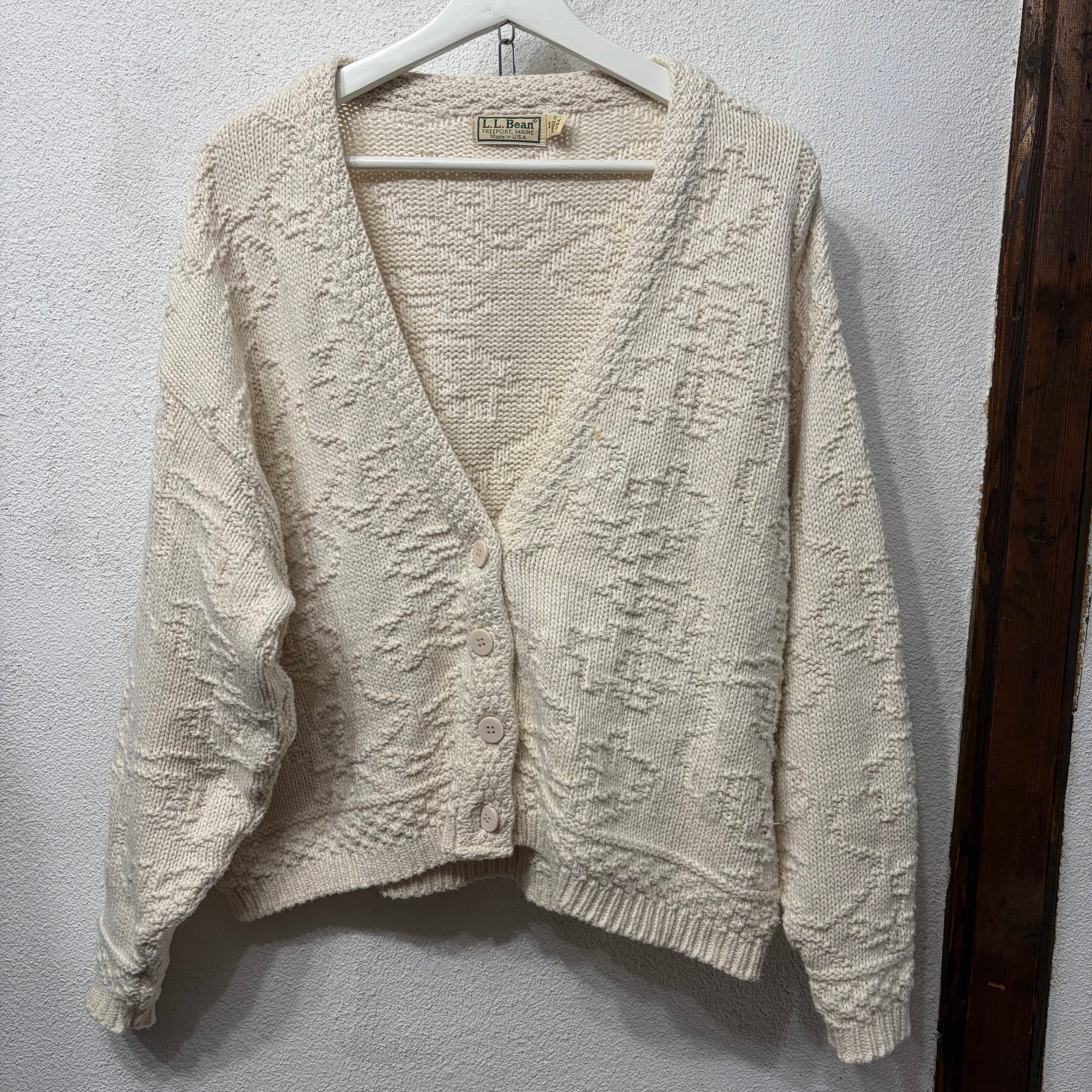 アメリカ製エルエルビーンのコットン白カーディガン。