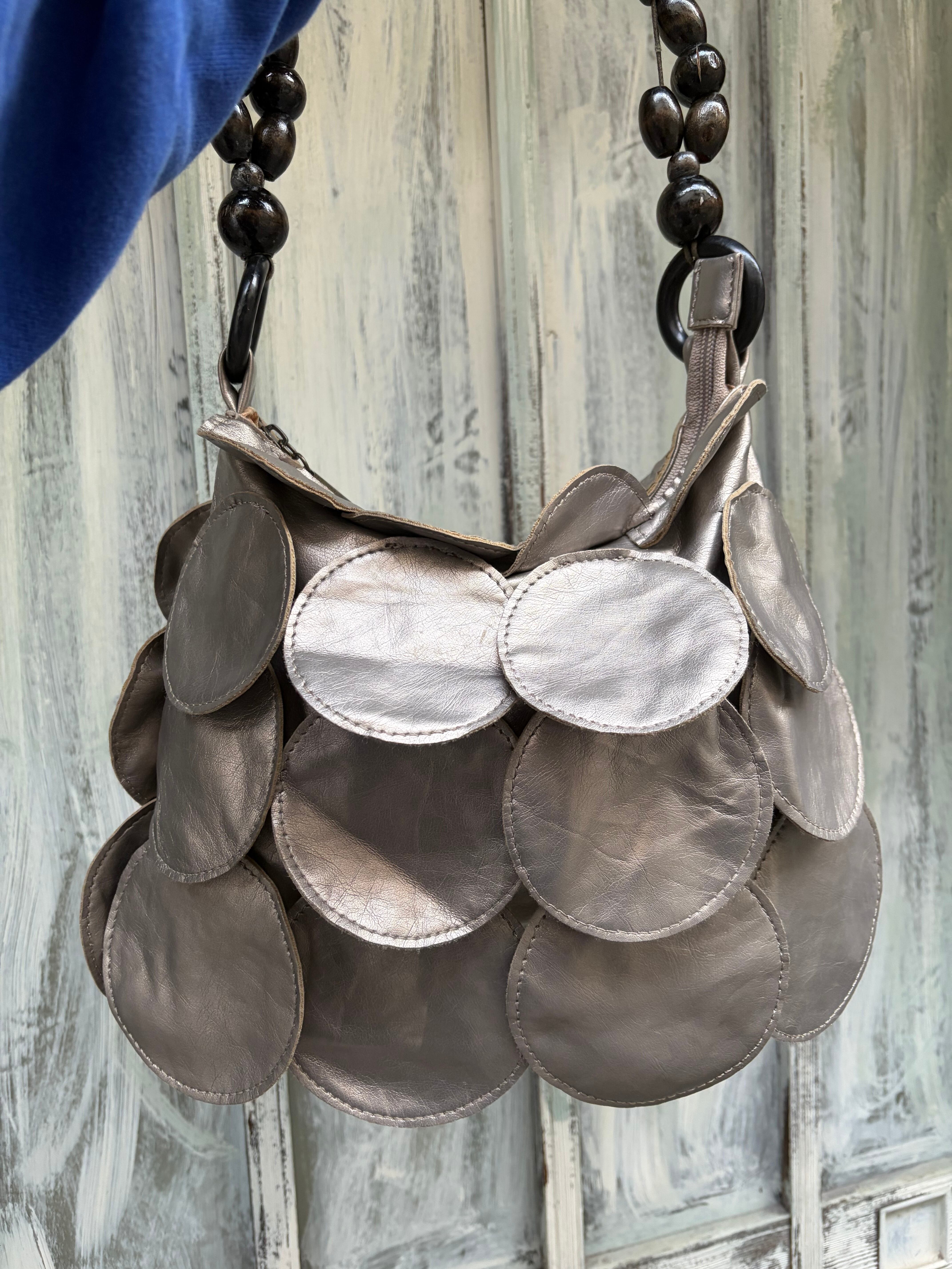 シルバーカラーのデザインハンド、ショルダーバック。