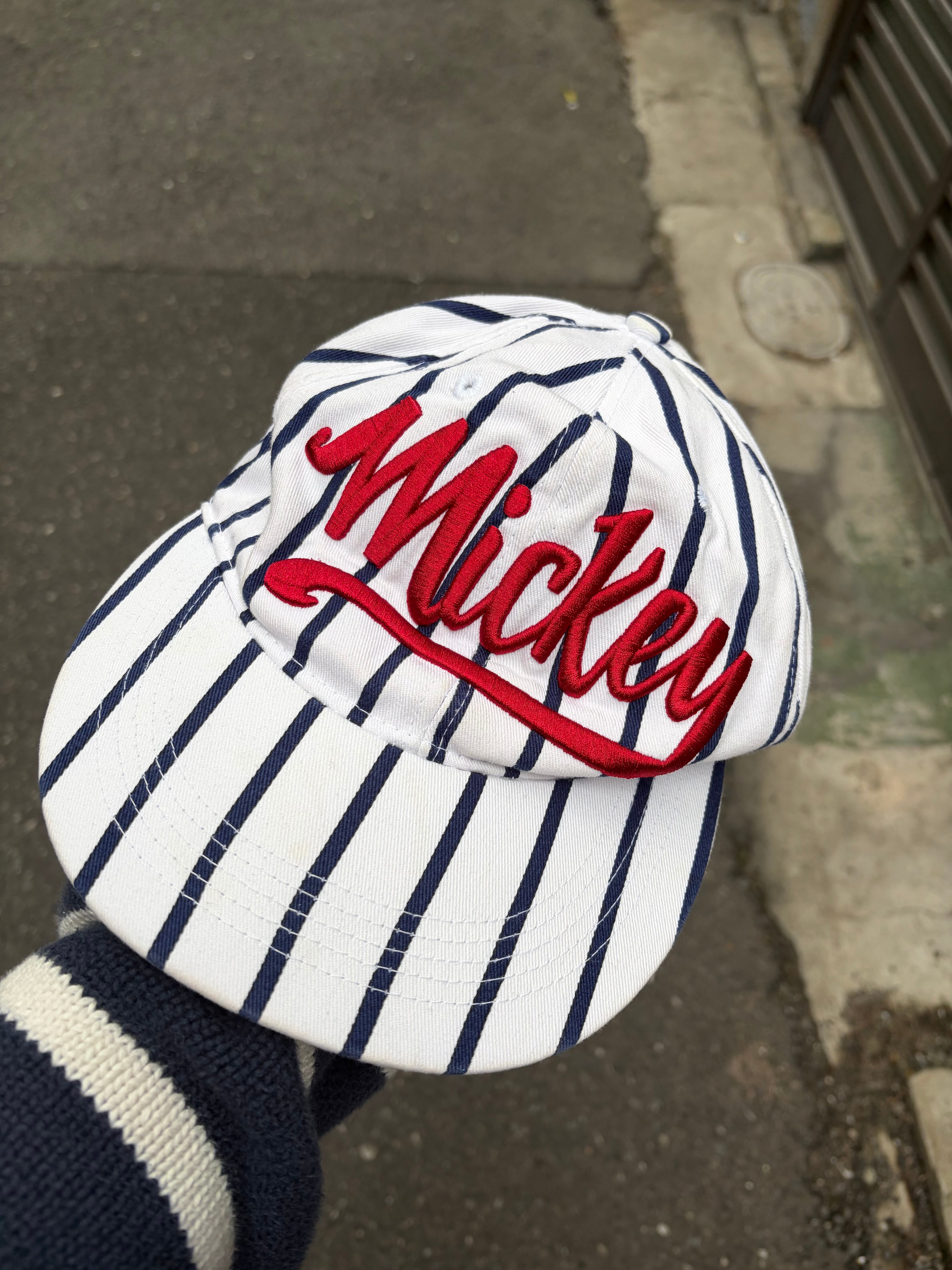mickeyの刺繍にストライプヒッコリー柄がいい。