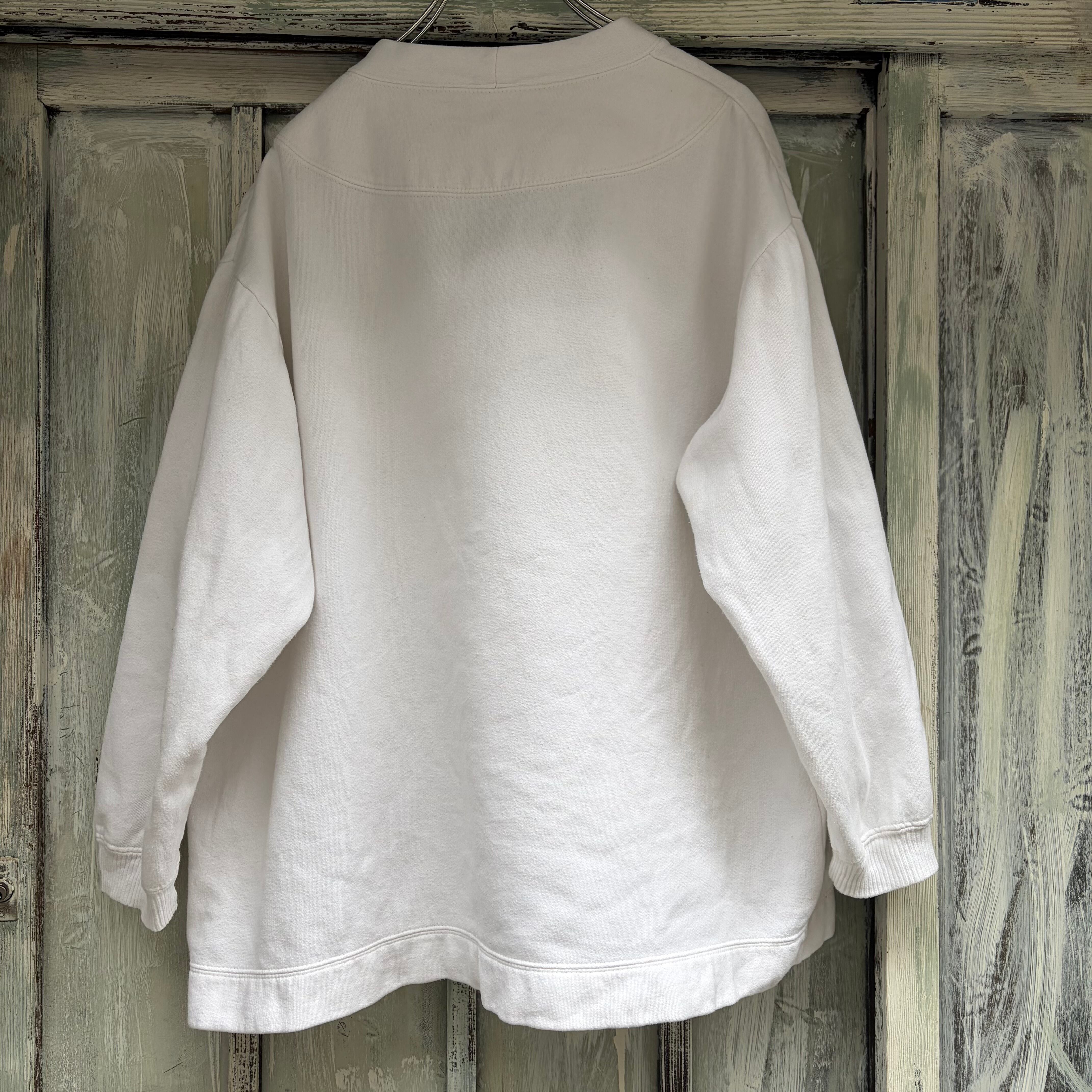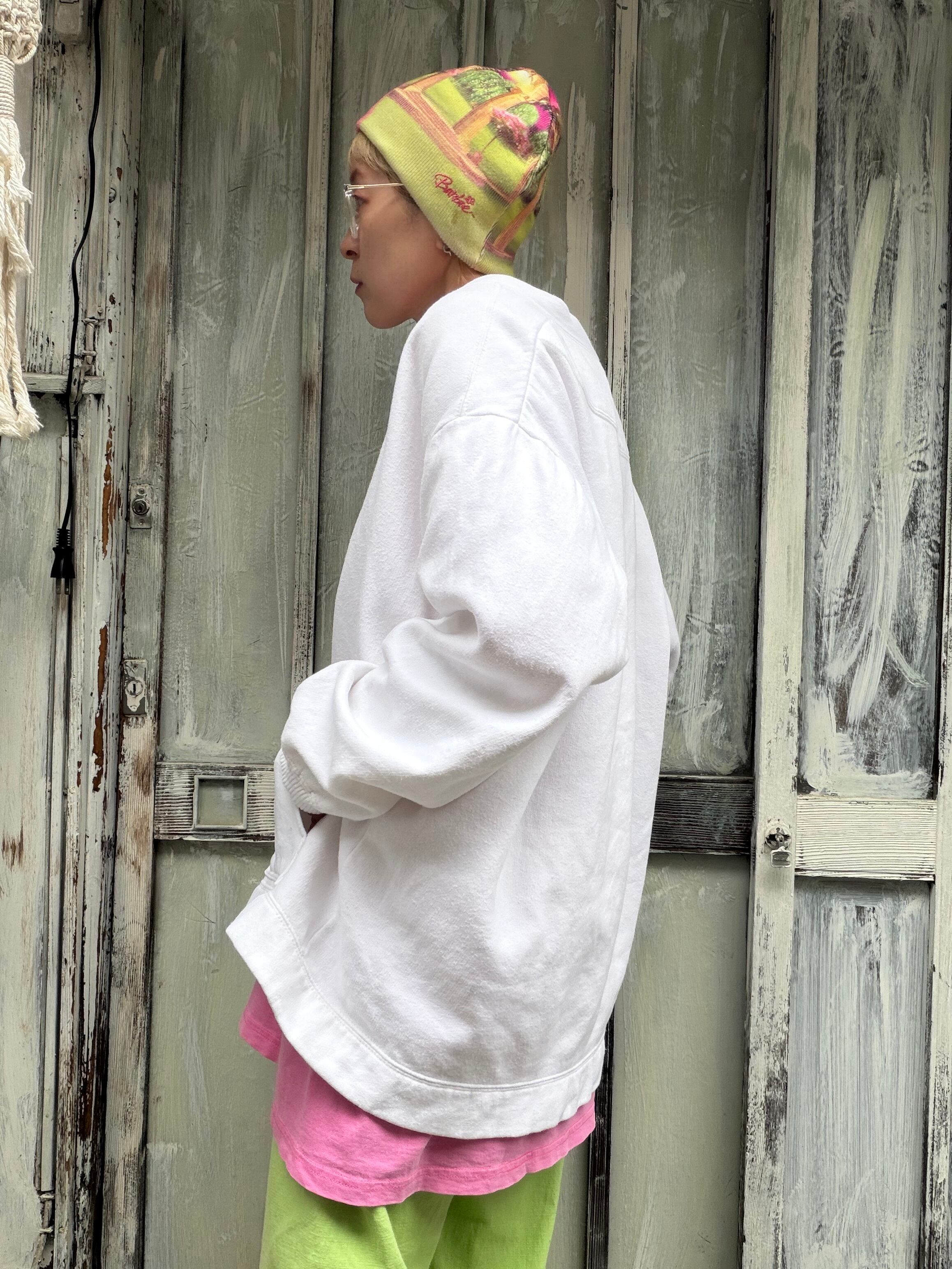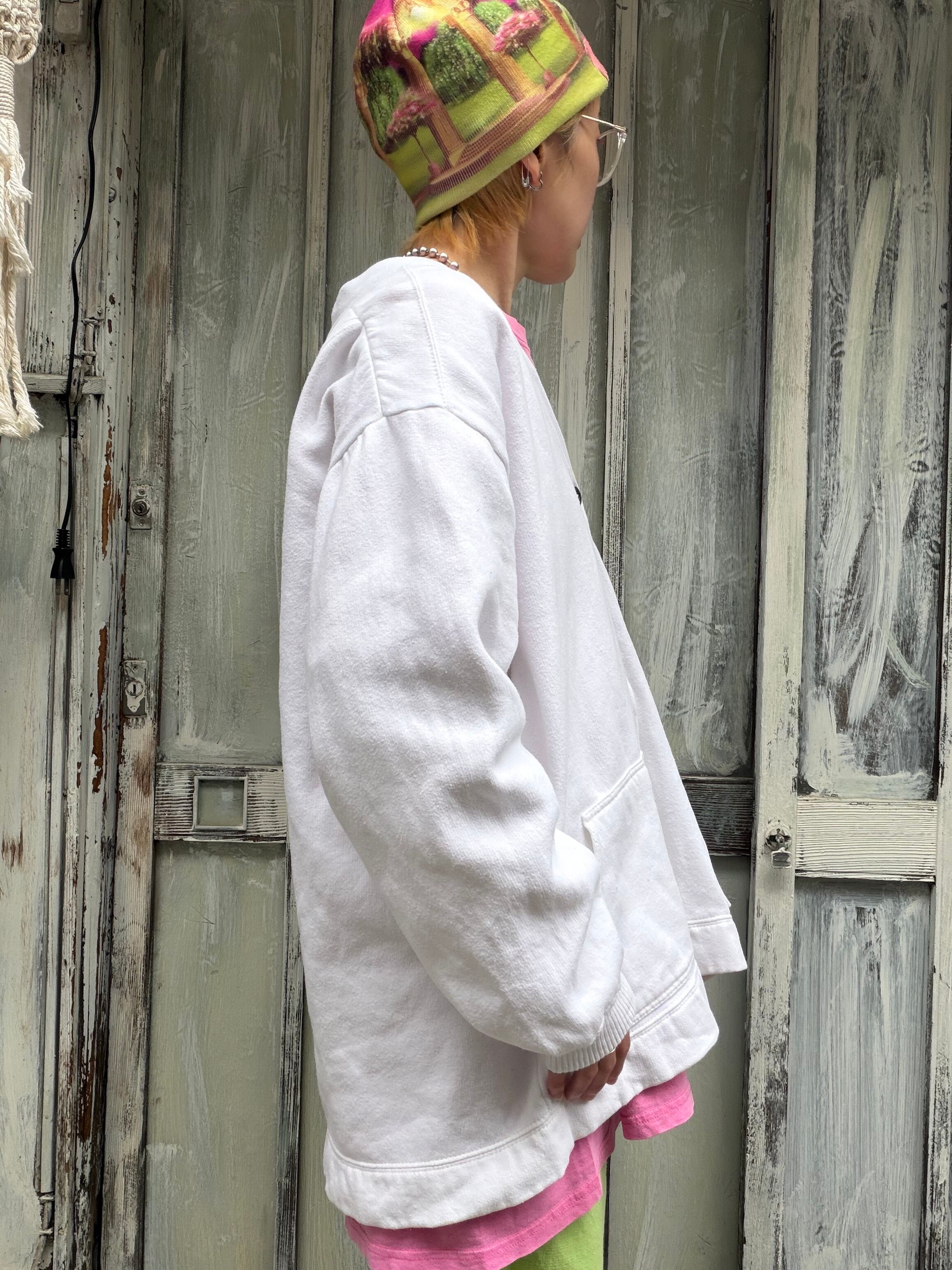 白のスウェットカーディガン。