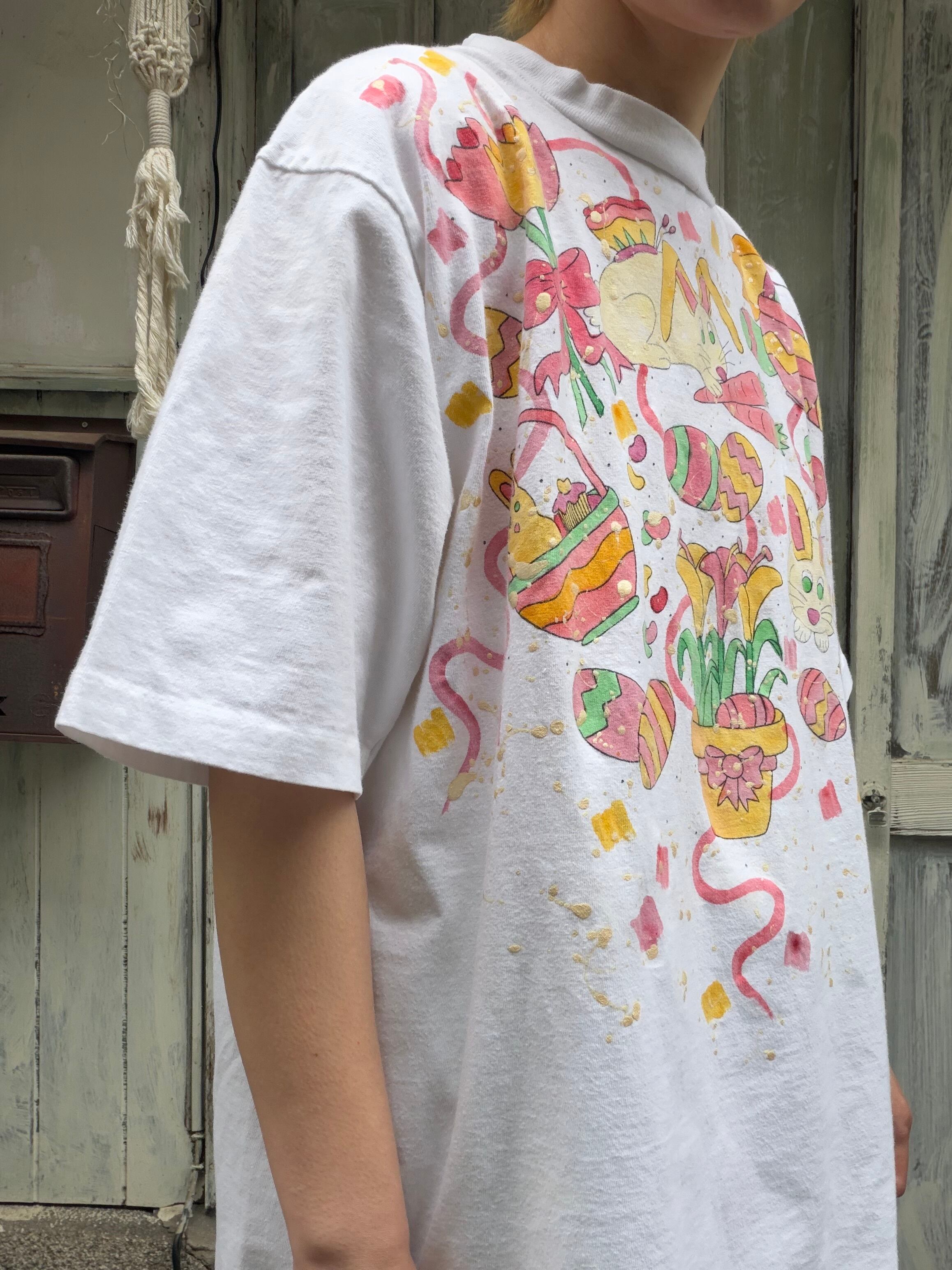 ハンドペイティングのイラストが可愛いTシャツ。