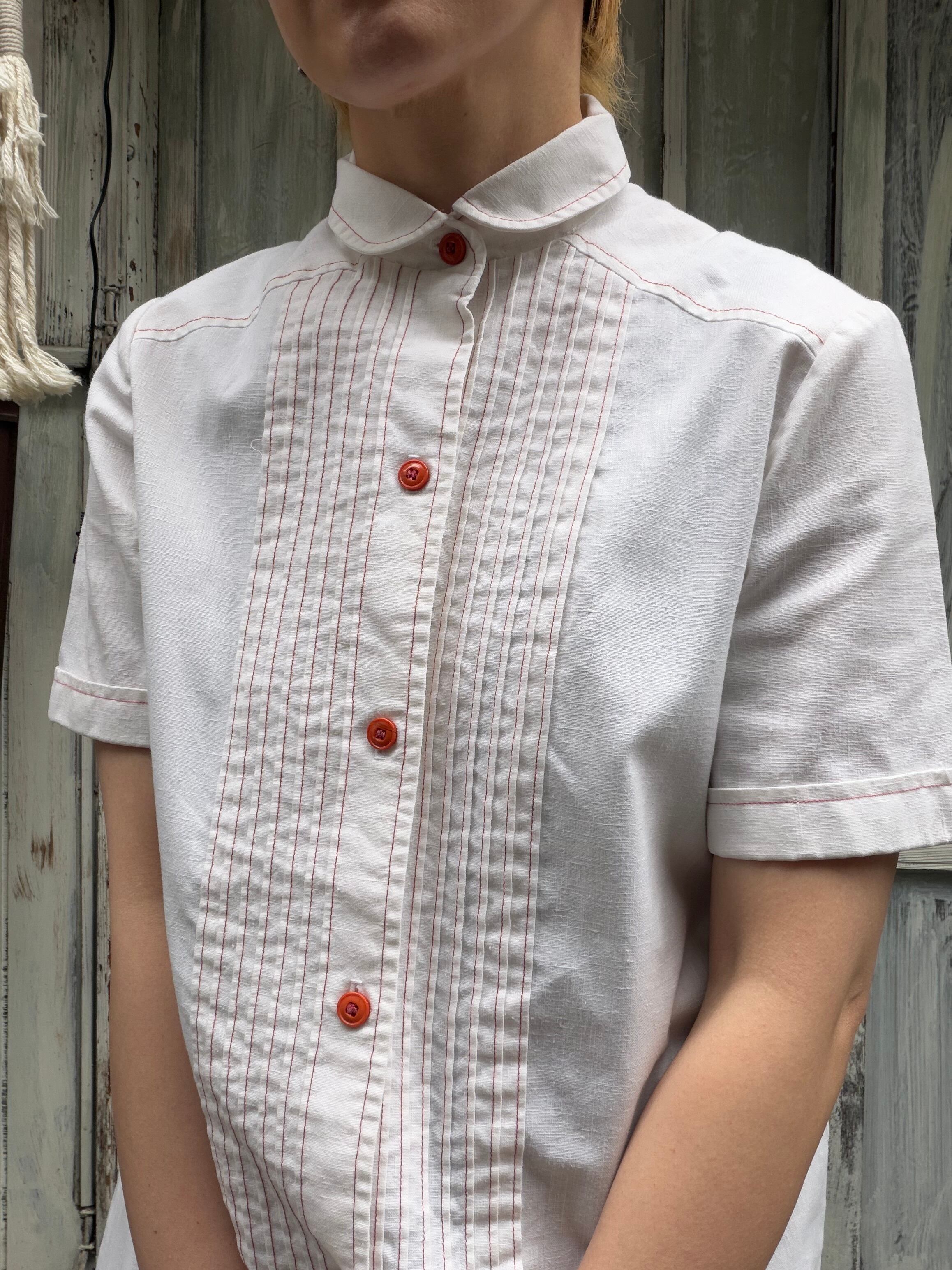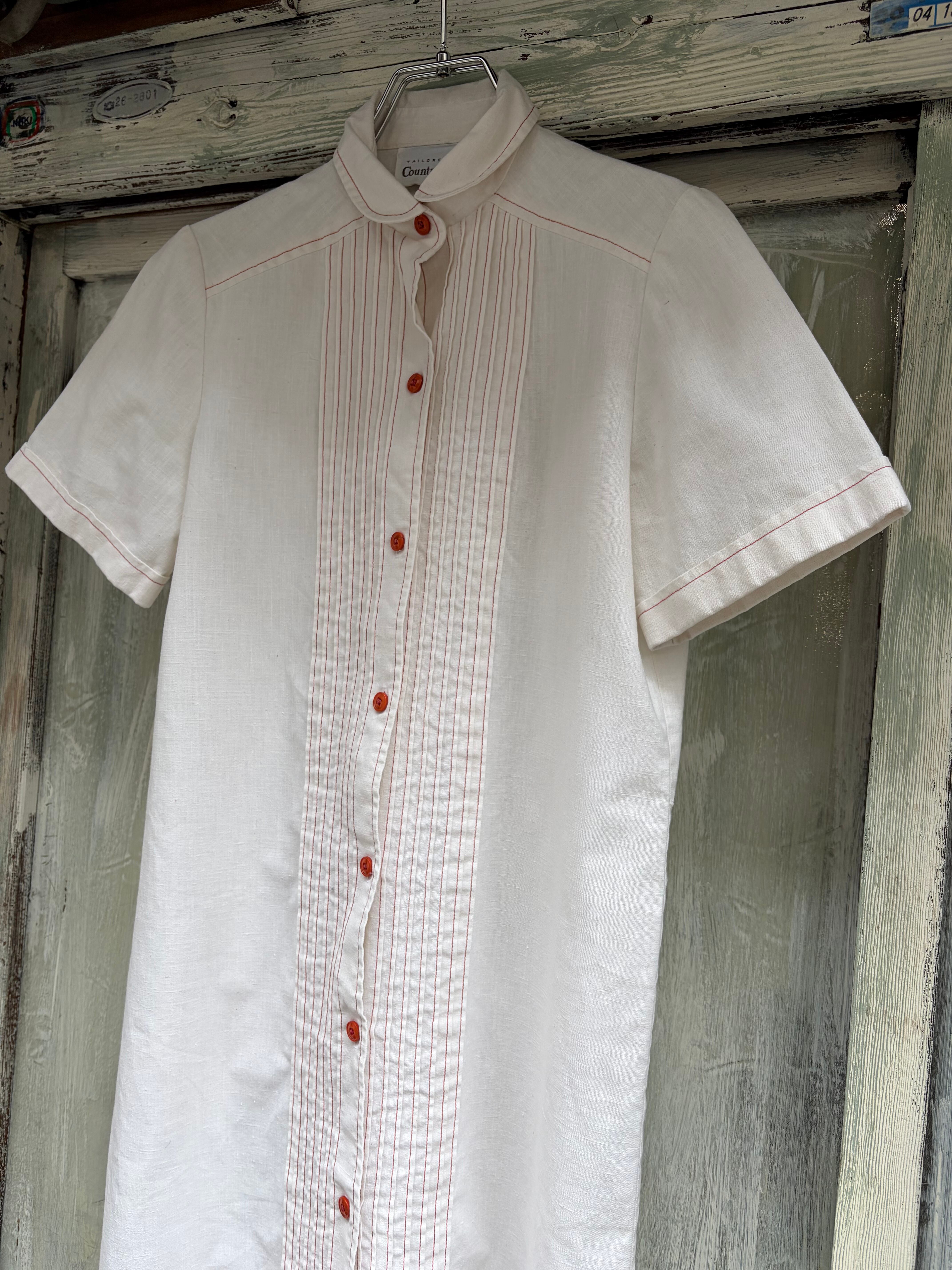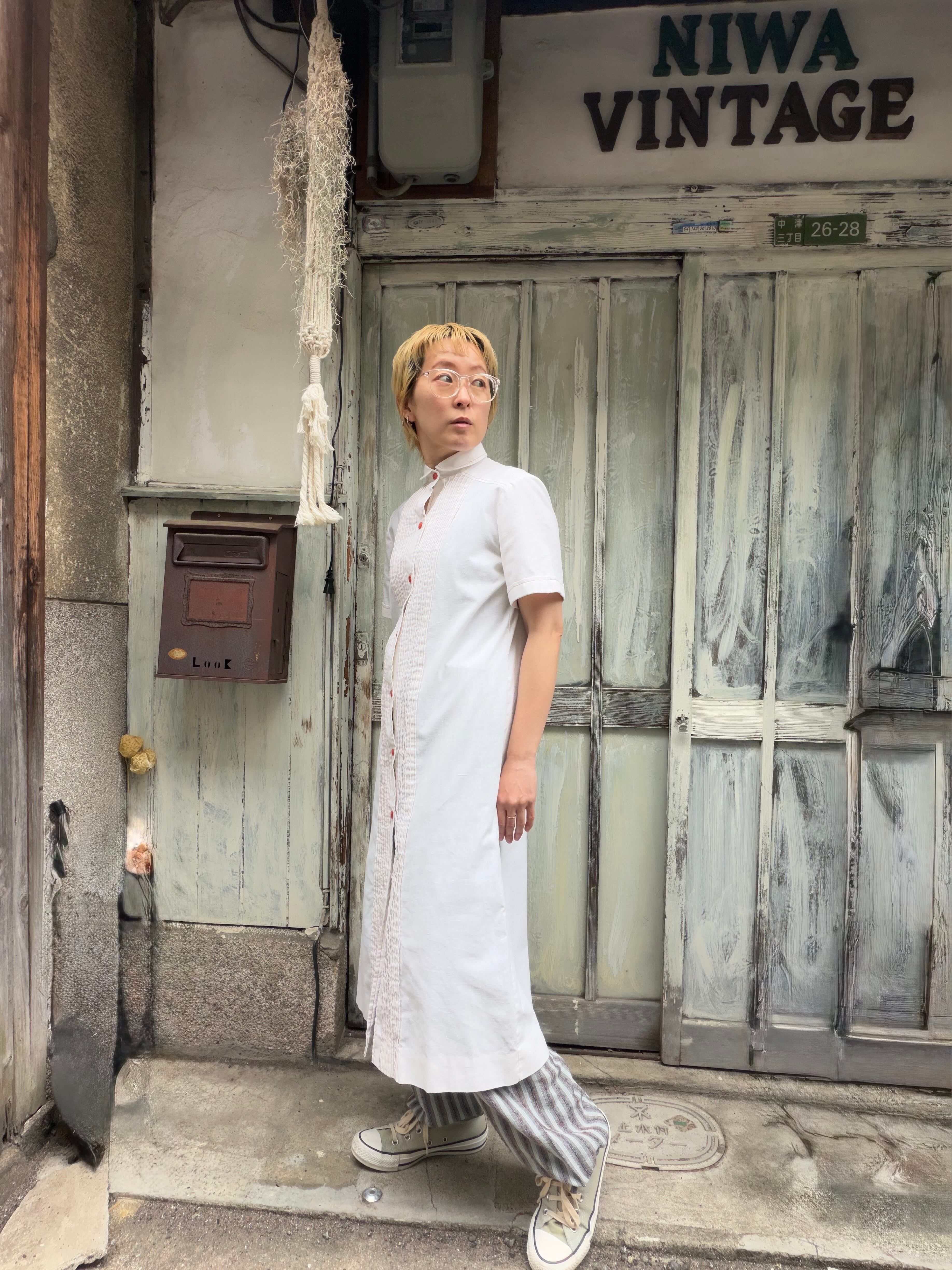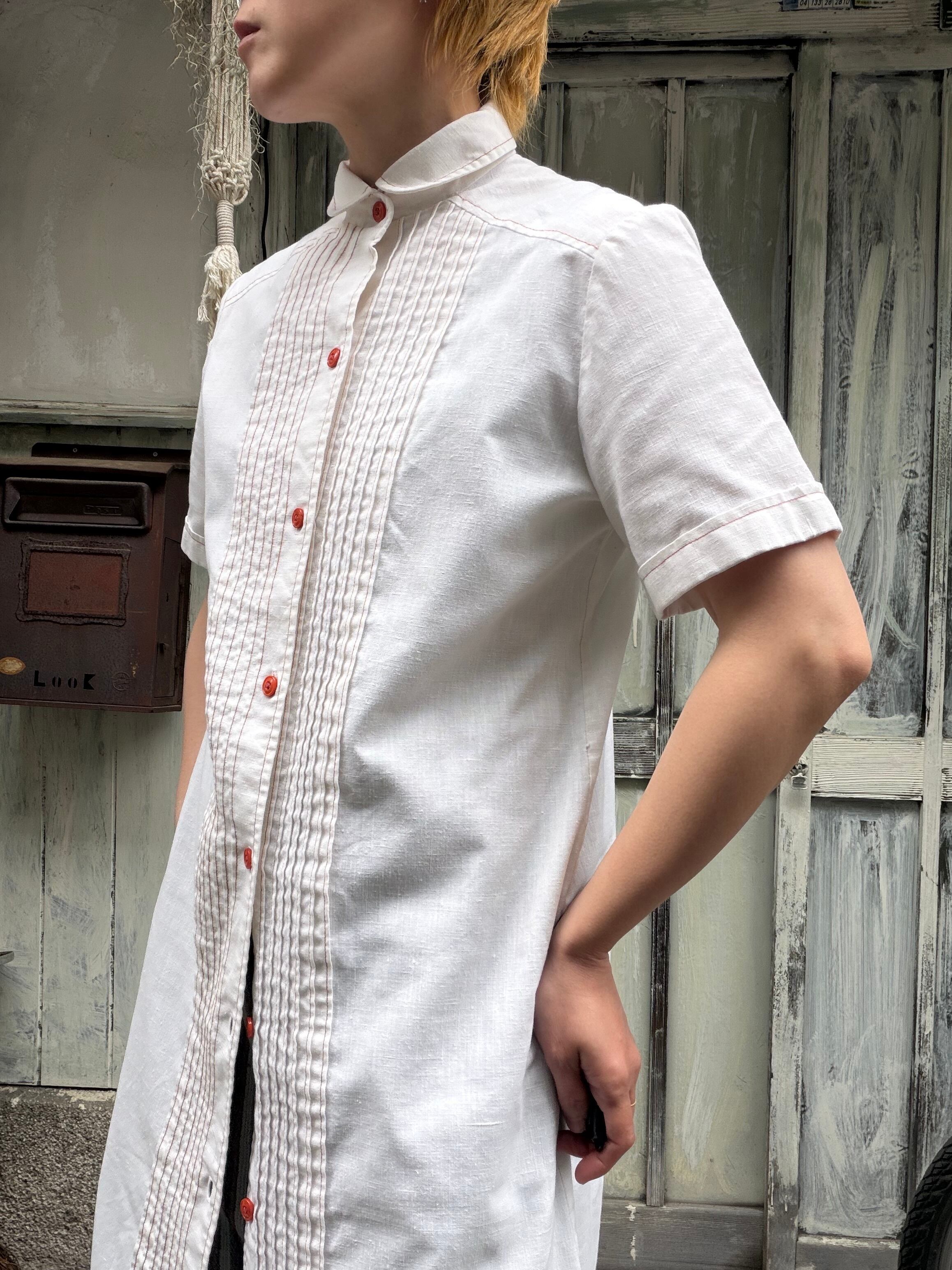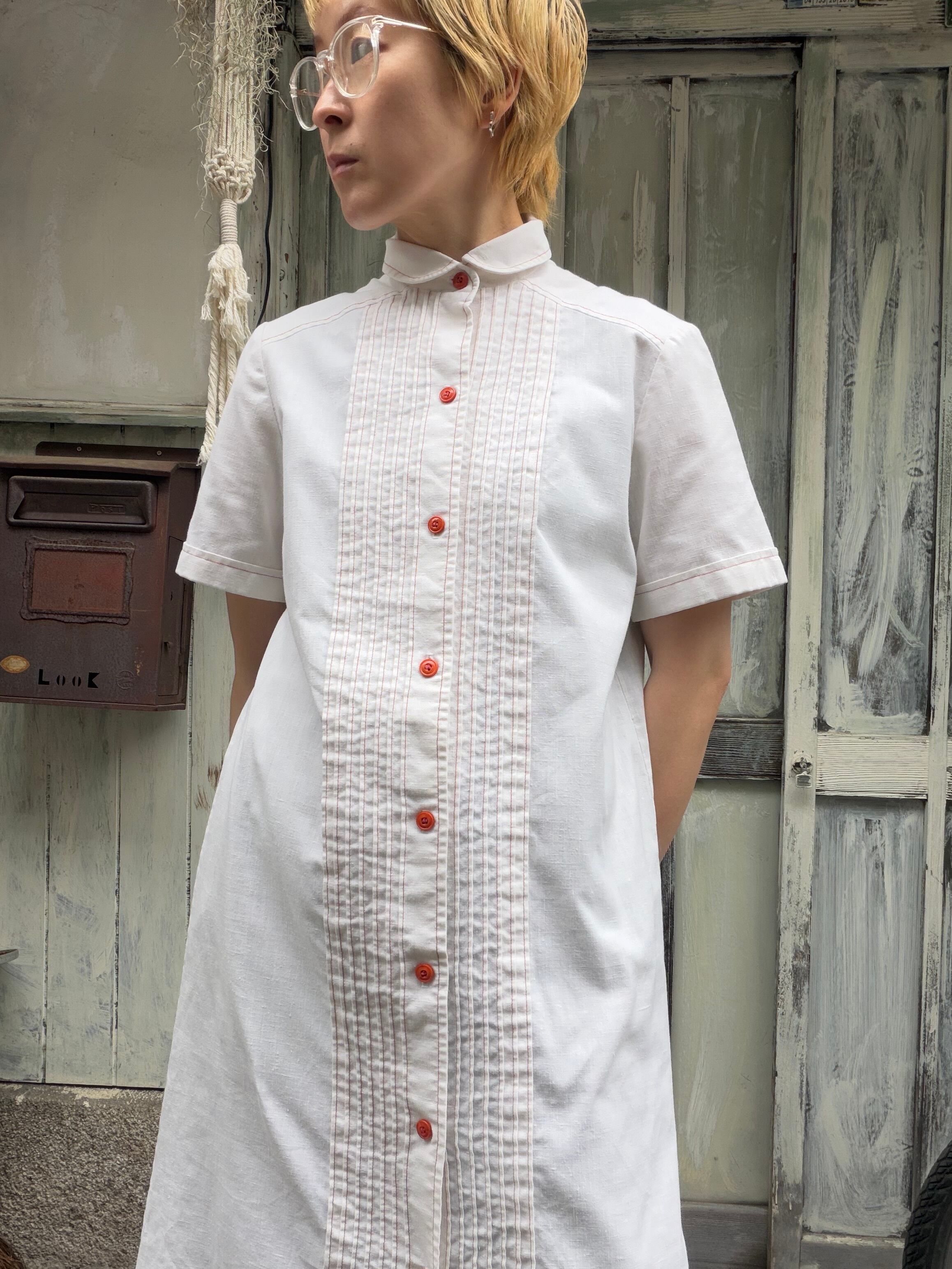 チビ丸襟、ステッチ、ボタン諸々全てが可愛いシャツワンピース。