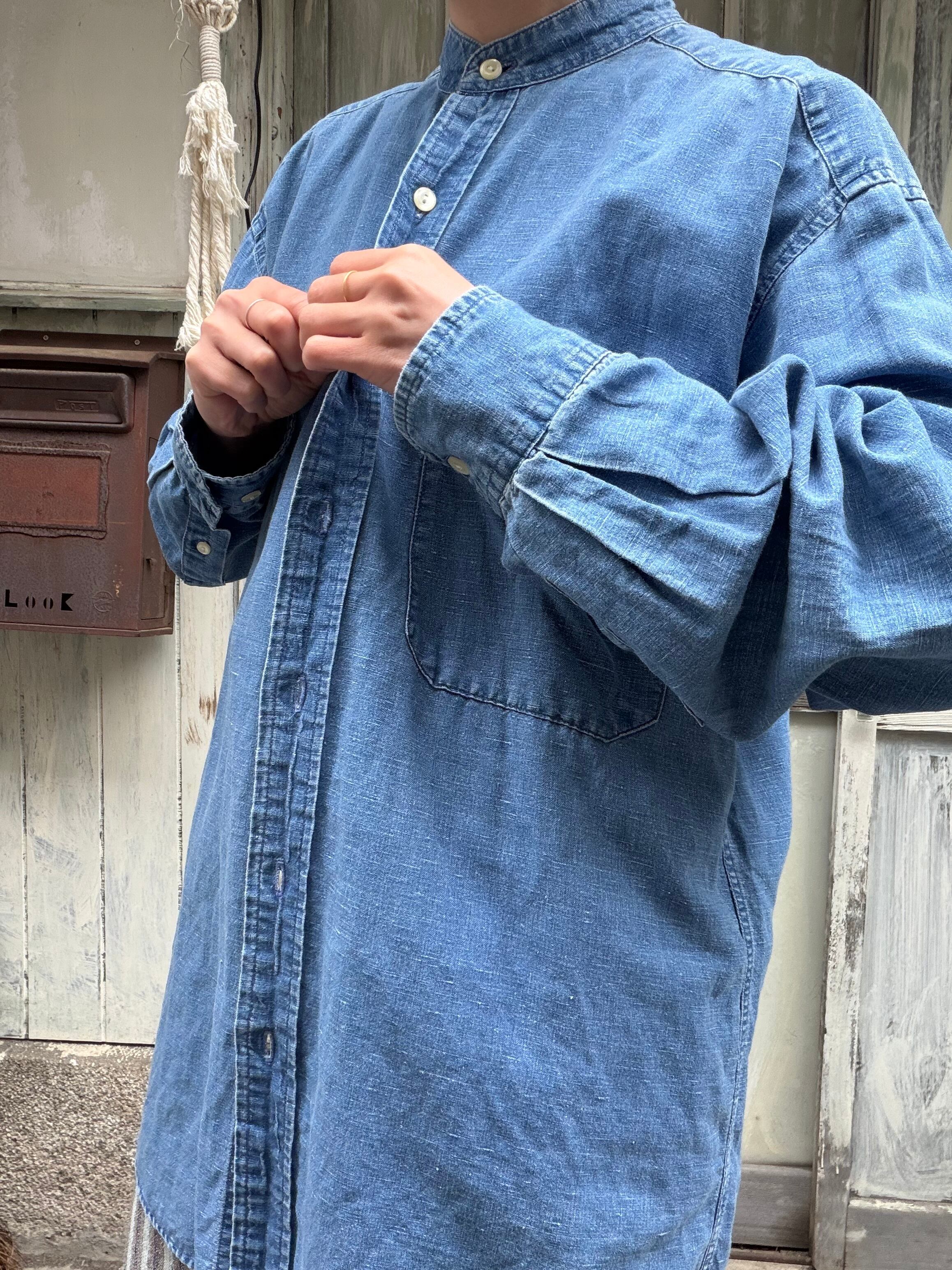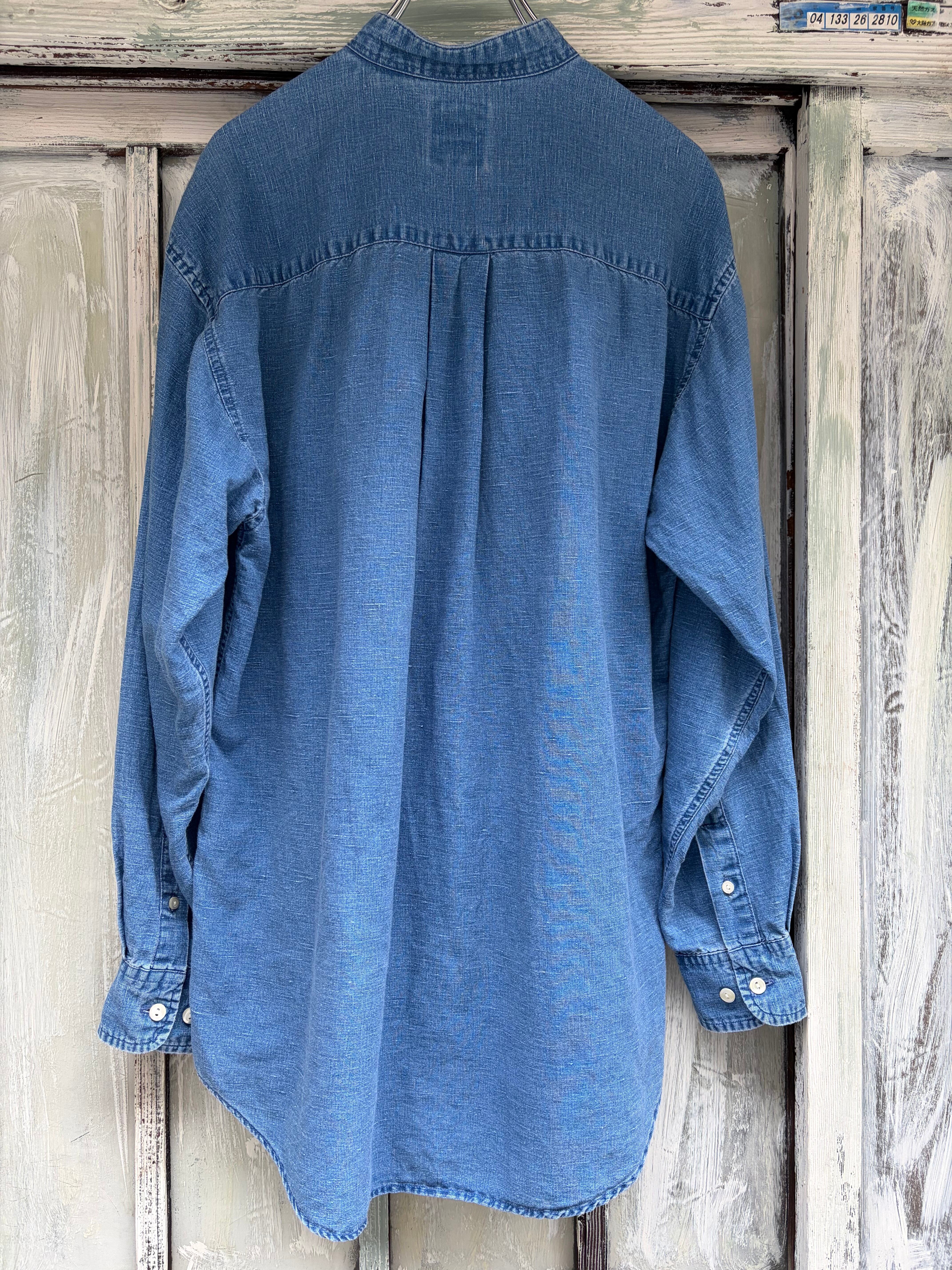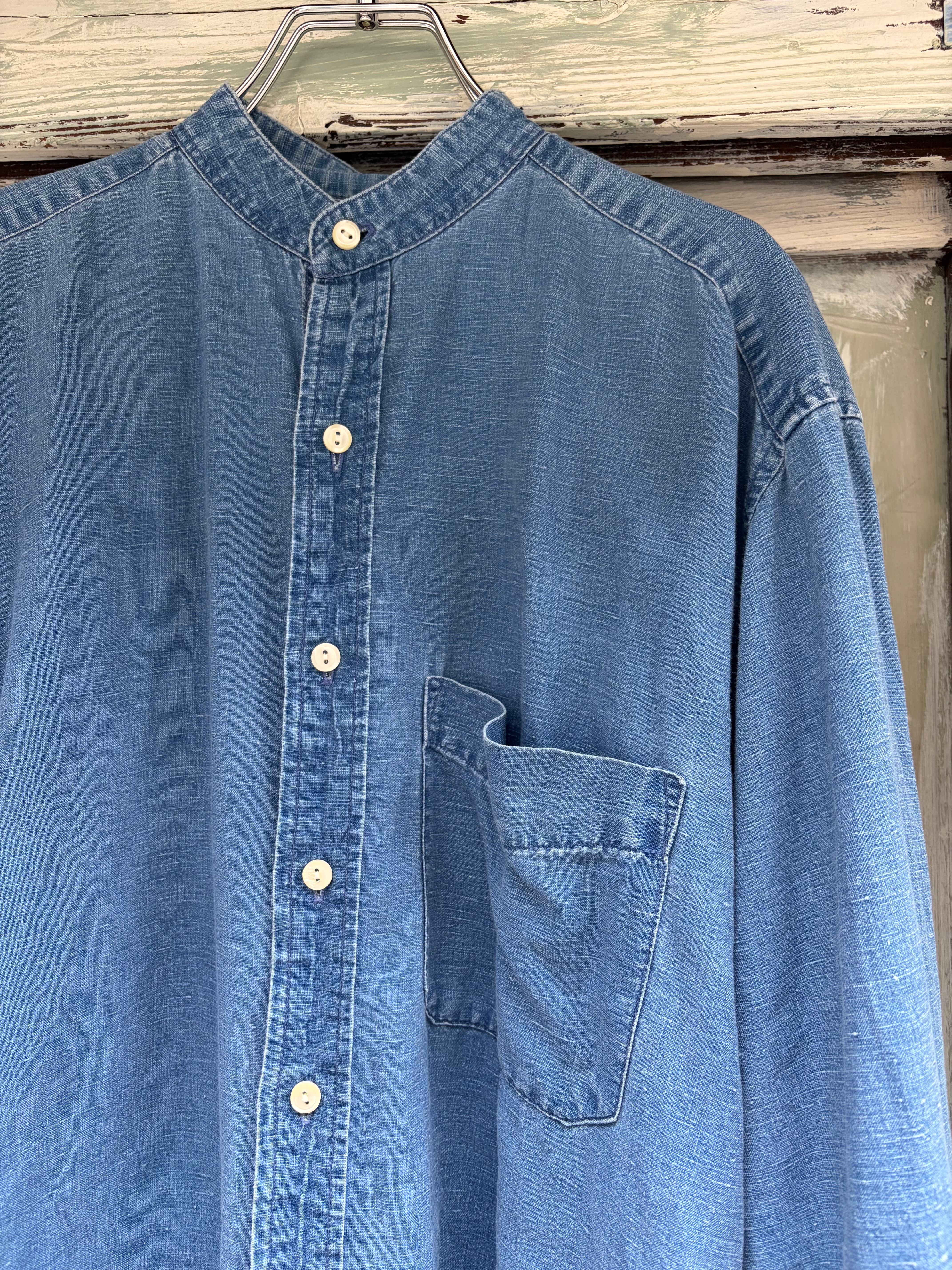 オールドギャップのノーカラーリネンコットンシャツ。