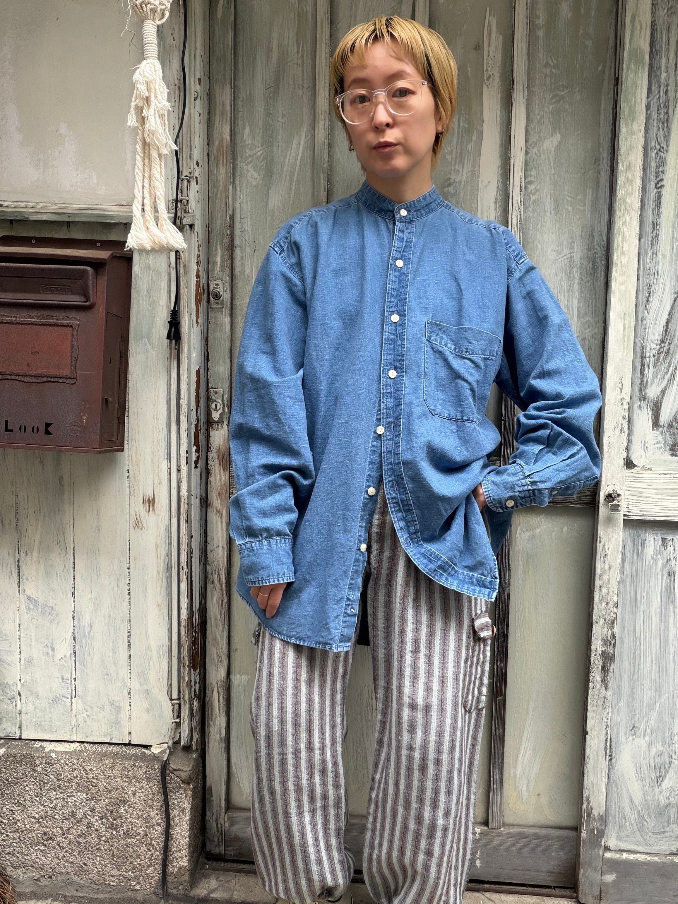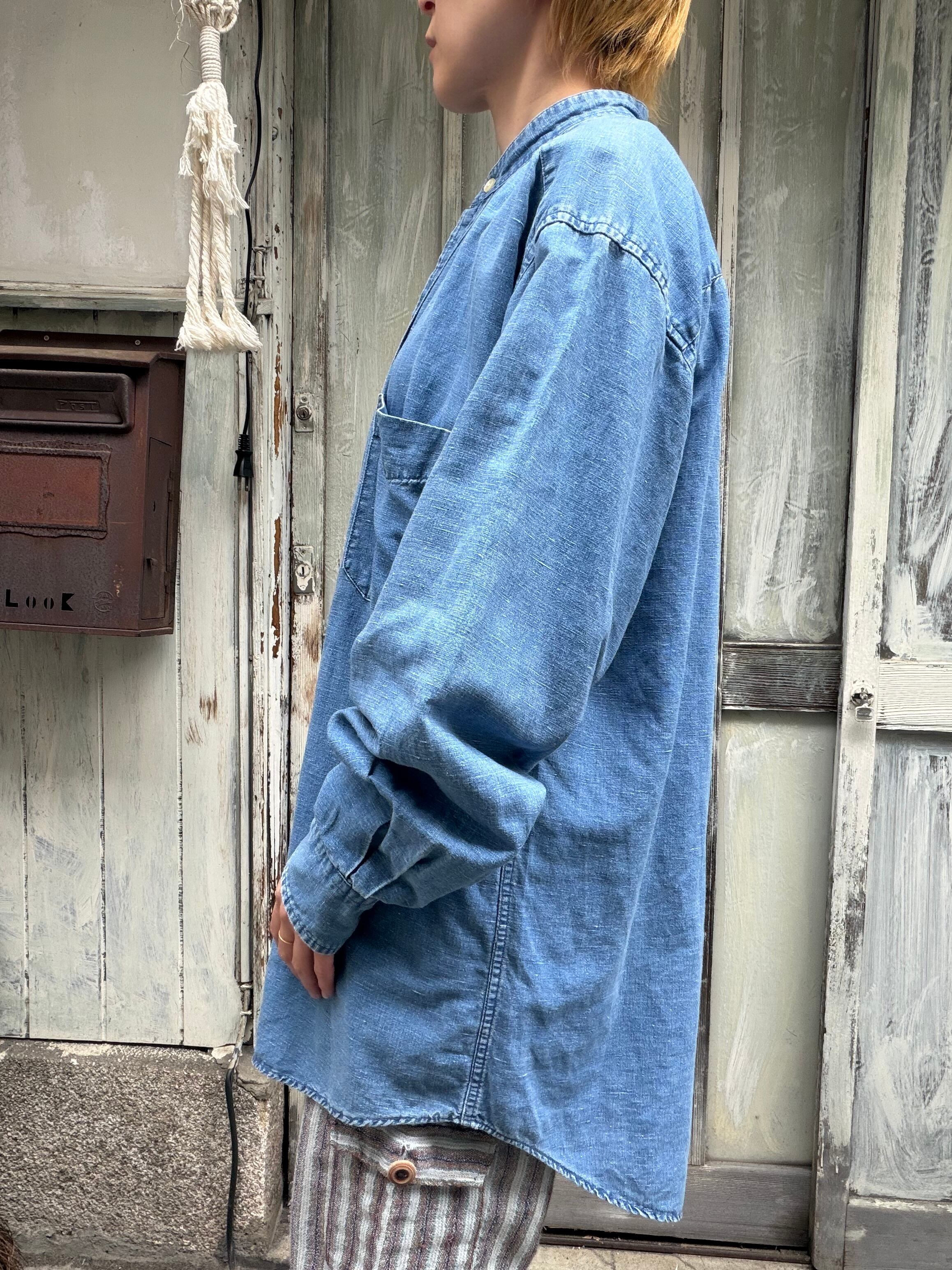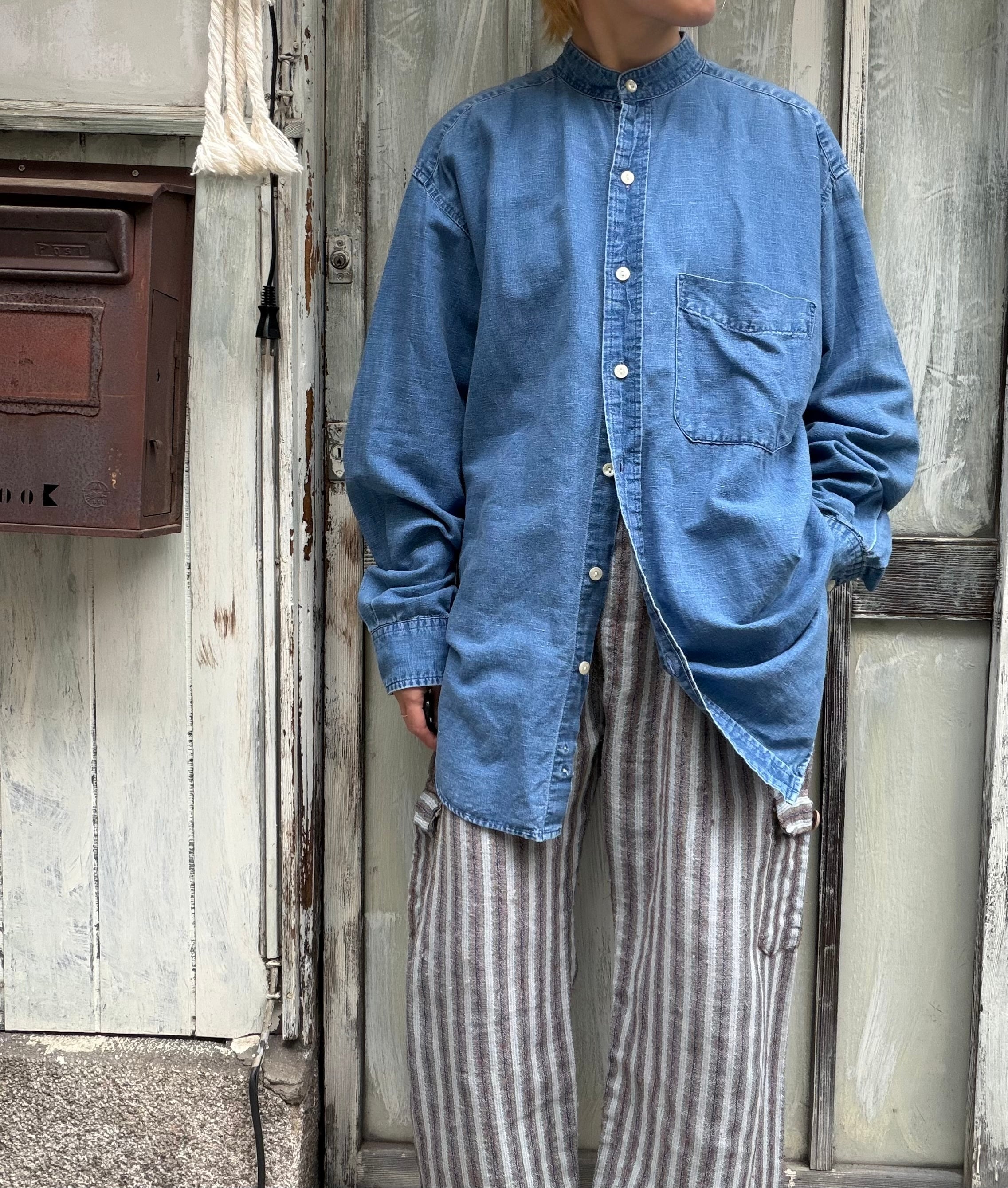 オールドギャップのノーカラーリネンコットンシャツ。