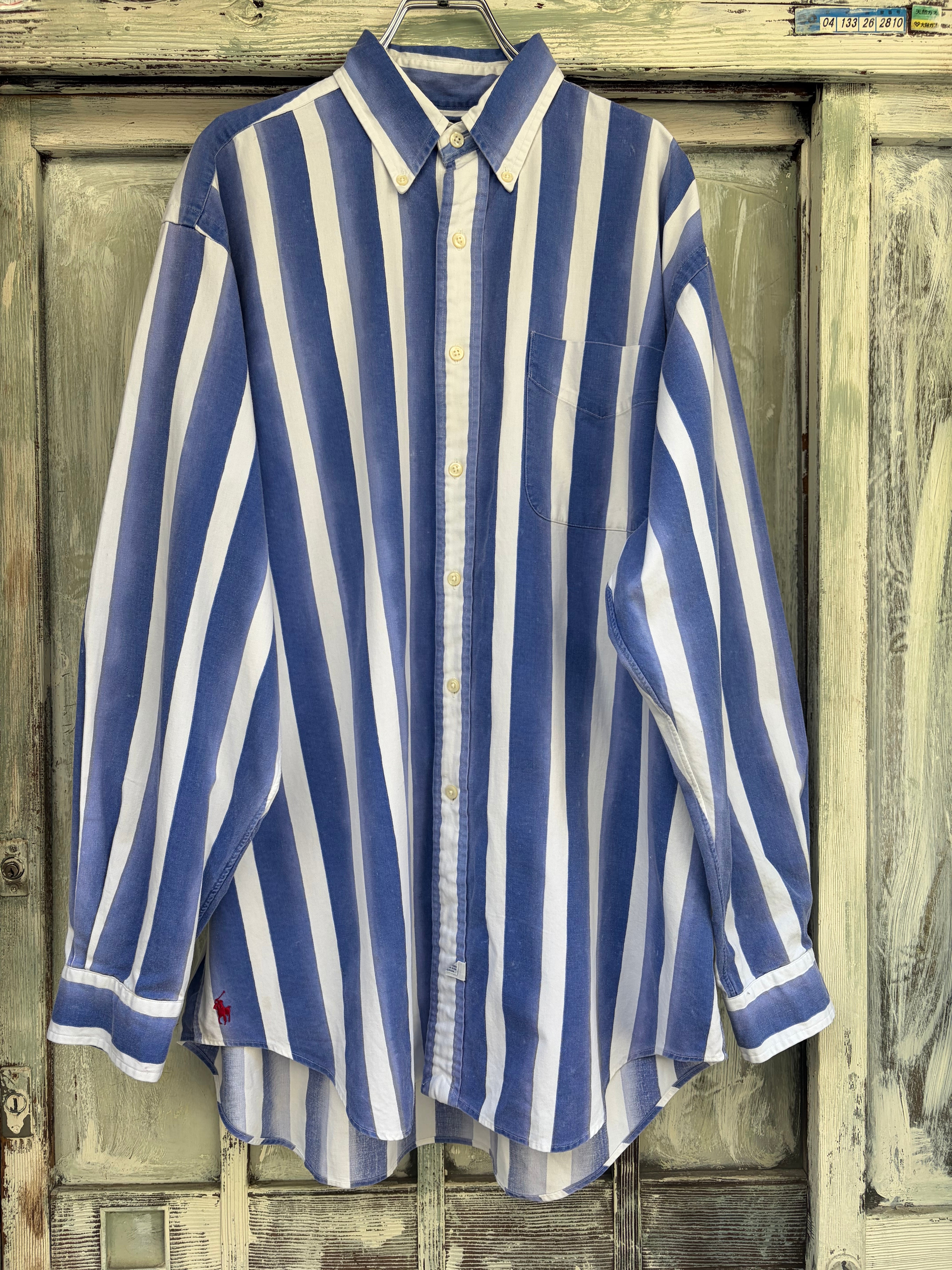 ポロバイラルフローレンの太ストライプボタンダウンシャツ。