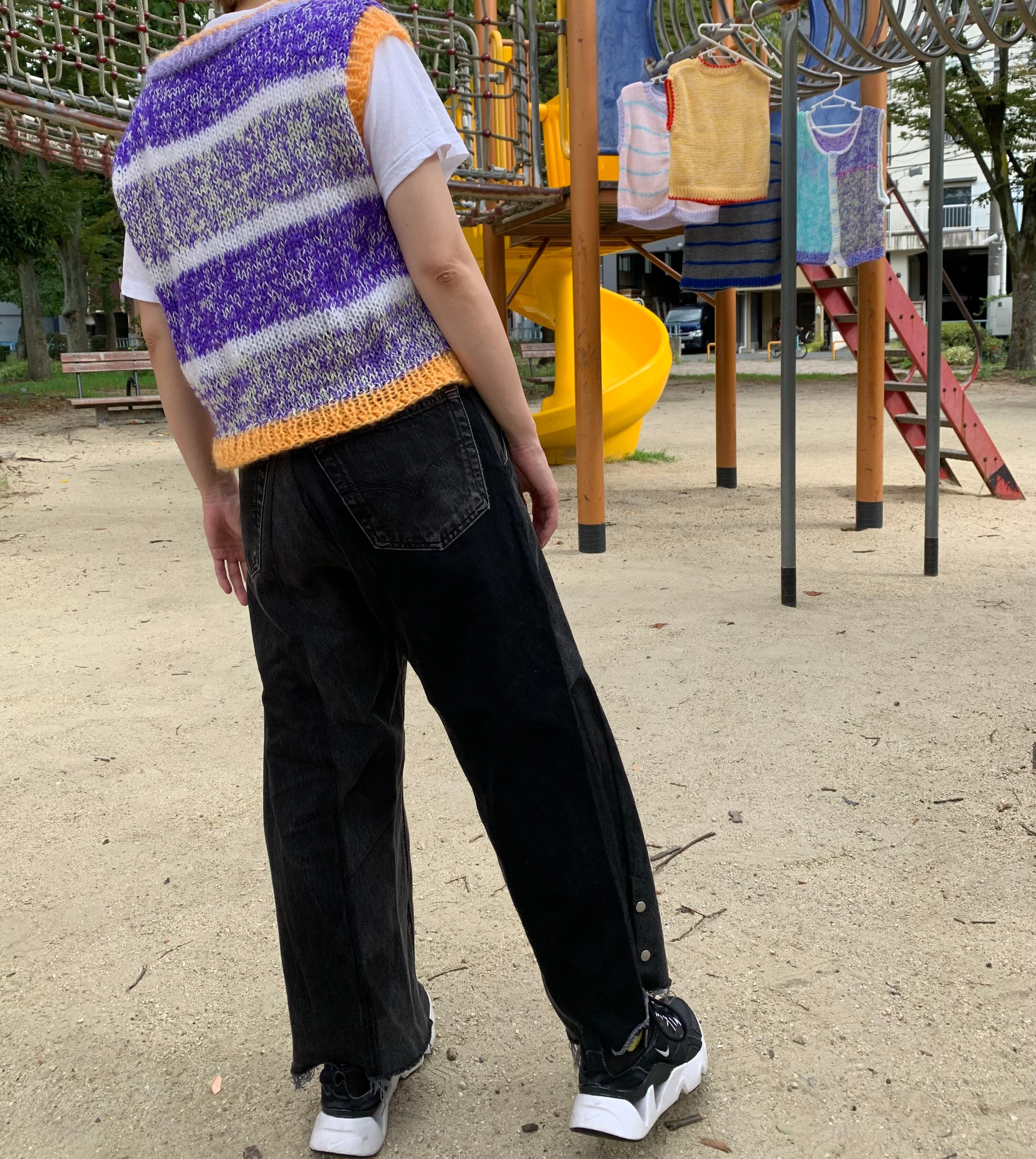 ワンピースやロングカットソー、シャツなどの上から着てもバランスが良いです。